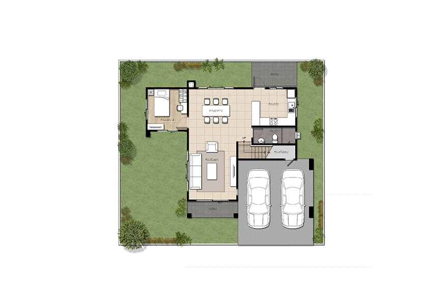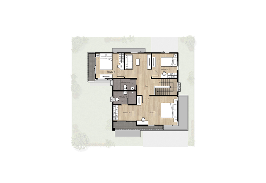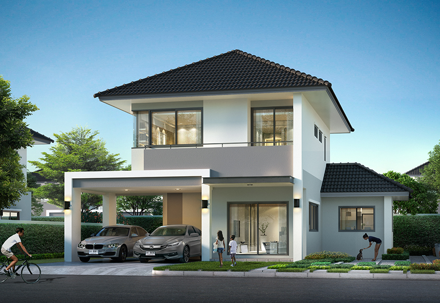 แบบบ้าน : LOFT 93 พื้นที่ใช้สอย 93 ตร.ม. หน้ากว้าง 5.2 เมตร 2 ห้องนอน 3 ห้องน้ำ ส่วนรับประทานอาหาร ห้องอเนกประสงค์ 1 ห้องรับแขก ที่จอดรถ 1 คัน แบบบ้าน : LOFT-133