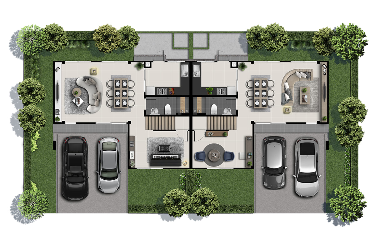 แบบบ้าน แบบบ้าน : Ingelheim 447 ตร.ม. 4 ห้องนอน 5 ห้องน้ำ 1 ดับเบิ้ลลิฟวิ่งรูม 1 ห้องครัว 1 ส่วนรับประทานอาหาร 1 ห้องแม่บ้าน 3 ที่จอดรถ แบบบ้าน : Wurzburg