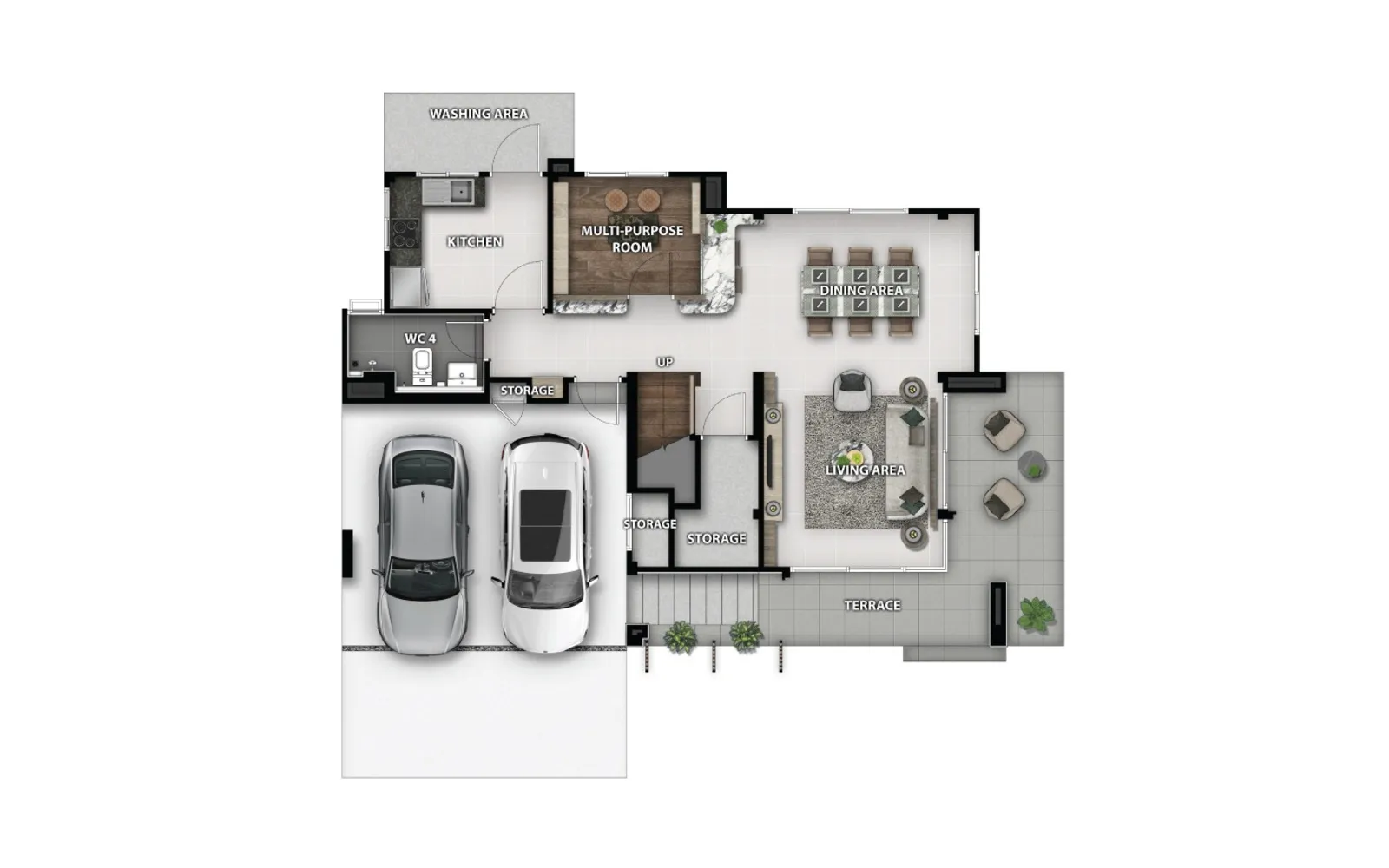แบบบ้าน : TYPE MARISA ทาวน์โฮม 2 ชั้น พื้นที่ใช้สอย 110 ตร.ม. 3 ห้องนอน 2 ห้องน้ำ ที่จอดรถ 2 คัน แบบบ้าน : TYPE ELLA ทาวน์โฮม 3 ชั้น ห้องนอนใหญ่ “เต็มชั้น” แยกชั้น เป็นส่วนตัวในทุกพื้นที่ พร้อม Pocket Garden ที่ดินเริ่มต้น 17.3 ตร.วา