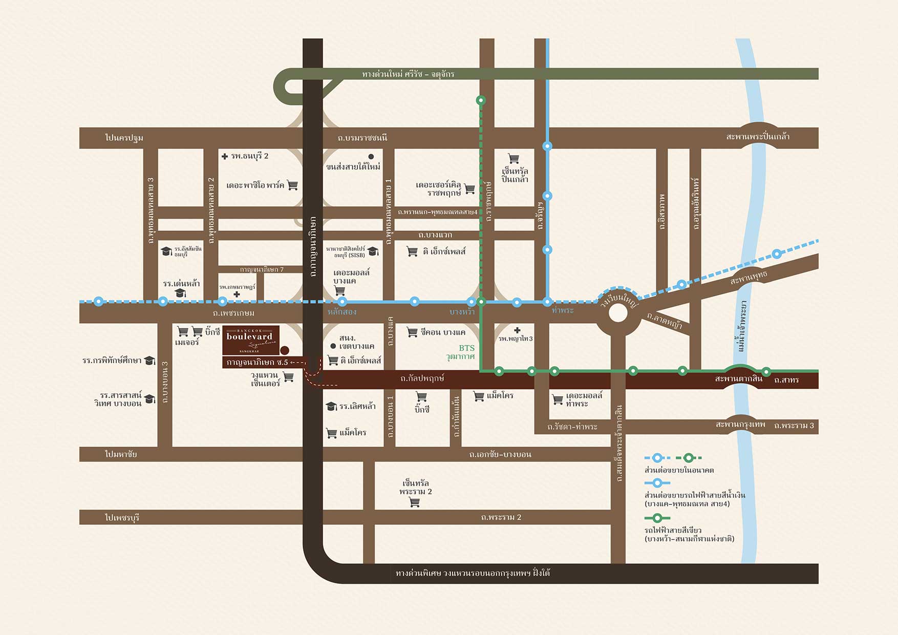 • สถานีหลักสอง (สายสีน้ำเงิน) 5.5 กม.