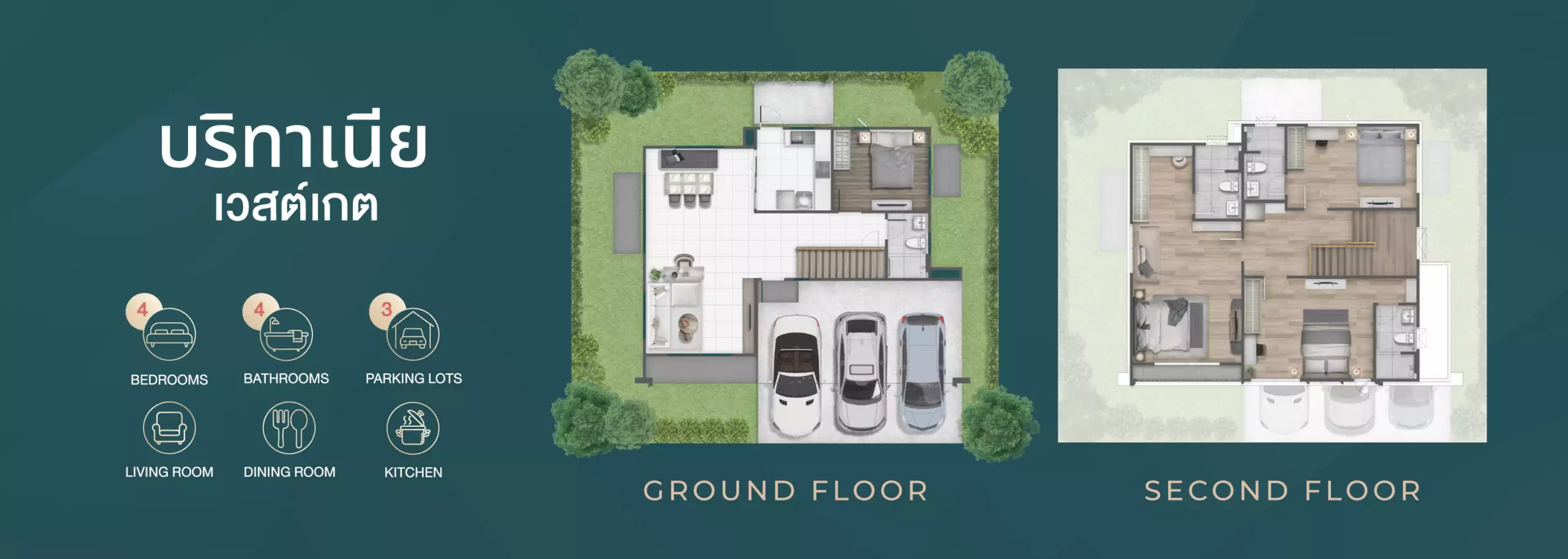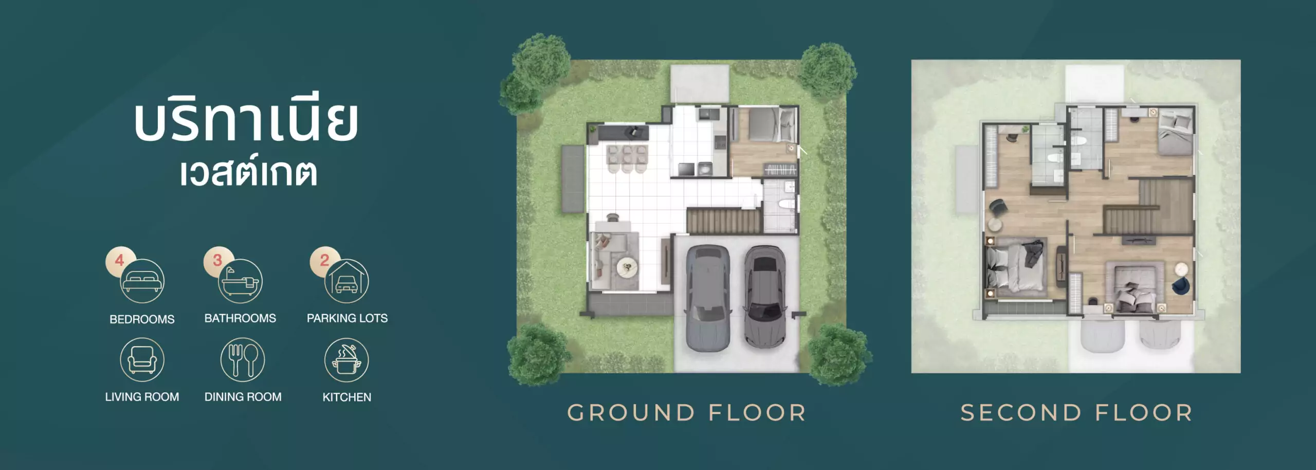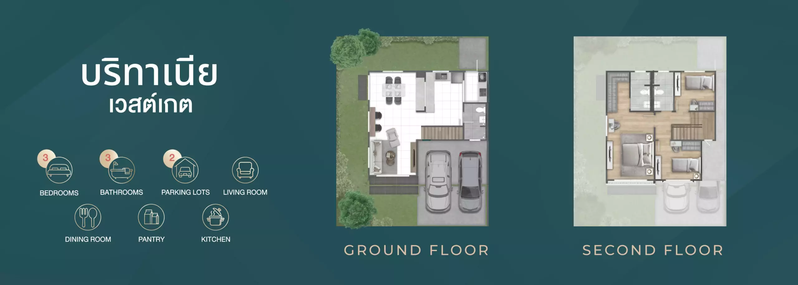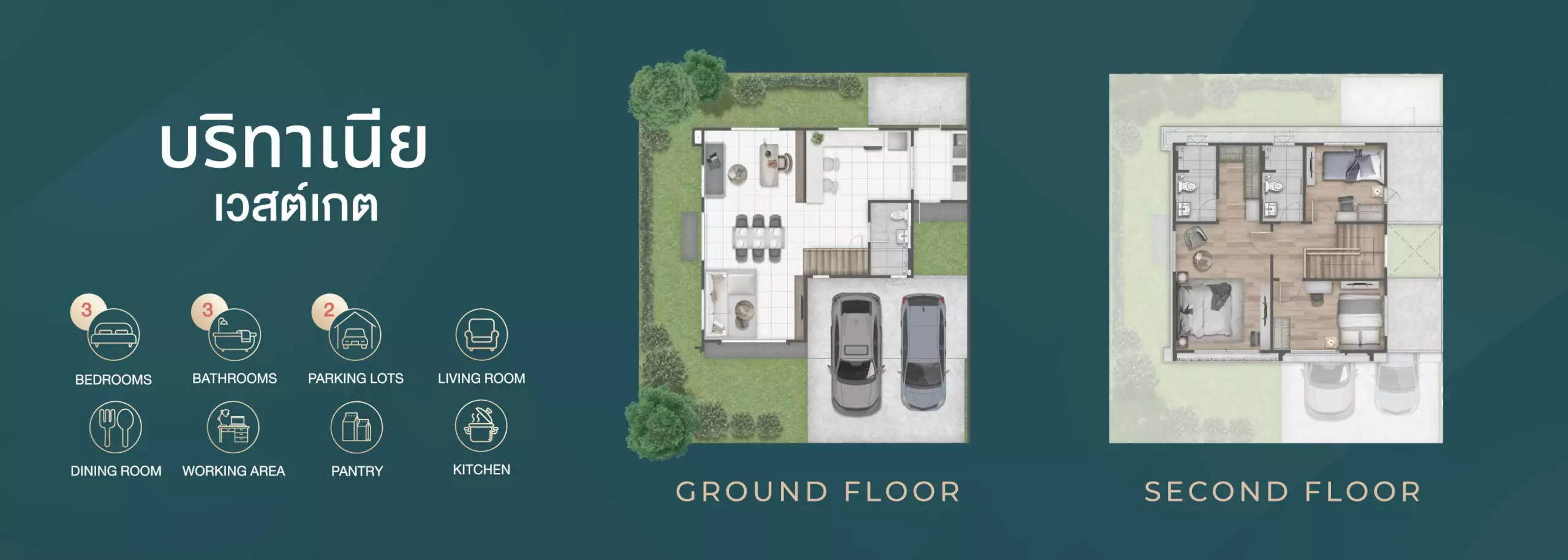 แบบบ้าน : Mona พื้นที่ใช้สอย 100 ตร.ม. 3 ห้องนอน 3 ห้องน้ำ ที่จอดรถ 2 คัน แบบบ้าน : Monix พื้นที่ใช้สอย 143 ตร.ม. 3 ห้องนอน 3 ห้องน้ำ ที่จอดรถ 2 คัน