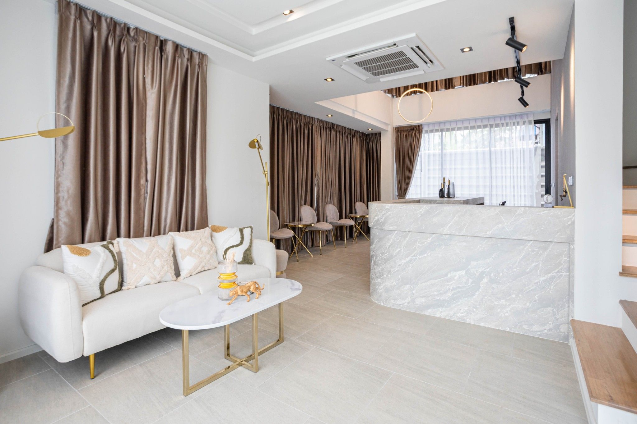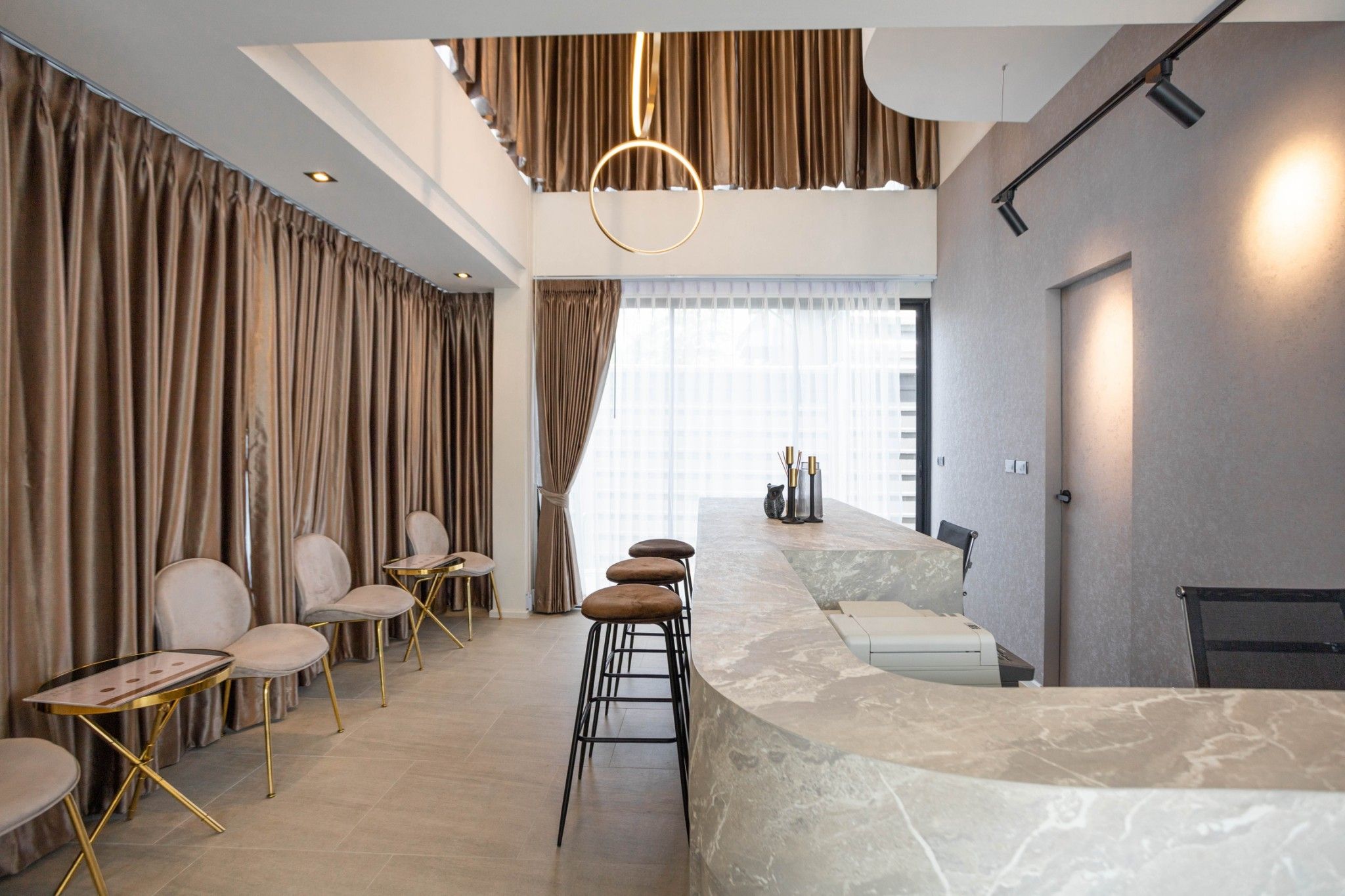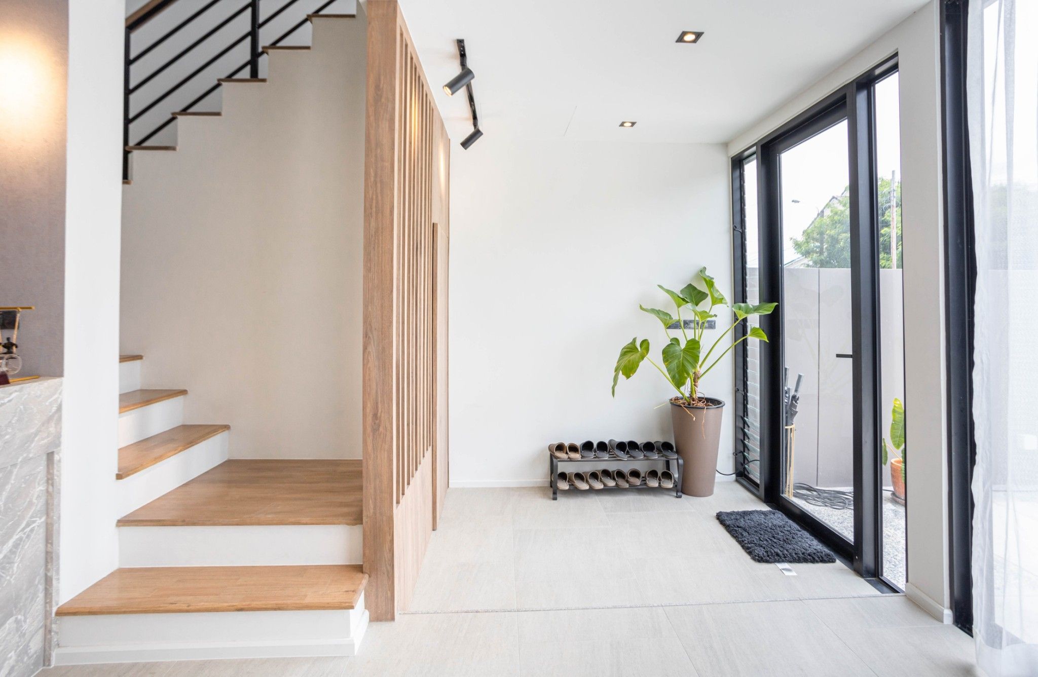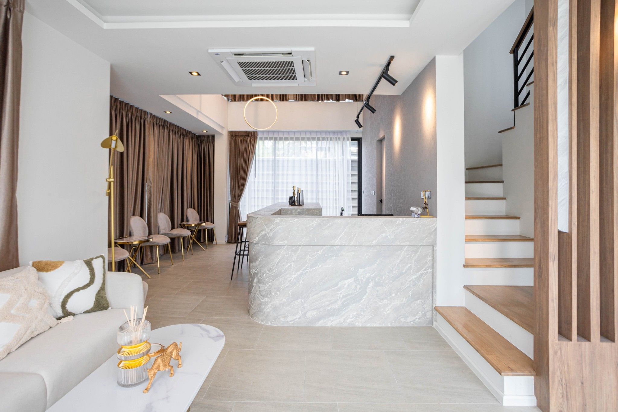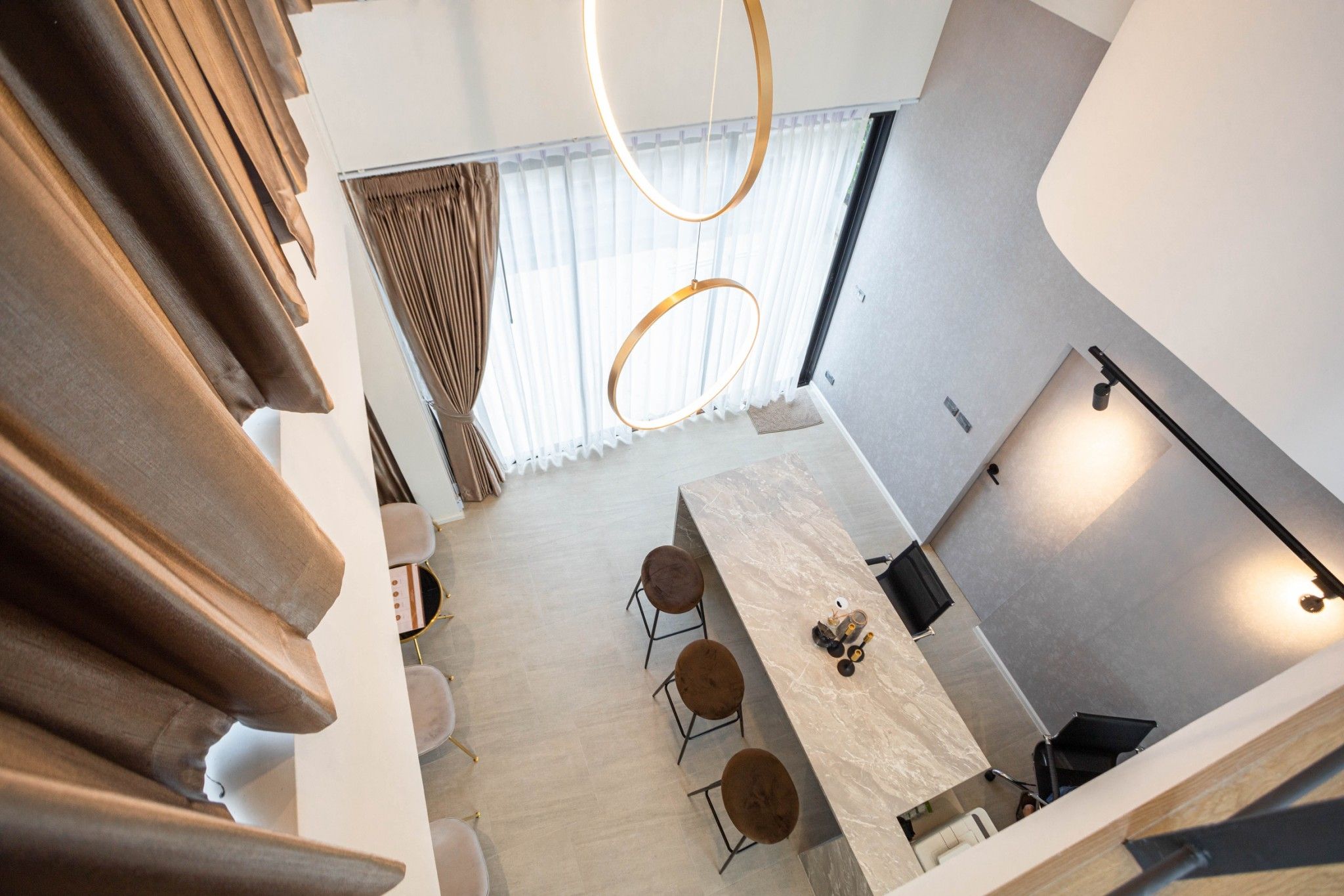 Space Interior มิติใหม่ของโฮมออฟฟิศ กับโถงทางเดินบันได้ระหว่างชั้น ที่ถูกออกแบบมาให้โปร่งโล่งด้วยเพดานที่สูงและกระจกบานใหญ่ เปิดรับแสงสว่างตลอดวัน ช่วยประหัดพลังงานและเชื่อมต่อกับบรรยากาศภายนอก