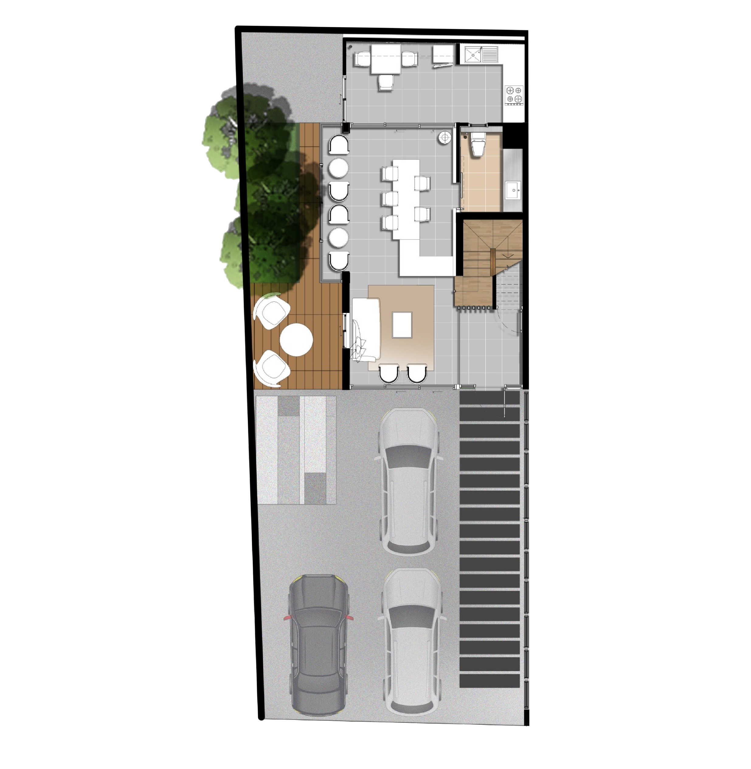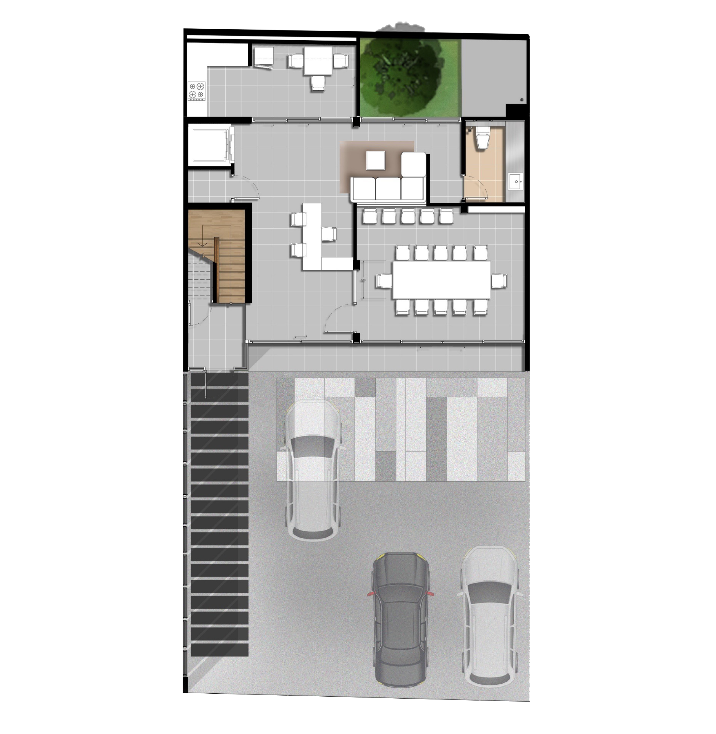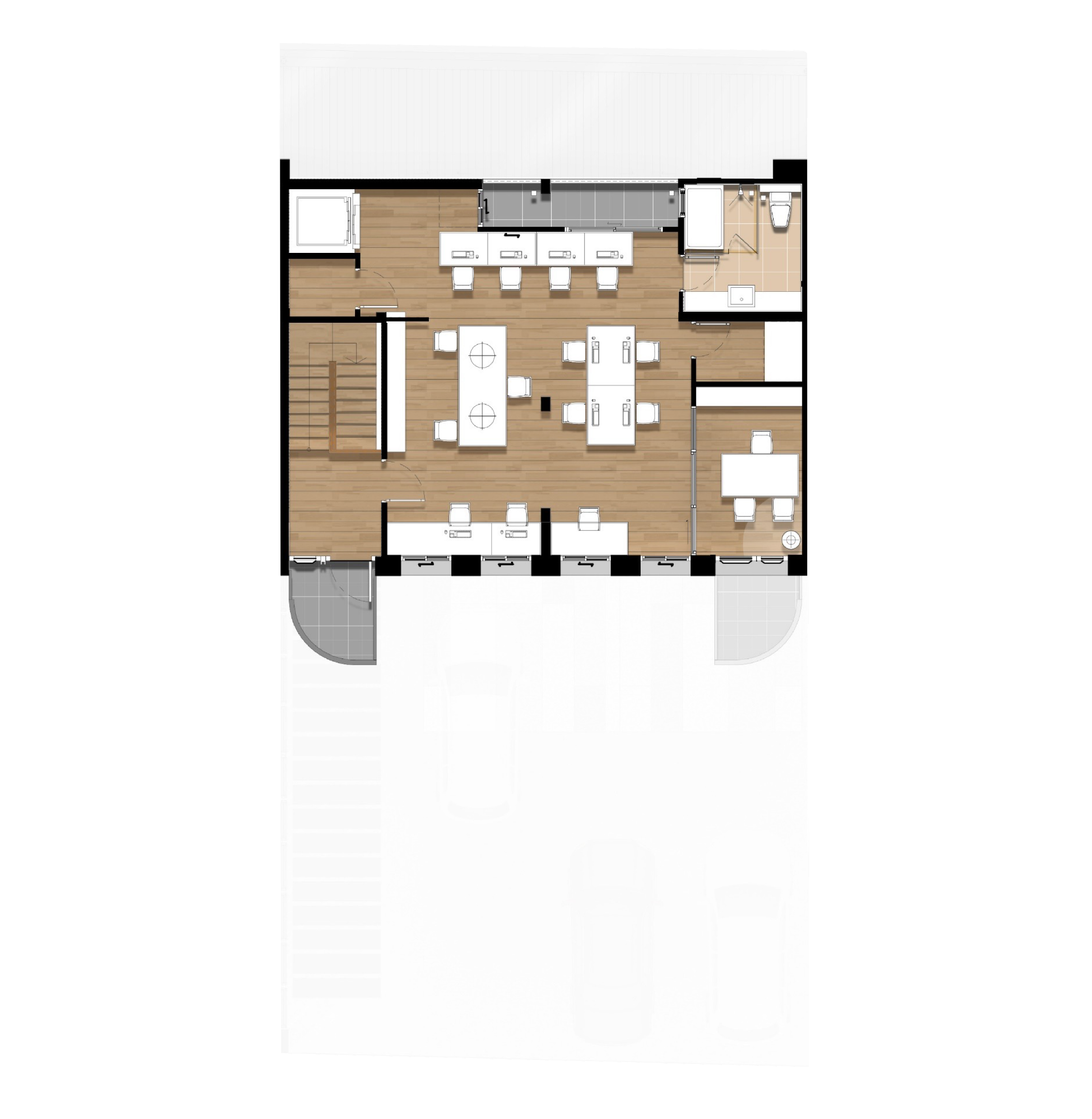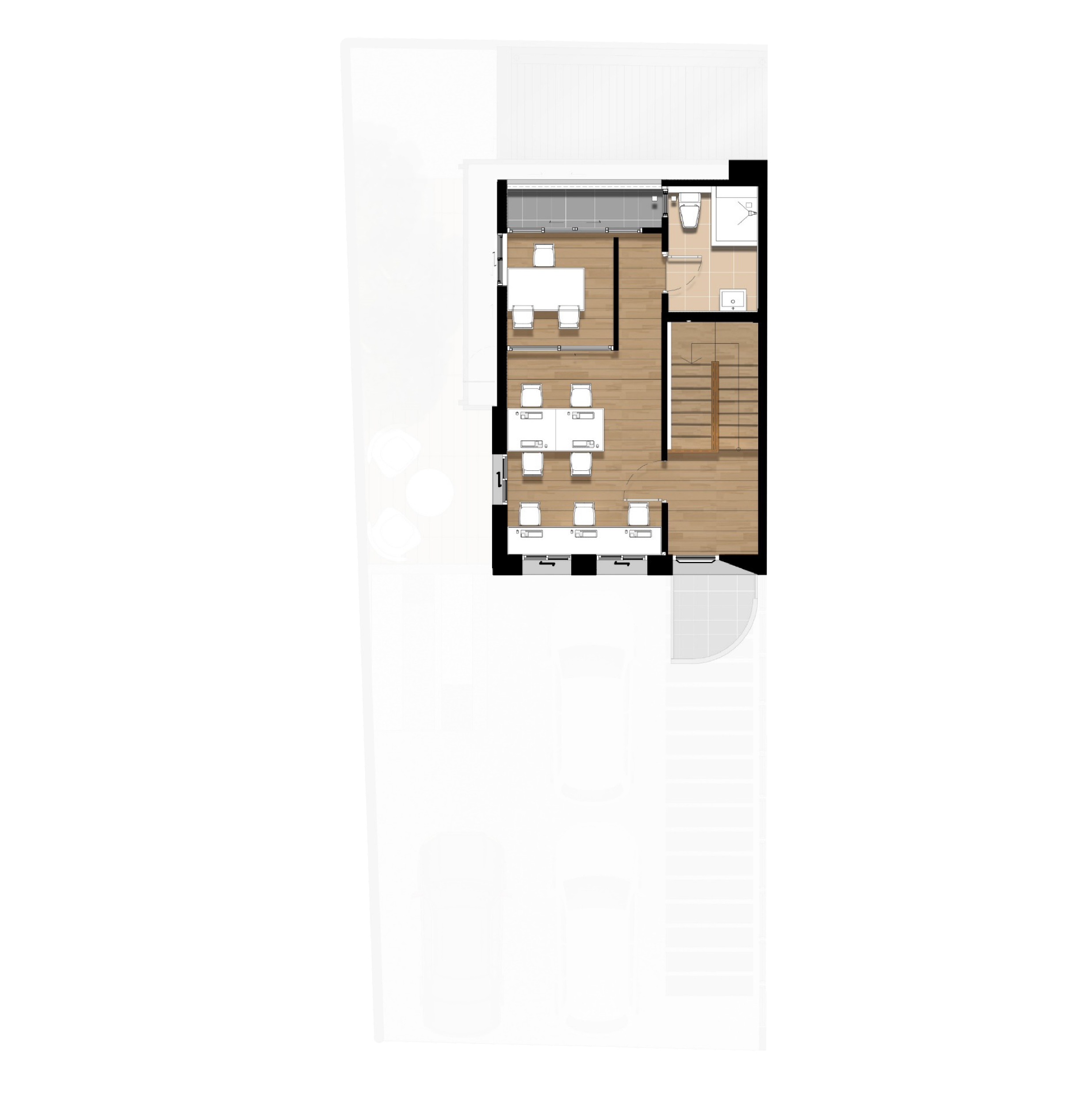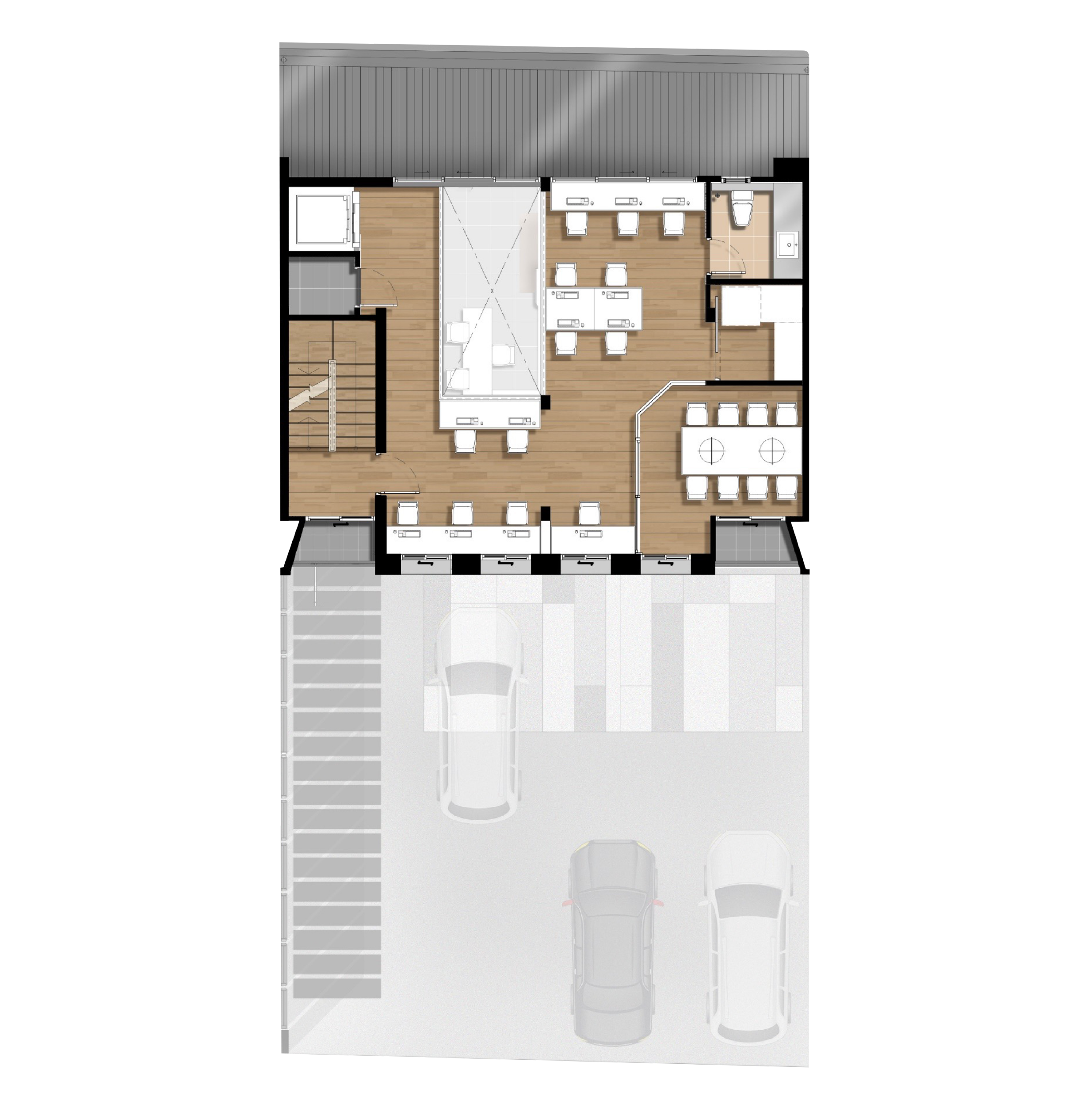Space Interior มิติใหม่ของโฮมออฟฟิศ กับโถงทางเดินบันได้ระหว่างชั้น ที่ถูกออกแบบมาให้โปร่งโล่งด้วยเพดานที่สูงและกระจกบานใหญ่ เปิดรับแสงสว่างตลอดวัน ช่วยประหัดพลังงานและเชื่อมต่อกับบรรยากาศภายนอก