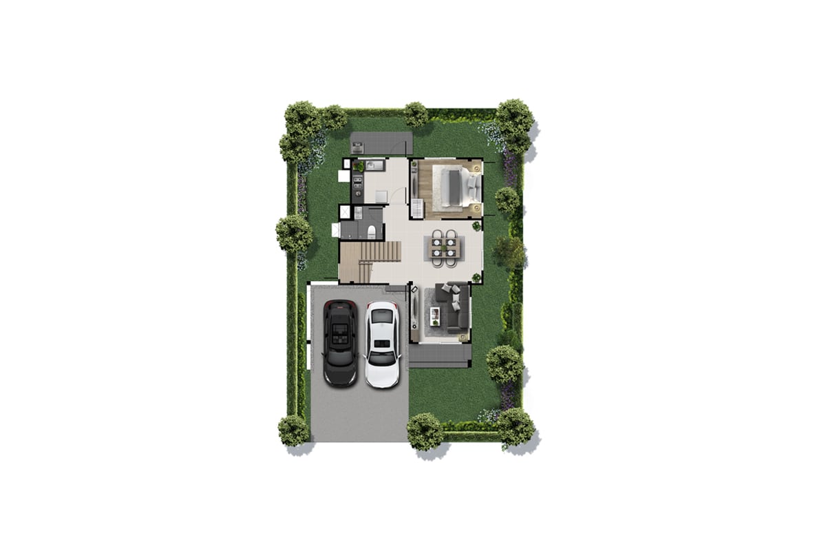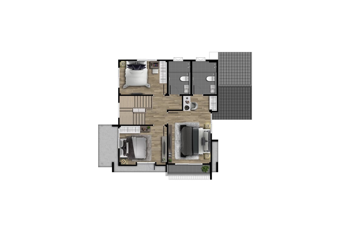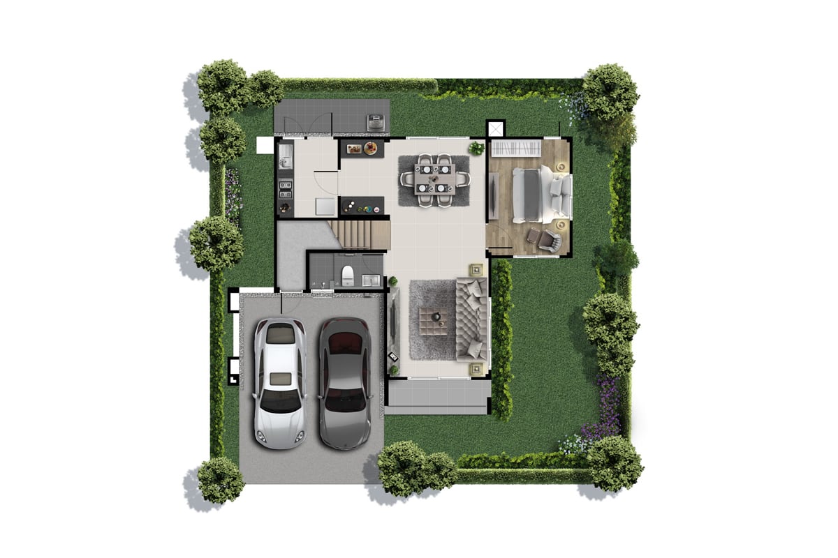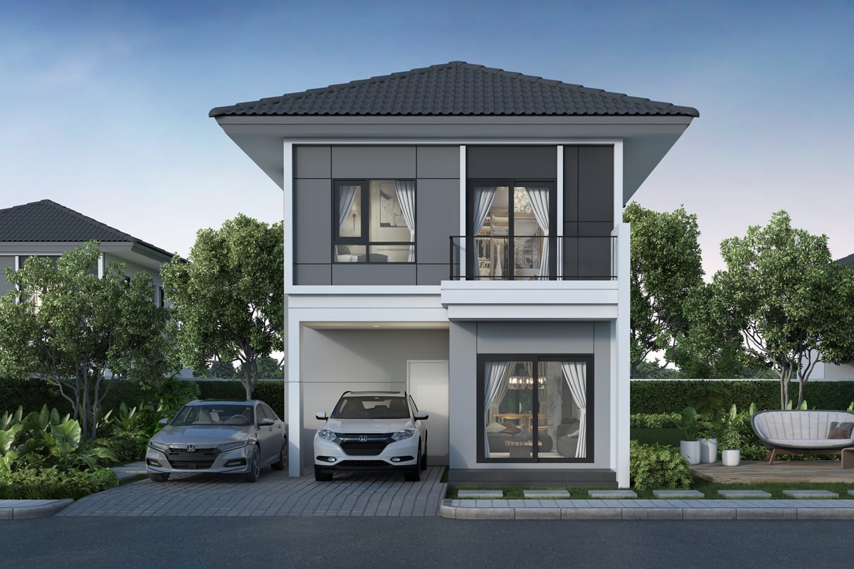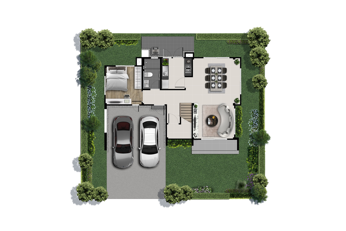 ทำเลที่ตั้ง ถ.สำเร็จพัฒนา อ.บางกรวย จ.นนทบุรี 11130 สิ่งอำนวยความสะดวกรอบโครงการ แบบบ้าน : Camelia พื้นที่ใช้สอย 206 ตร.ม. 4 ห้องนอน 3 ห้องน้ำ 2 ห้องรับแขก ส่วนรับประทานอาหาร ห้องครัว ที่จอดรถ 3 คัน