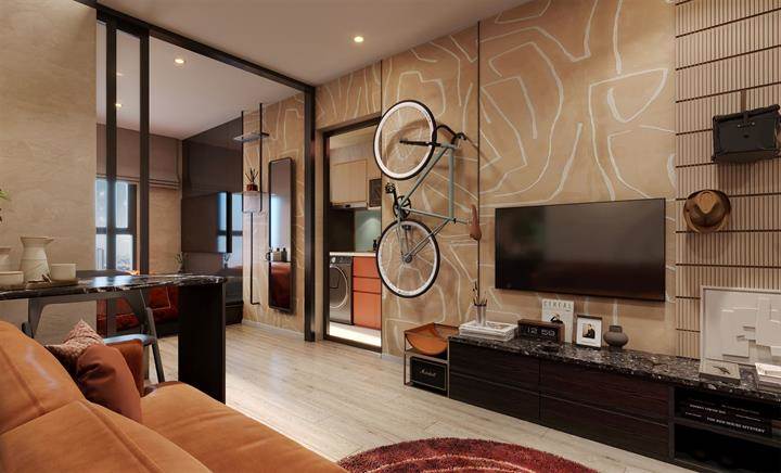 แบบบ้าน : Brooklyn ชั้น 1 หน้าบ้าน กว้าง 5.7 เมตร ลงเสาเข็มเท่าตัวบ้าน รองรับการใช้งานจริง แบ่งโซนรับแขกได้อย่างลงตัว มุมครัวขนาดใหญ่ เชื่อมต่อกับพื้นที่ทานอาหาร พื้นที่