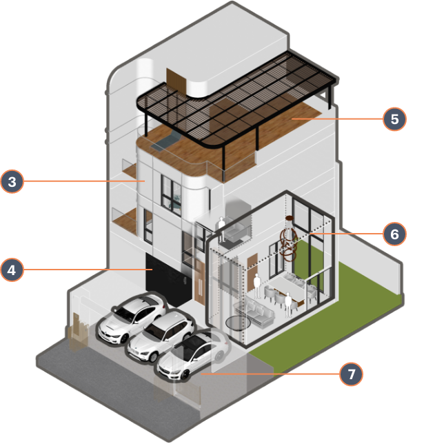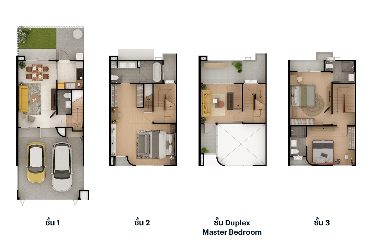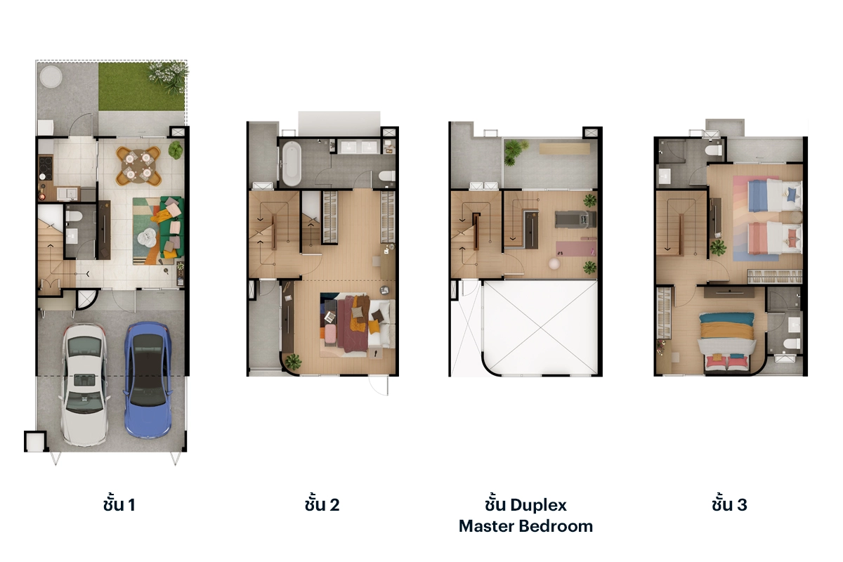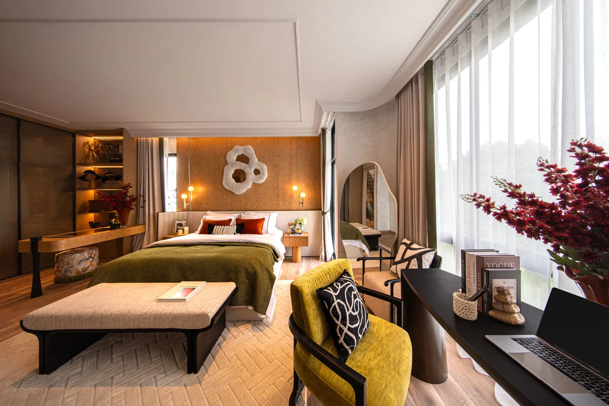 Master Bedroom เมื่อเข้ามาถึง ซ้ายมือจะเป็นพื้นที่หน้าบ้าน ได้บานกระจกขนาดใหญ่มาเต็มที่เลยค่ะ มีระเบียงขนาดใหญ่ให้ได้ออกไปใช้งานด้วย สามารถทำเป็นมุมพั