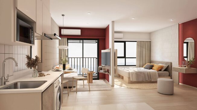 ขนาดพื้นที่ใช้สอย 34 ตร.ม. จำนวนห้องนอน 1 ห้องนอน จำนวนห้องน้ำ 1 ห้องน้ำ