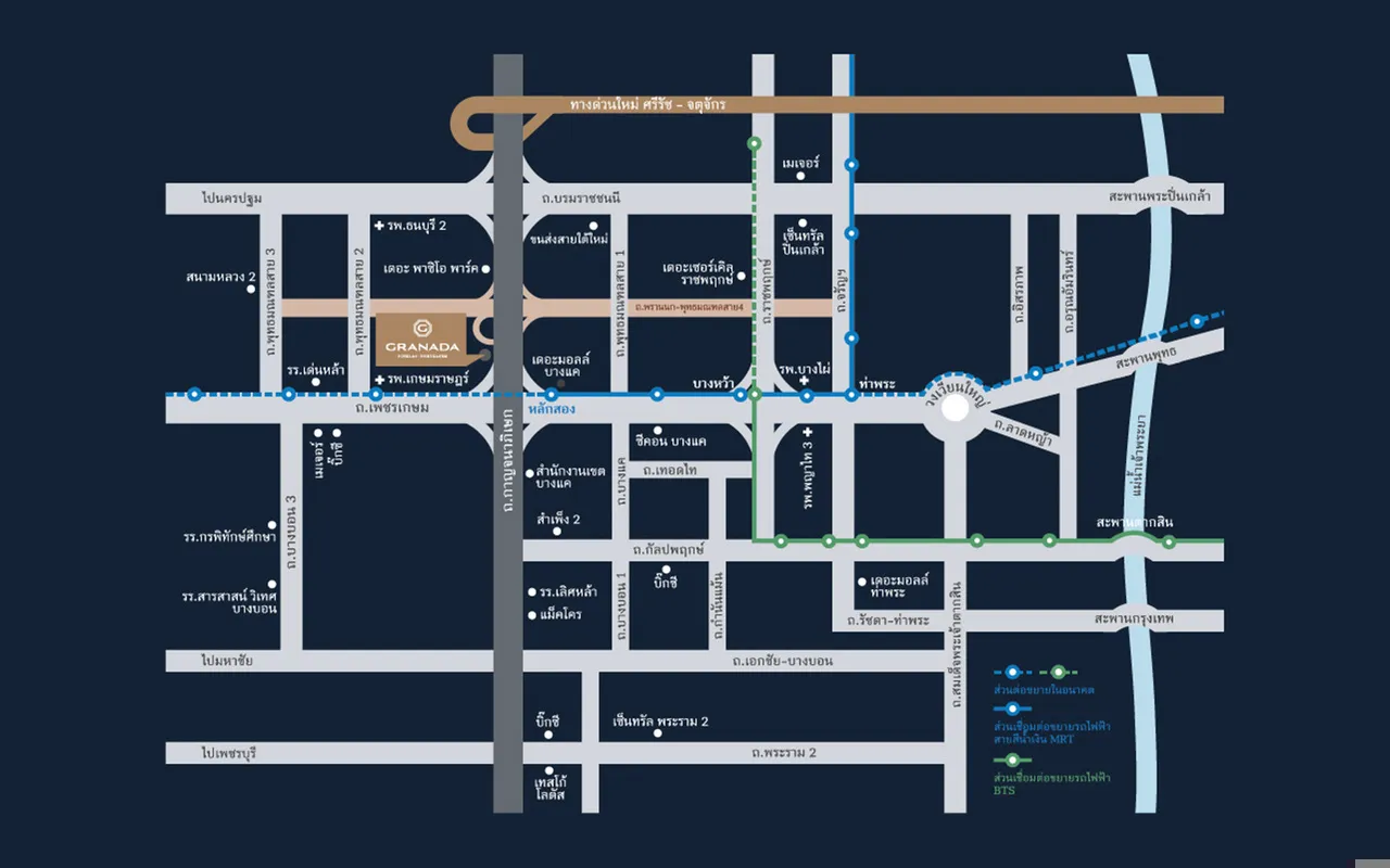 สถานศึกษามหาวิทยาลัยเทคโนโลยีราชมงคลสุวรรณภูมิ ห้างสรรพสินค้าเซ็นทรัลพลาซ่า รัตนาธิเบศร์บิ๊ก ซี รัตนาธิเบศร์แกรนด์โฮม รัตนาธิเบศร์เอสพลานาด งามวงศ์วาน – แครายโลตัส แคราย