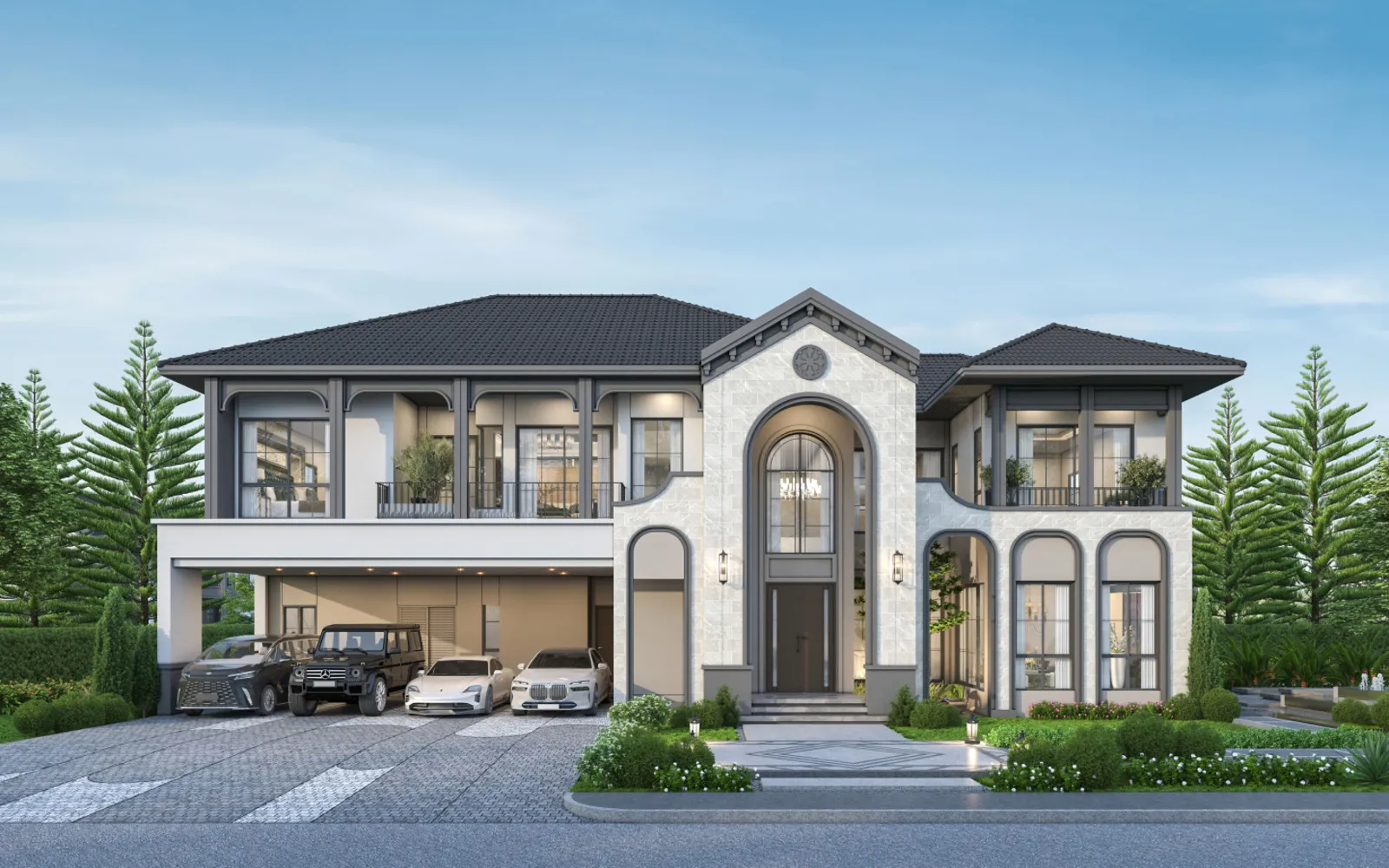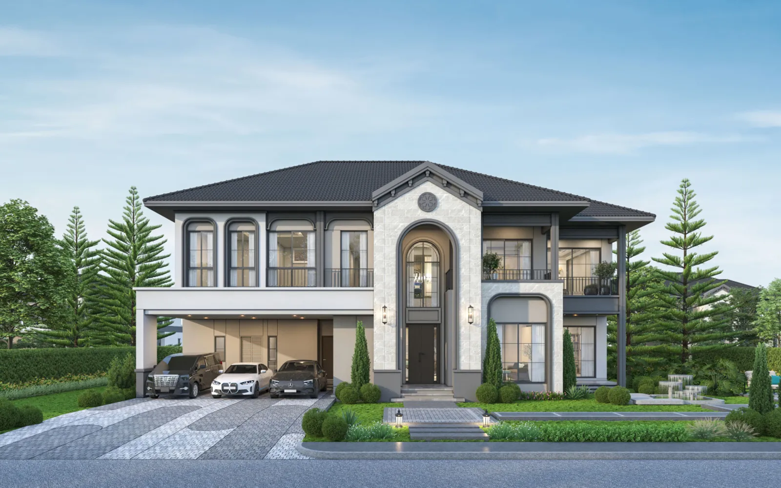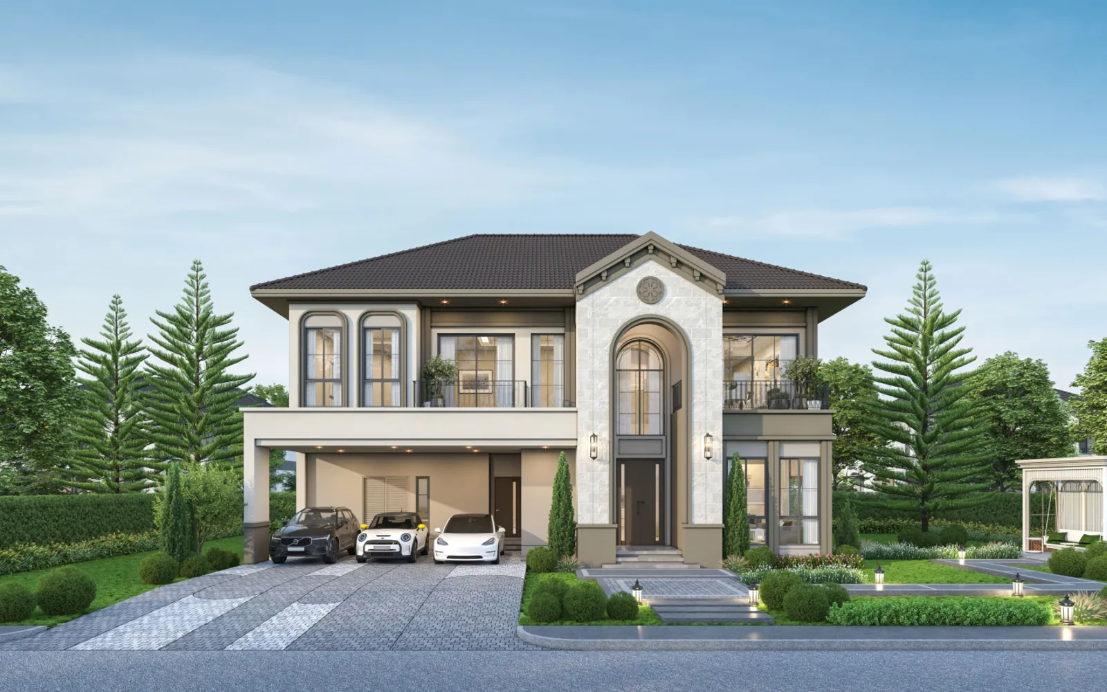 แบบบ้าน : Jung Frau 4 ห้องนอน 5 ห้องน้ำ 2 ที่จอดรถรายละเอียดอื่นๆ• ตกแต่งห้องน้ำ พร้อมสุขภัณฑ์• ตกแต่งสวนภายนอกบ้าน• ติดตั้งเครื่องปรับอากาศ• ตกแต่งพื้นภายใน• ผนังบุวอลล์