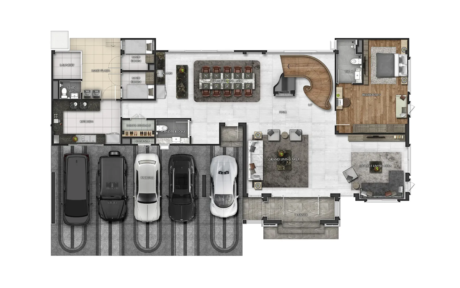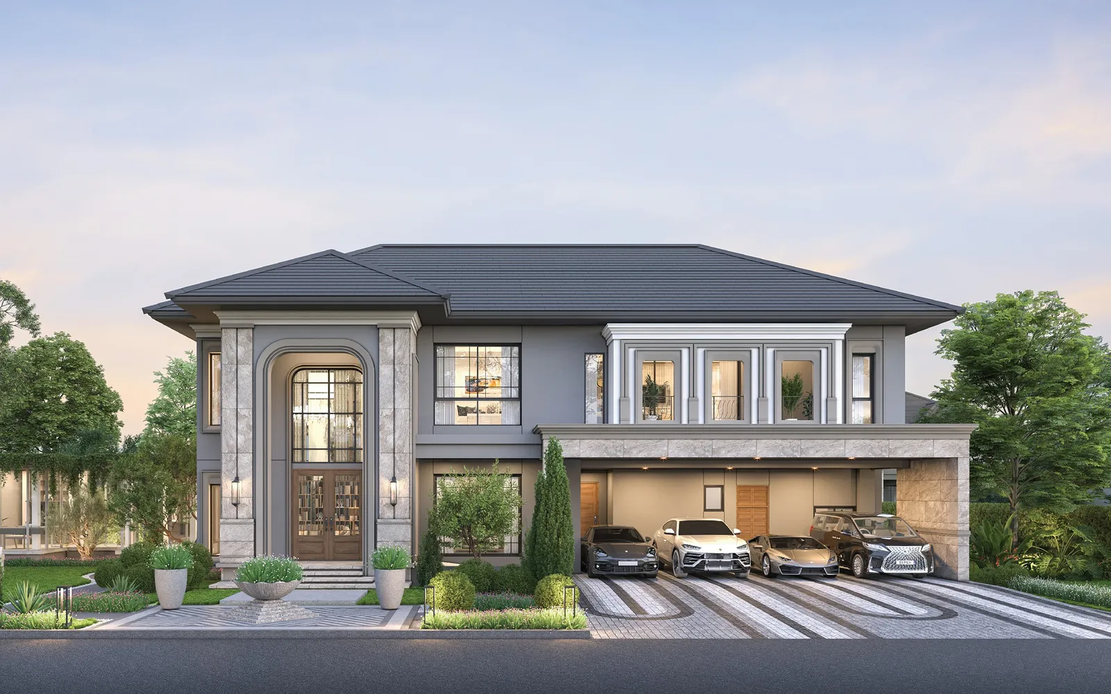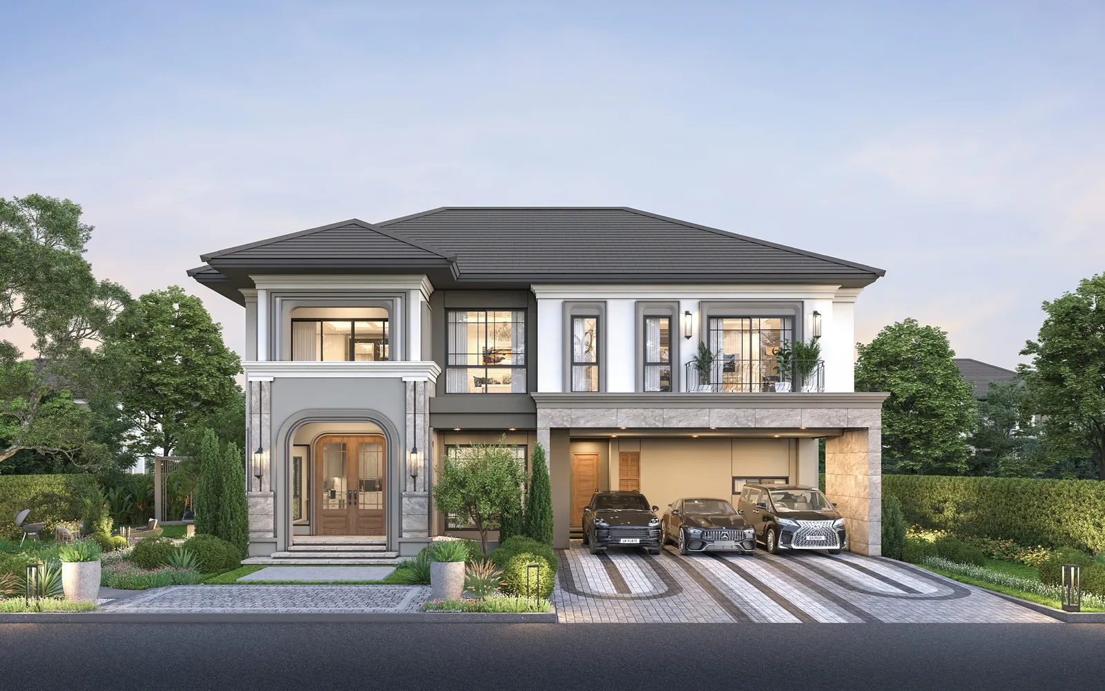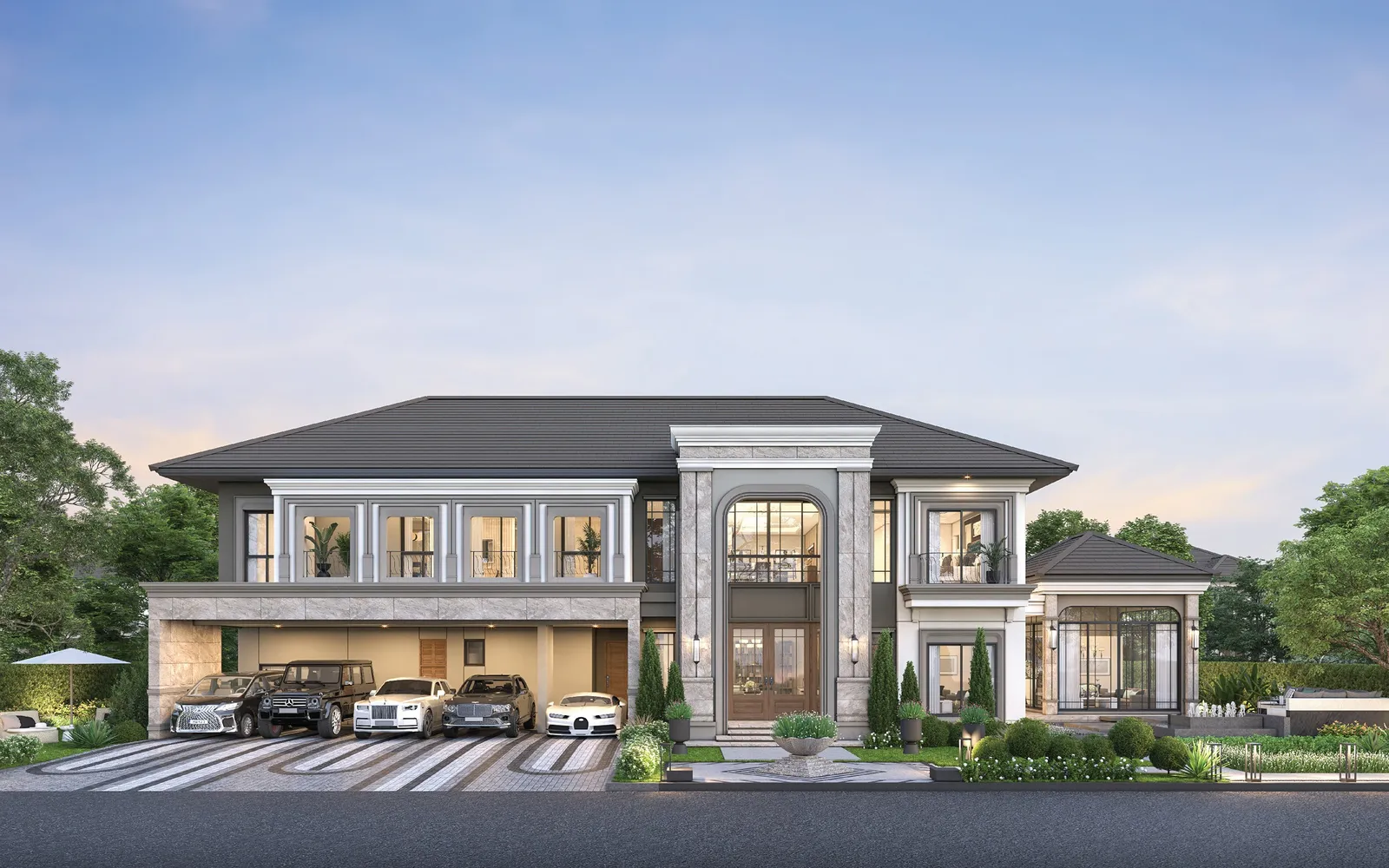 603 ตร.ม. 5 ห้องนอน 6 ห้องน้ำ 5 ที่จอดรถ 1 ห้องนั่งเล่น 1 ห้องรับแขก 1 ห้องพักผ่อนชั้นบน 1 ห้องพักผ่อนขนาดใหญ่ 2 ห้องแม่บ้าน 1 ห้องซักรีด 1 ห้องครัวไทยขนาดใหญ่ส่วนเตรียมอาหาร 1 ห้องครัว 1 ส่วนรับประทานอาหาร 1 ส่วนพักผ่อนขนาดใหญ่