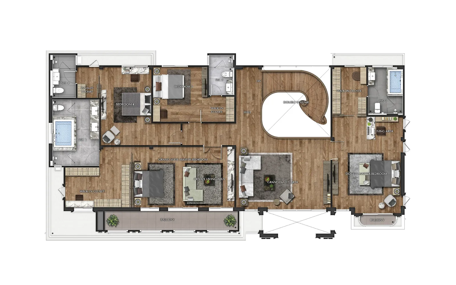 447 ตร.ม. 4 ห้องนอน 5 ห้องน้ำ 3 ที่จอดรถ 1 ห้องรับแขก 1 ห้องพักผ่อนขนาดใหญ่ 1 ห้องนั่งเล่น 1 ห้องพักผ่อนชั้นบน 1 ห้องแม่บ้าน 1 ห้องซักรีด 1 ห้องครัวไทยขนาดใหญ่ส่วนเตรียมอาหาร 1 ห้องครัว 1 ส่วนพักผ่อนขนาดใหญ่ 1 ส่วนรับประทานอาหาร