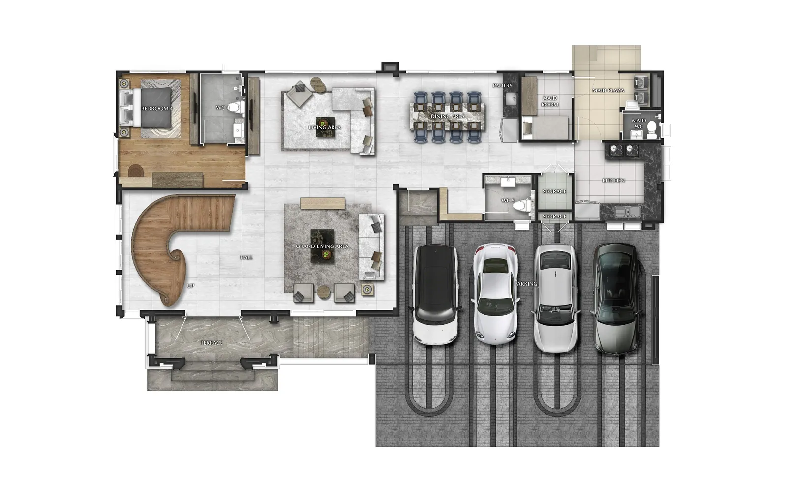 521 ตร.ม. 4 ห้องนอน 5 ห้องน้ำ 4 ที่จอดรถ 1 ห้องนั่งเล่น 1 ห้องรับแขก 1 ห้องพักผ่อนขนาดใหญ่ 1 ห้องแม่บ้าน 1 ห้องซักรีด 1 ห้องครัวไทยขนาดใหญ่ส่วนเตรียมอาหาร 1 ห้องครัว 1 ส่วนรับประทานอาหาร 1 ส่วนพักผ่อนขนาดใหญ่