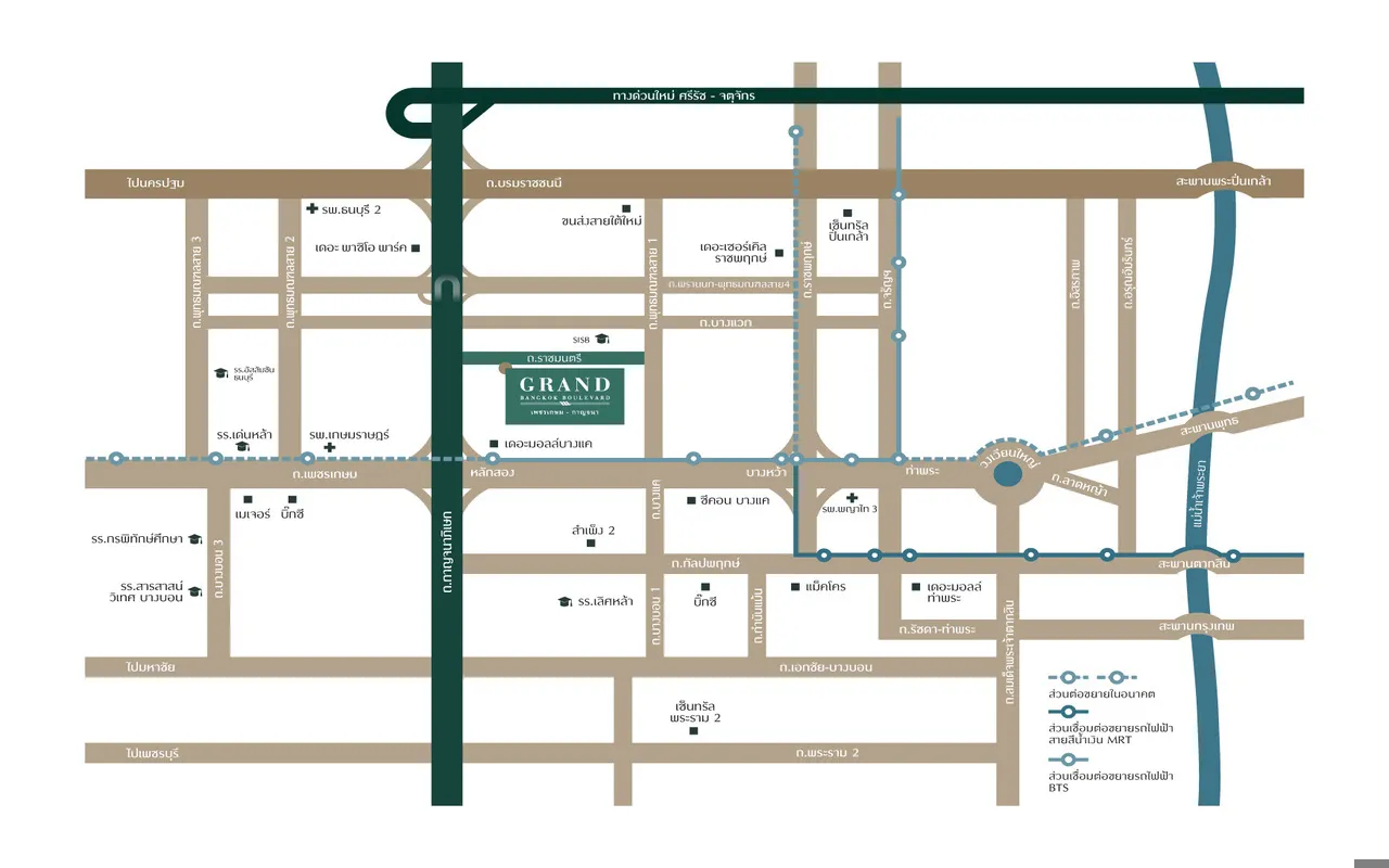 "โครงการ แกรนด์ บางกอก บูเลอวาร์ด เพชรเกษม-กาญจนา (GRAND BANGKOK BOULEVARD Petchkasem-Kanchana) เฉลิมฉลองแด่ชีวิตที่สมบูรณ์แบบ กับความยิ่งใหญ่แห่งสถาปัตยกรรมและความเชื่อมโยงเรื่องราวจากอดีตสู่ปัจจุบัน"