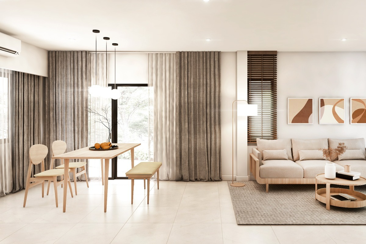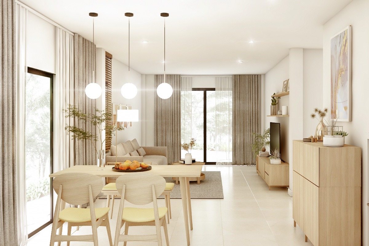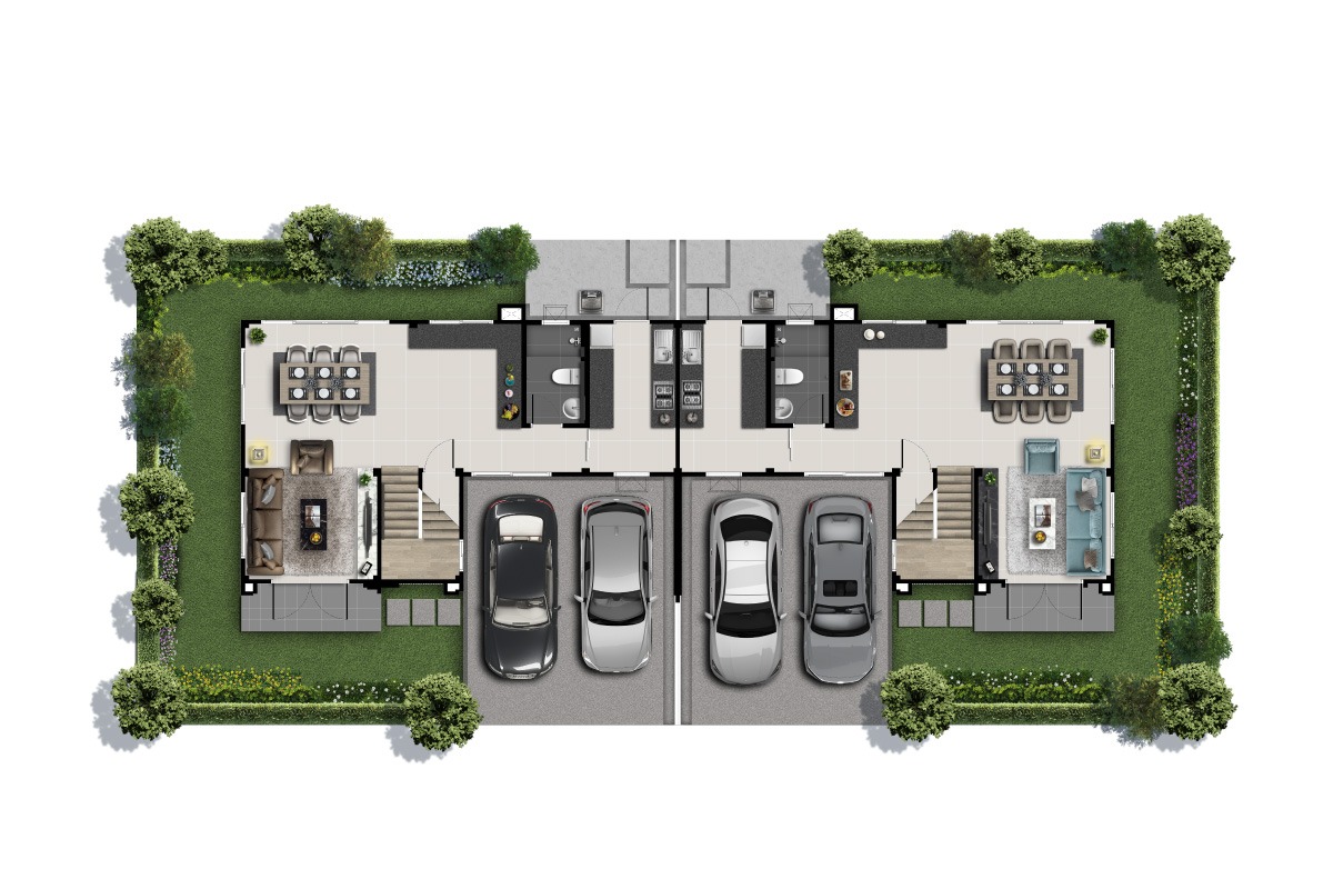แบบบ้าน : TYPE BEAMING บ้านแนวคิดใหม่ กว้าง 7 ม. พื้นที่ใช้สอย 132 ตร.ม. 3 ห้องนอน 3 ห้องน้ำ 2 ที่จอดรถ พร้อมพื้นที่สวนทุกยูนิต แบบบ้าน : TYPE VIVID