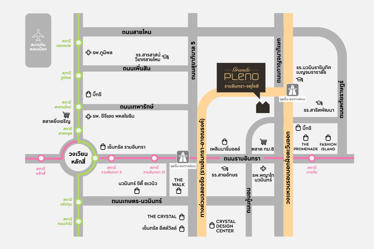 การเดินทาง ถนนลำลูกกาถนนพหลโยธินถนนสุขาภิบาล 5ถนนวัชรพลถนนเทพรักษ์ ถนนรามอินทรารถไฟฟ้าสายสีเขียว สถานีคูคตรถไฟฟ้าสายสีเขียว สถานีแยก คปอสนามบินดอนเมืองรถไฟฟ้าสาย