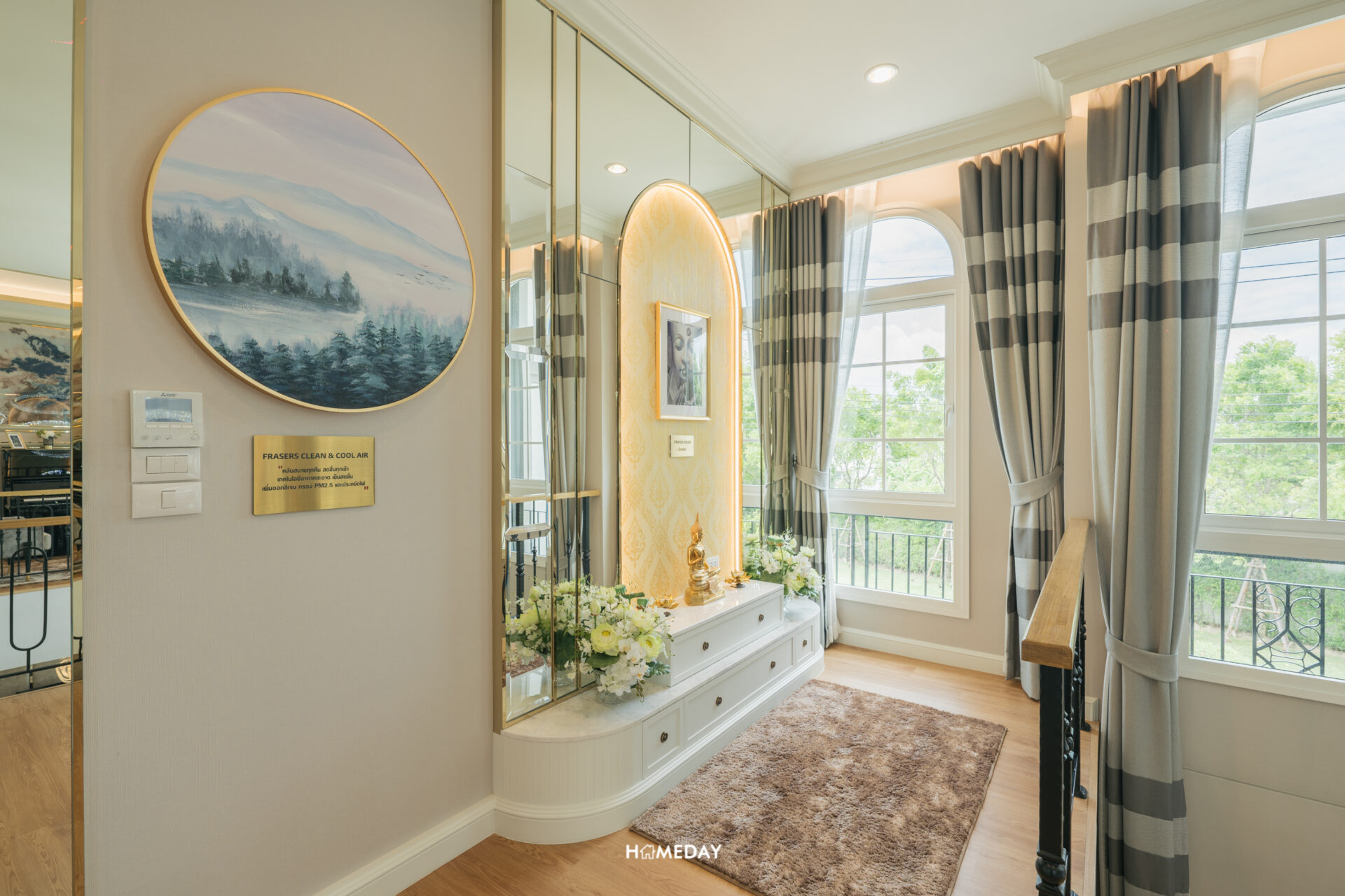 ขึ้นมาที่ชั้น 2 ของตัวบ้านกันบ้างดีกว่าครับ ขึ้นมาถึงบริเวณโถงขวามือของเราจะเป็นห้องพระ ซ้ายมือจะเป็น Corridor เชื่อมไปยังโถง Family Area ที่อยู่ฝั่งตรงข้าม