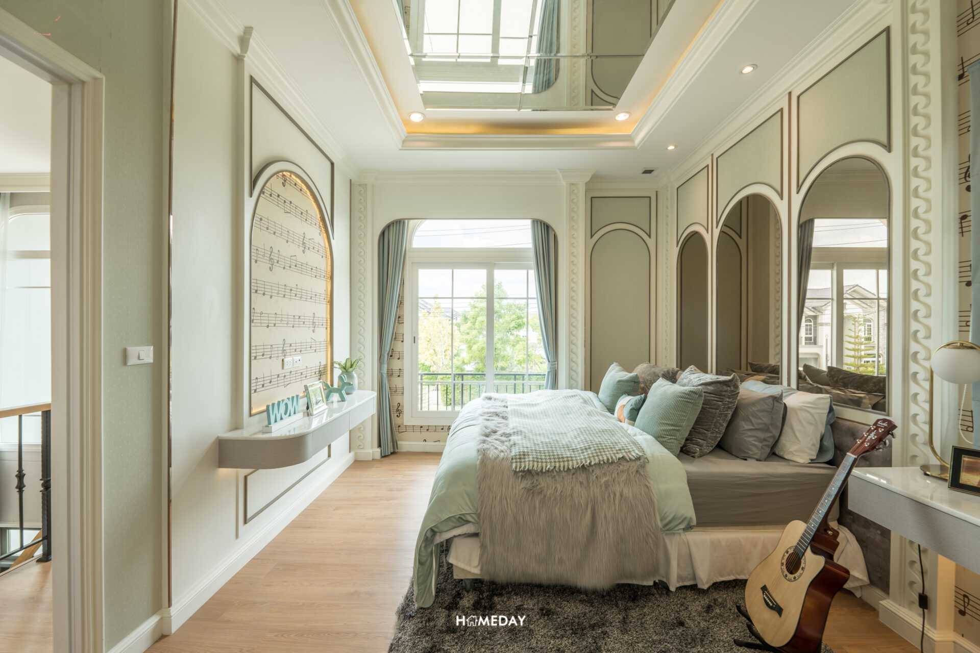 Master Bedroom อยู่ติดกับห้องพระครับ ภายในได้พื้นที่หน้ากว้างอีกเช่นเคย ขนาดความกว้างของห้องจะเท่ากับตัว Grand Master Bedroom เลยครับ เพียงแต่ห้องนี้จะมีขนาดที่ย่อมลงมาเพียงเล็กน้อยเท่านั้น และห้องนี้ส่วนของระเบียงจะไม่สามารถเปิดออกไปใช้งานได้ แต่ยังคงได้บานกระจกขนาดใหญ่ รับวิวและแสงธรรมชาติด้านนอกได้เต็มที่ไม่แพ้กัน