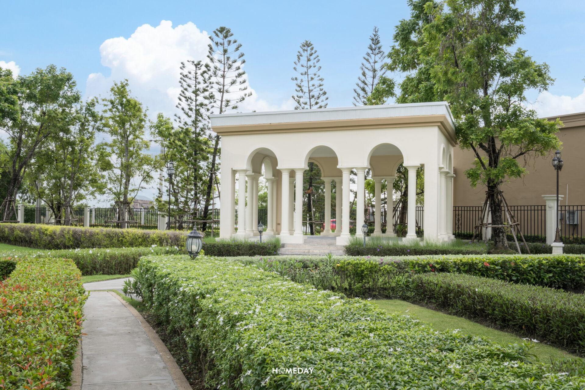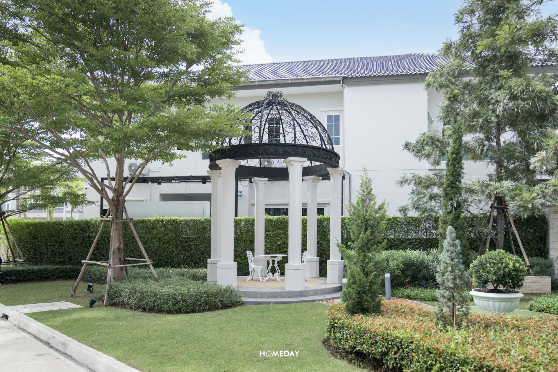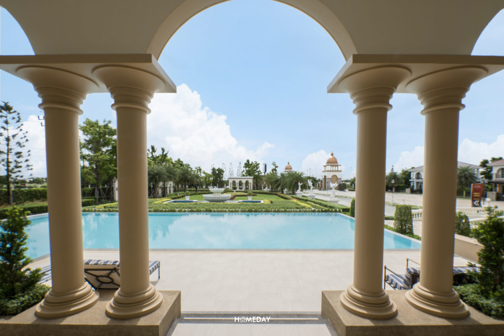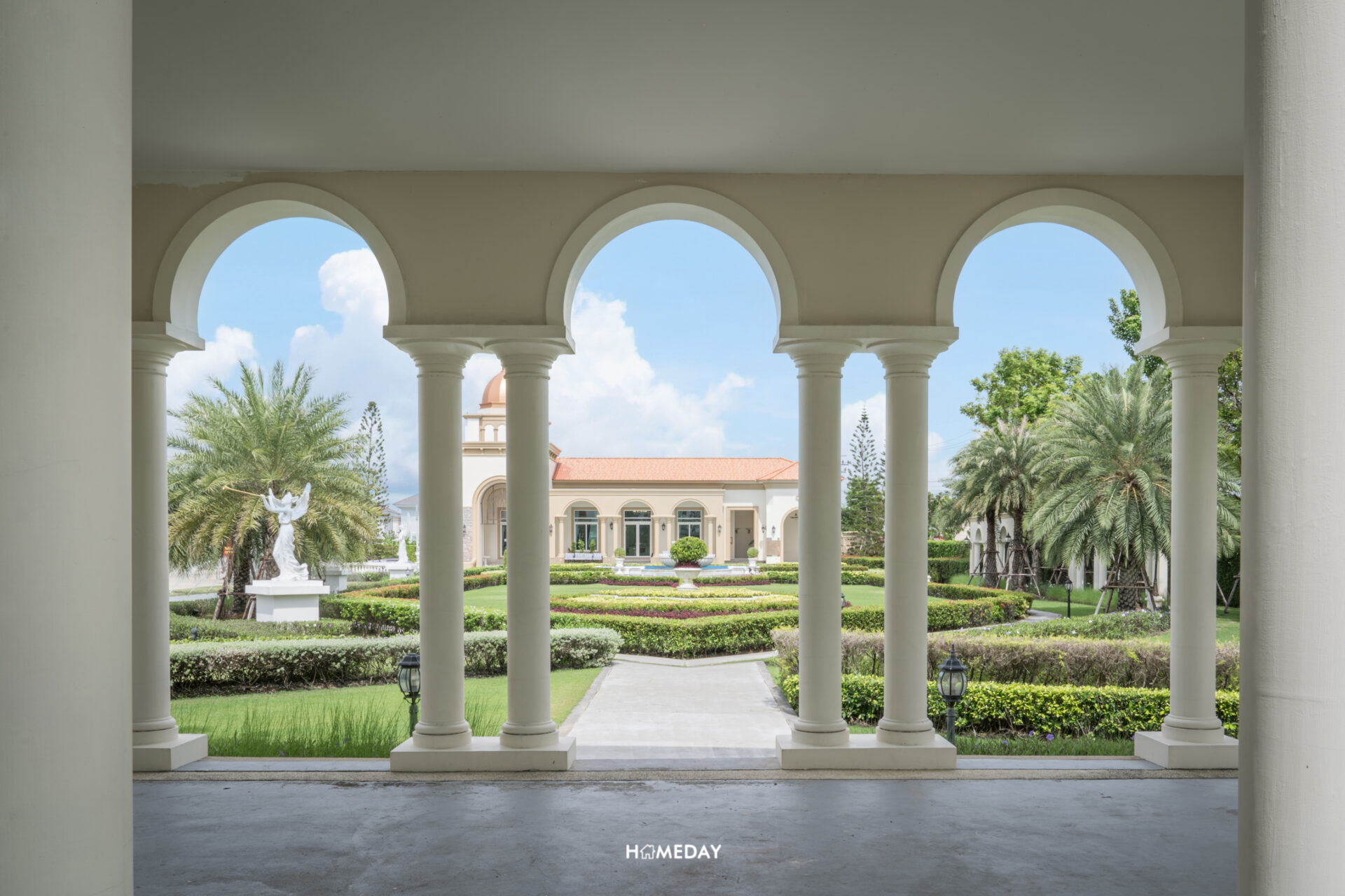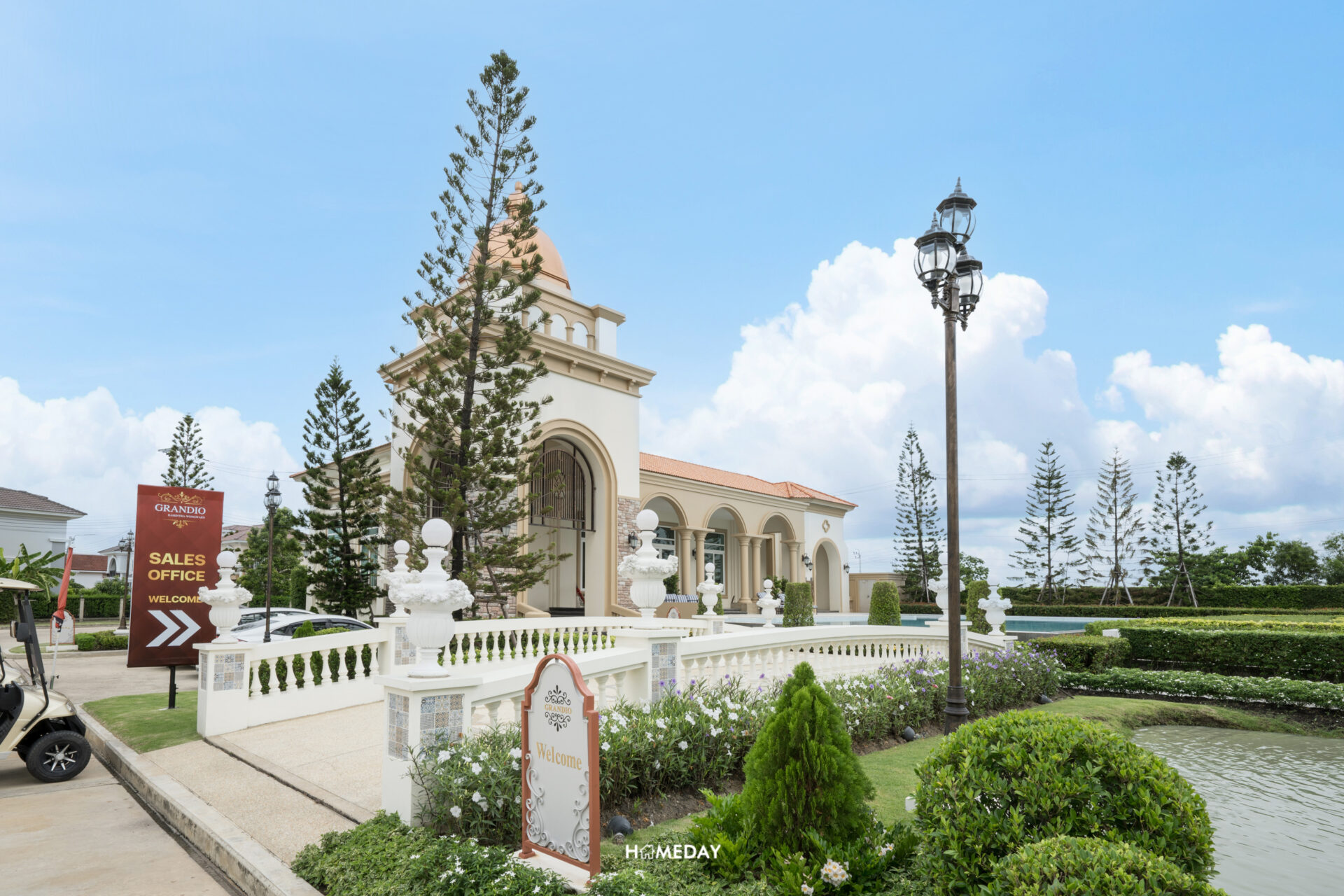 ตัวอาคาร Clubhouse ออกแบบโดยได้รับแรงบันดาลใจมาจากจัตุรัส Plaza De Espana ประเทศสเปน ซึ่งเชื่อมโยงกับงานดีไซน์บริเวณซุ้มทางเข้าได้อย่างลงตัว