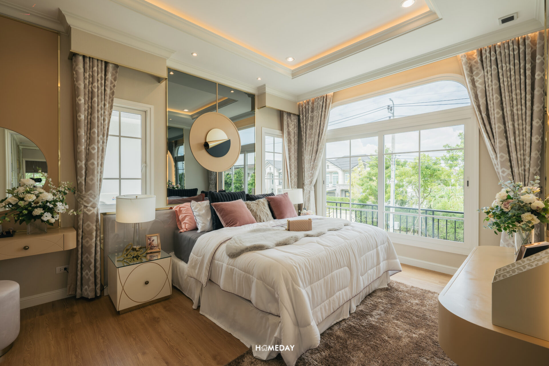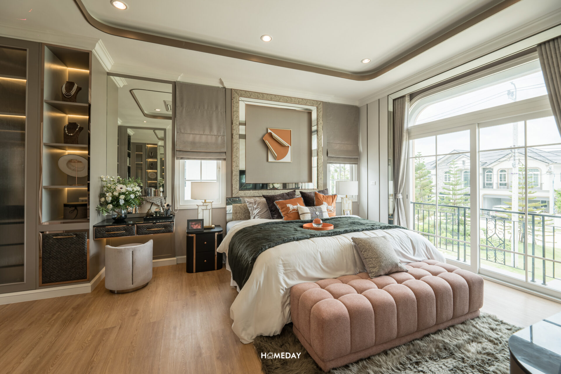 ติดกันกับ Family Area จะเป็นพื้นที่ของ Grand Master Bedroom นั่นเองครับ ตัวห้องภายในได้แปลนแบบหน้ากว้าง ขนาดใหญ่กินพื้นที่ตั้งแต่บริเวณหน้าบ้านไปจนถึงหลังบ้าน ตอบโจทย์การอยู่อาศัยสำหรับ 2 ท่านได้อย่างลงตัว มาพร้อมระเบียงของห้องที่สามารถใช้งานได้จริงครับ