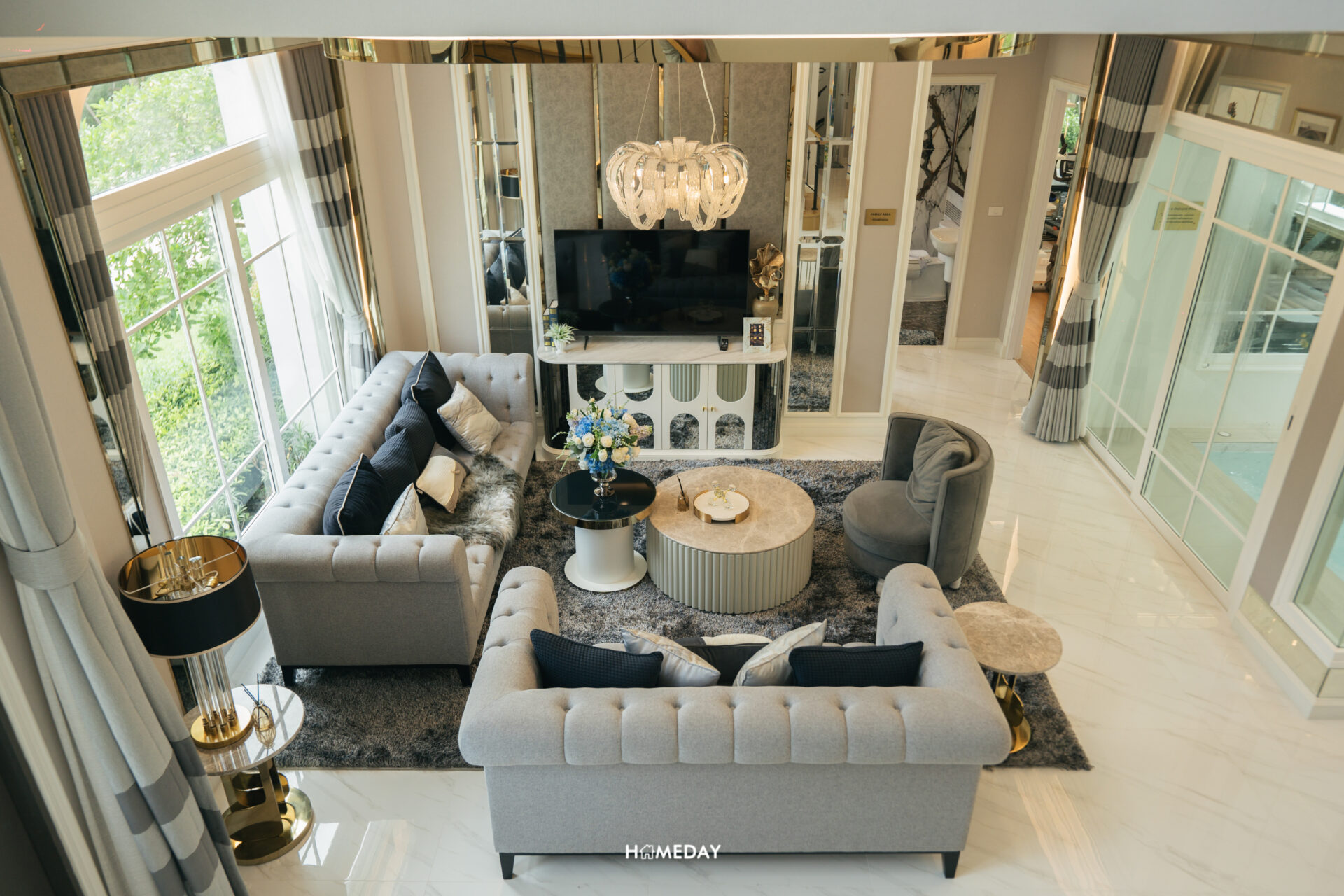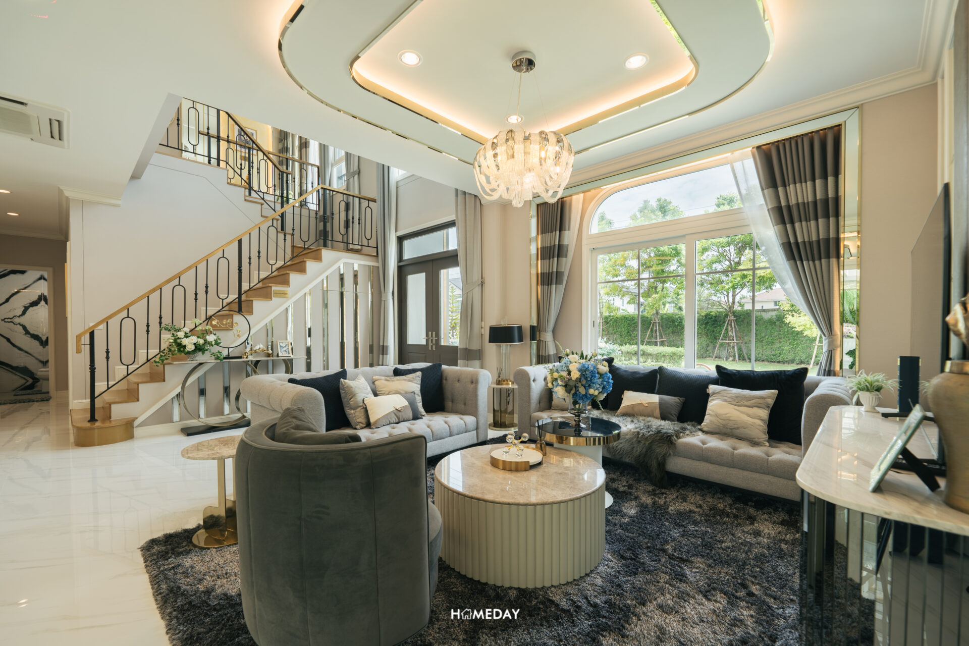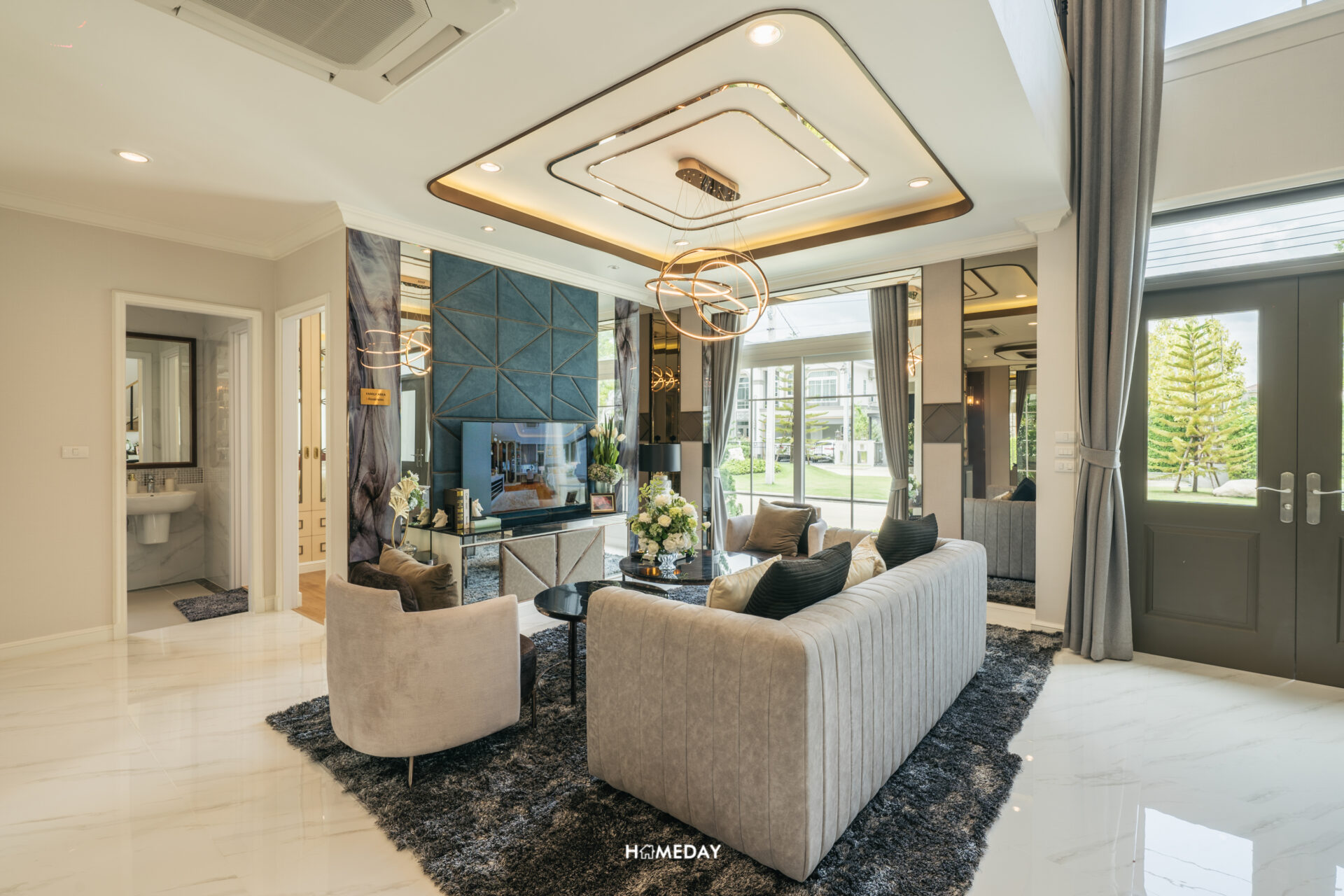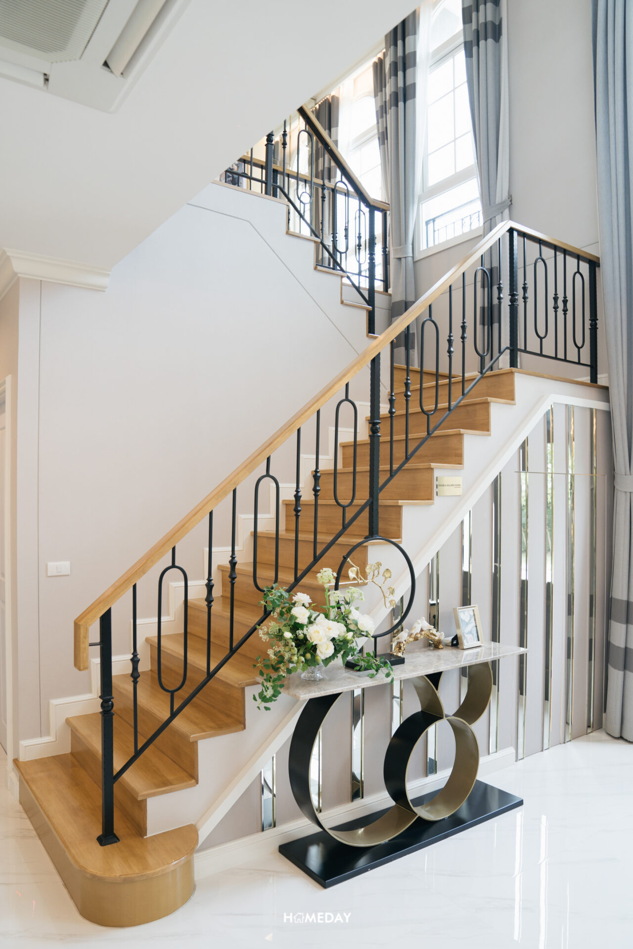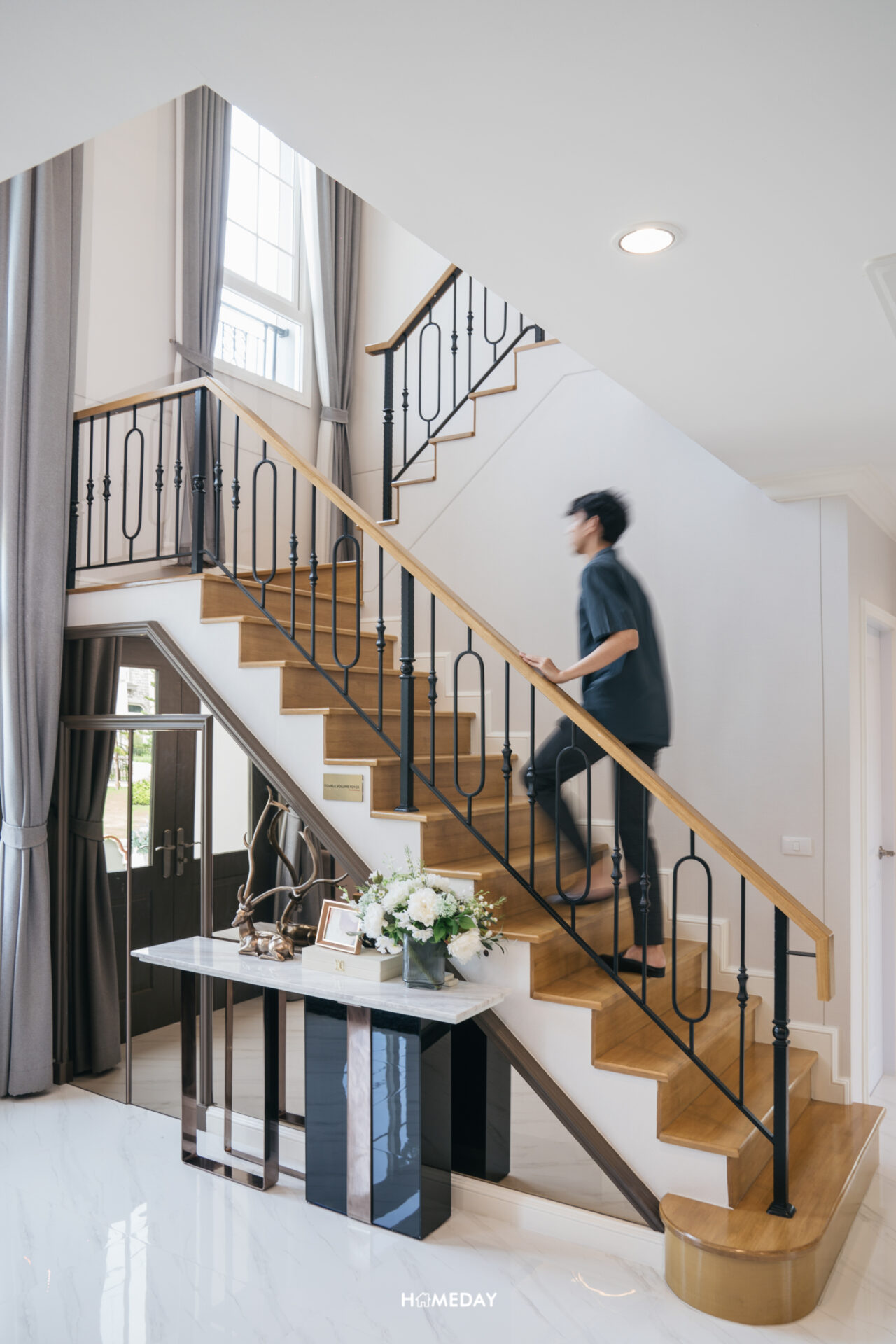 ทางเข้าหลักได้ประตูบานเปิด 2 บาน พร้อมช่องหน้าต่างรับแสง ภายในเข้ามาถึงจะเจอกับโถงต้อนรับสุดแกรนด์แบบ Double Volume