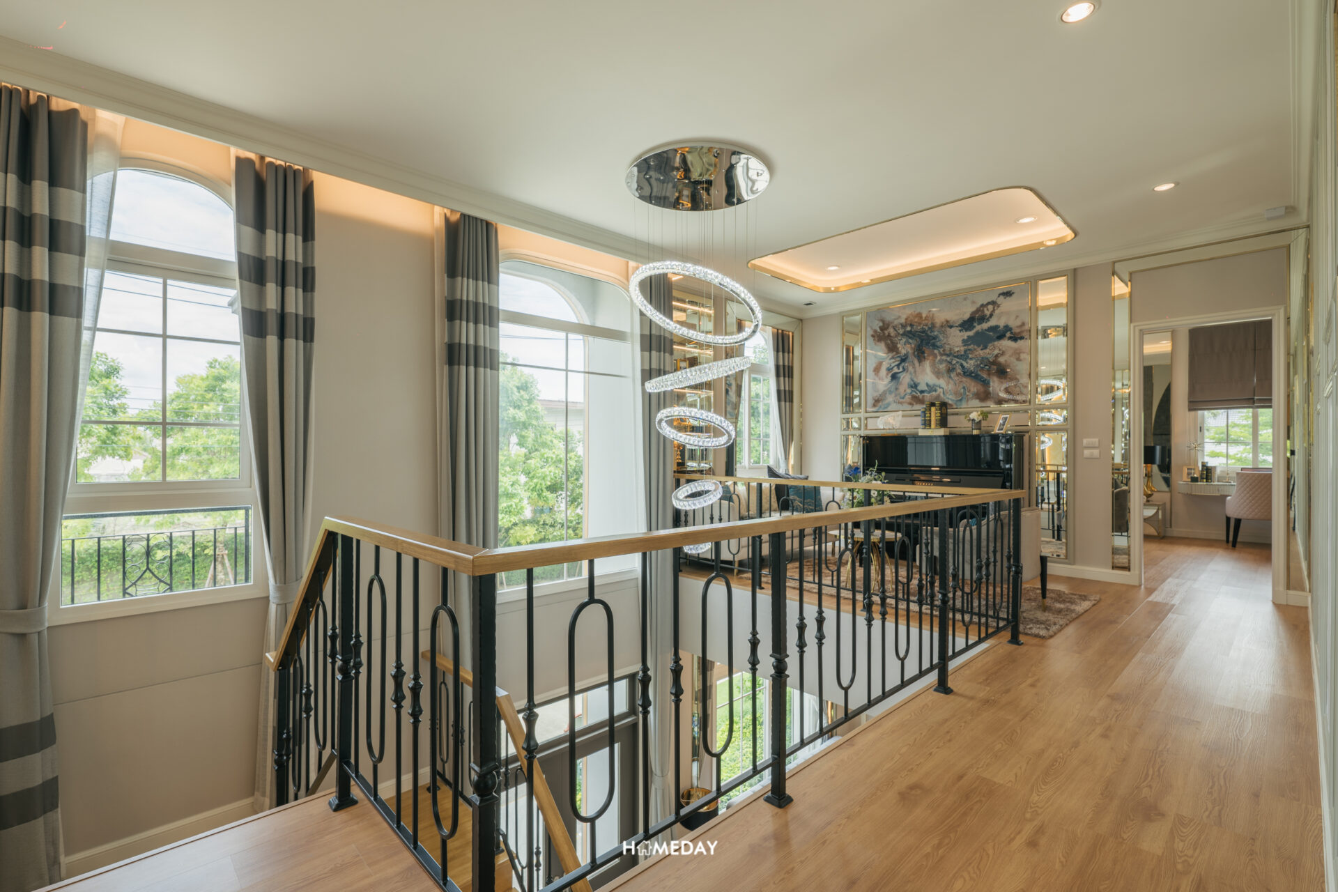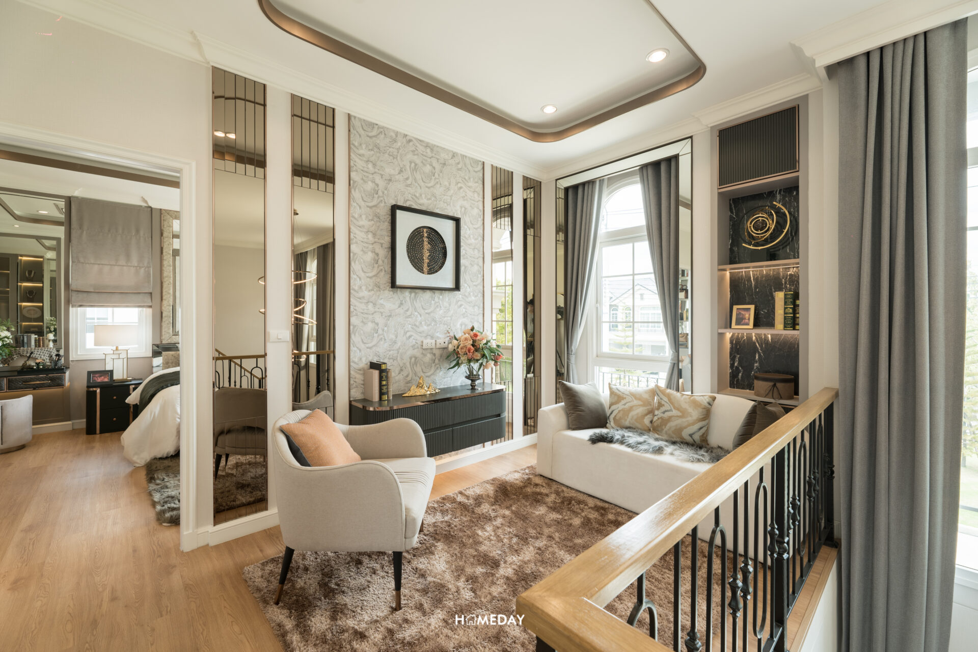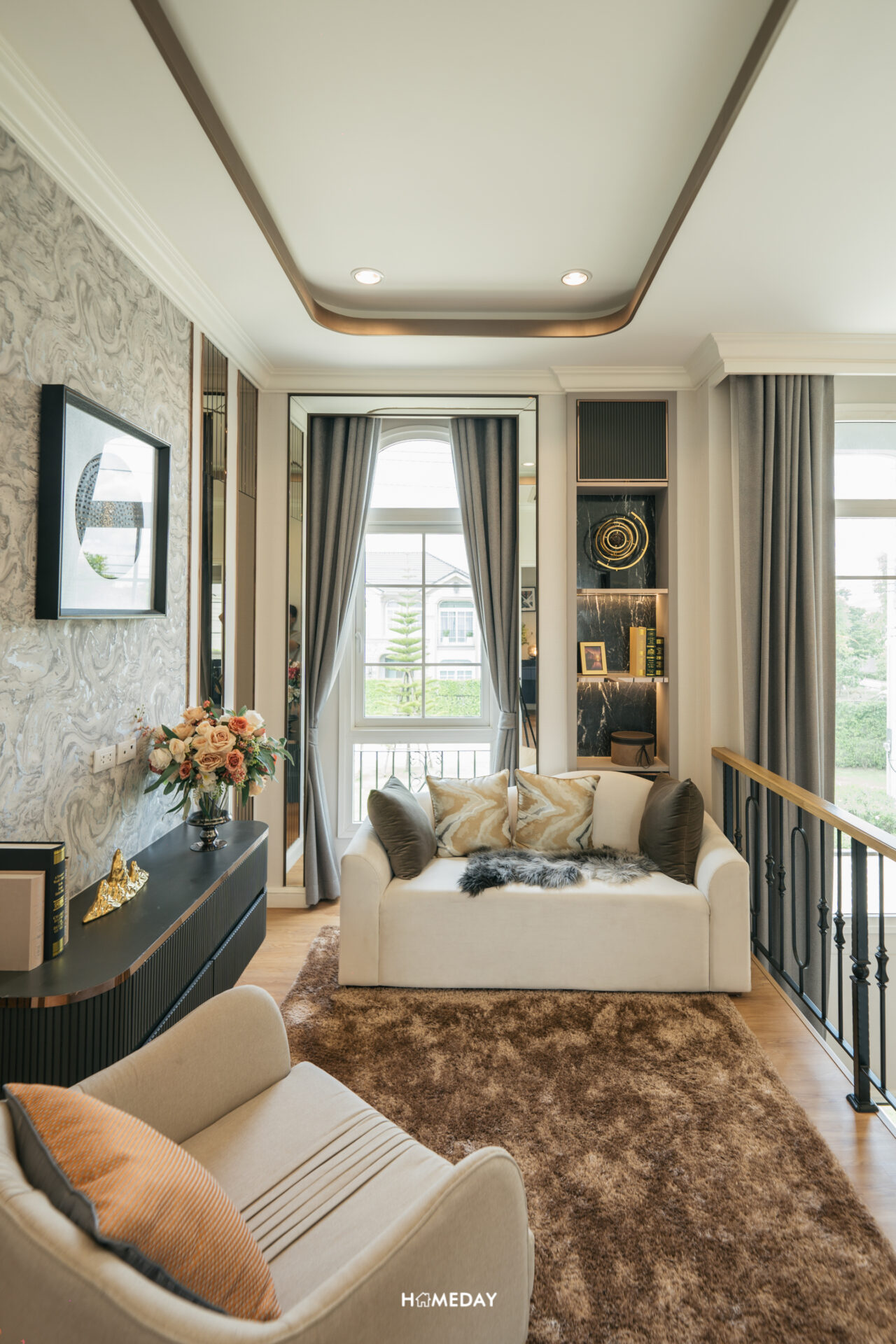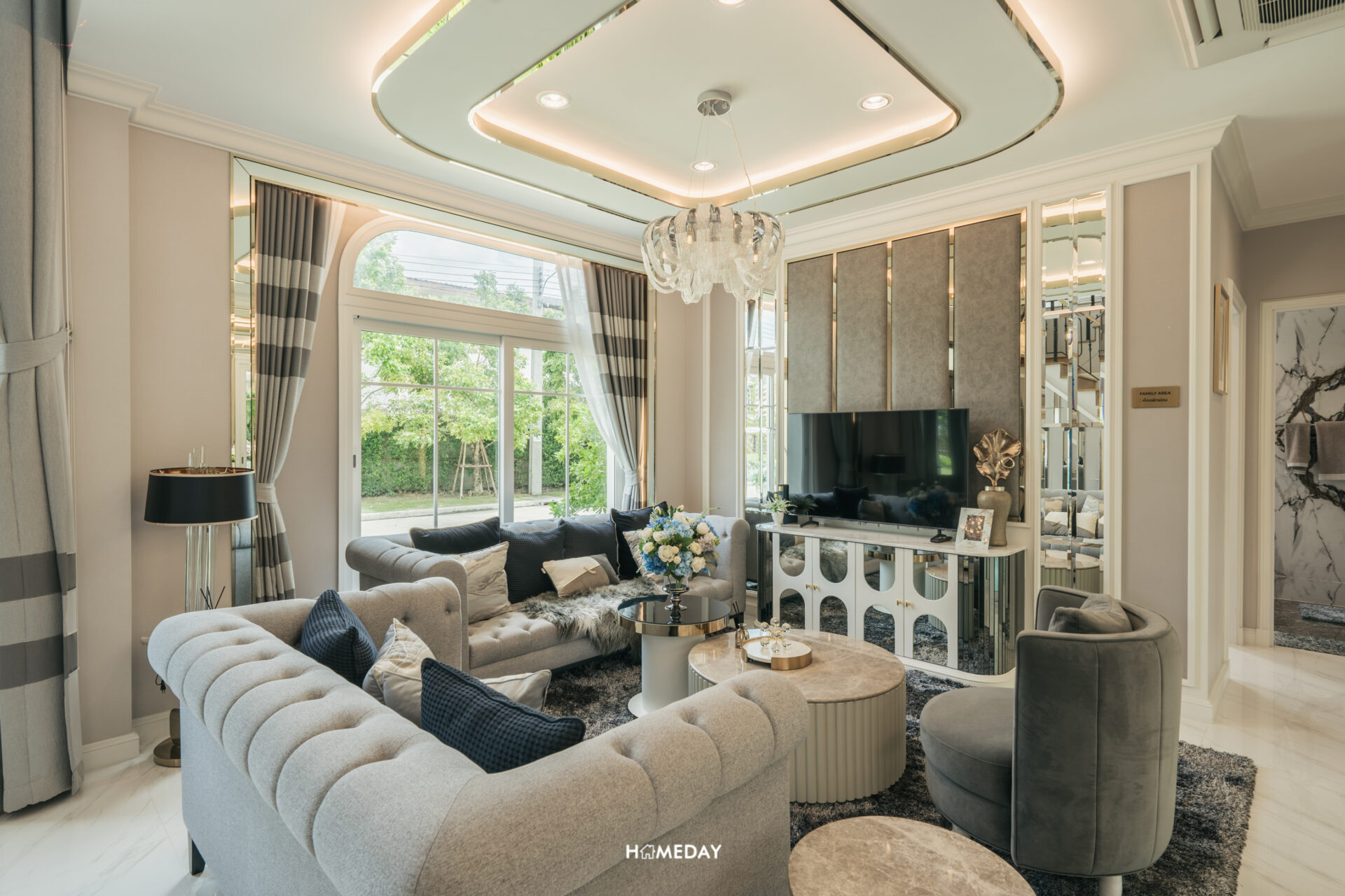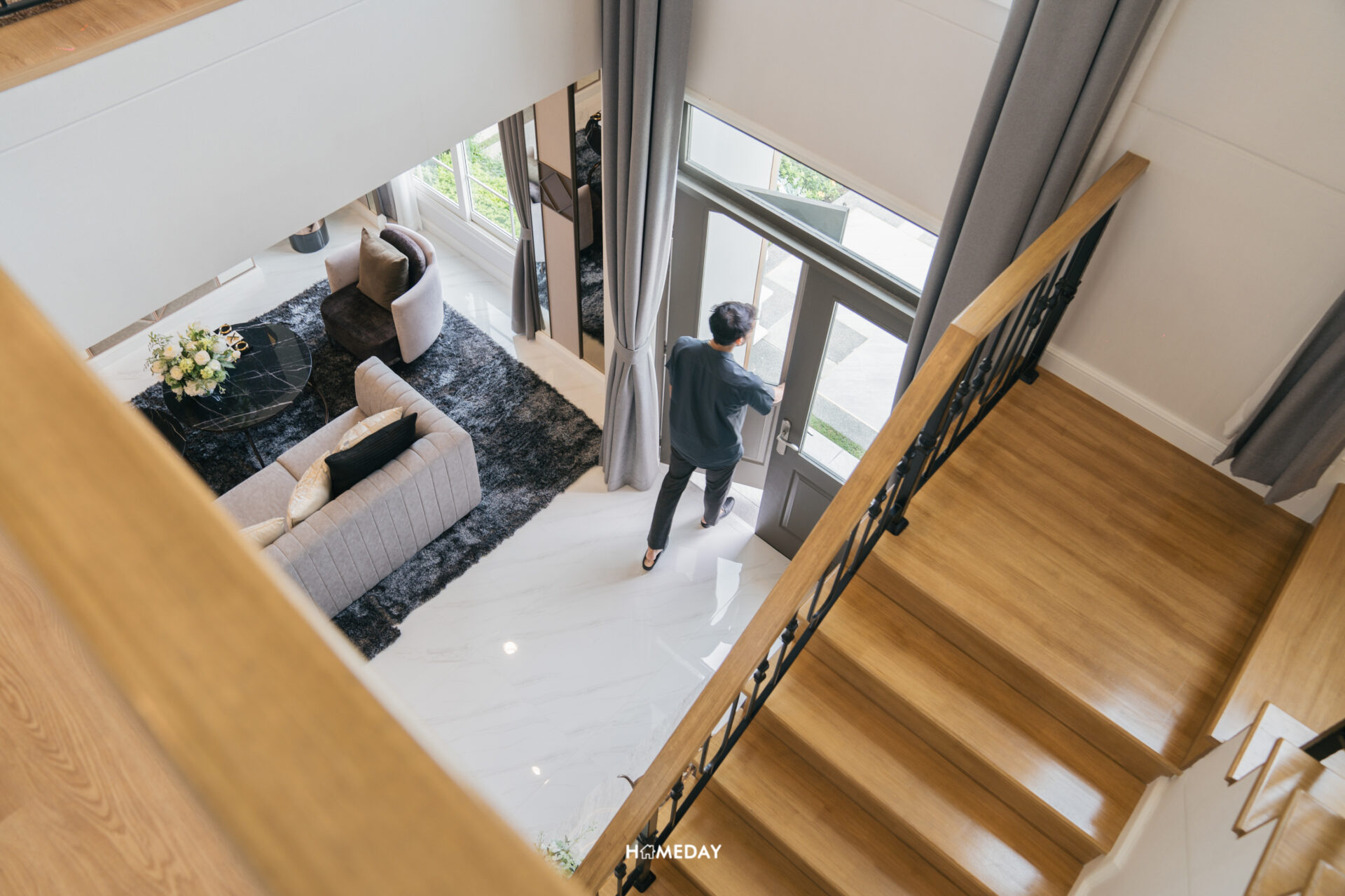 ทางเข้าหลักได้ประตูบานเปิด 2 บาน พร้อมช่องหน้าต่างรับแสง ภายในเข้ามาถึงจะเจอกับโถงต้อนรับสุดแกรนด์แบบ Double Volume