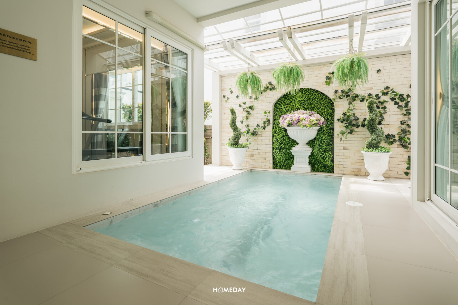 สำหรับสระว่ายน้ำส่วนตัวของแบบบ้านนี้ มีชื่อว่า Spa & Endless Pool เป็นสระว่ายน้ำระบบเกลือมาพร้อมนวัตกรรมนวดผ่อนคลายแบบสปาธาราบำบัด พร้อมระบบคลื่นว่ายน้ำทวนกระแส ทำให้แม้จะไม่ใช่ฟอร์มของสระว่ายน้ำขนาดใหญ่ ก็สามารถใช้งานในการออกกำลังกายได้เช่นกันครับ ทำให้สามารถใช้ประโยชน์จากสระว่ายน้ำได้ทั้งการผ่อนคลายและออกกำลังกายไปในตัวเลย