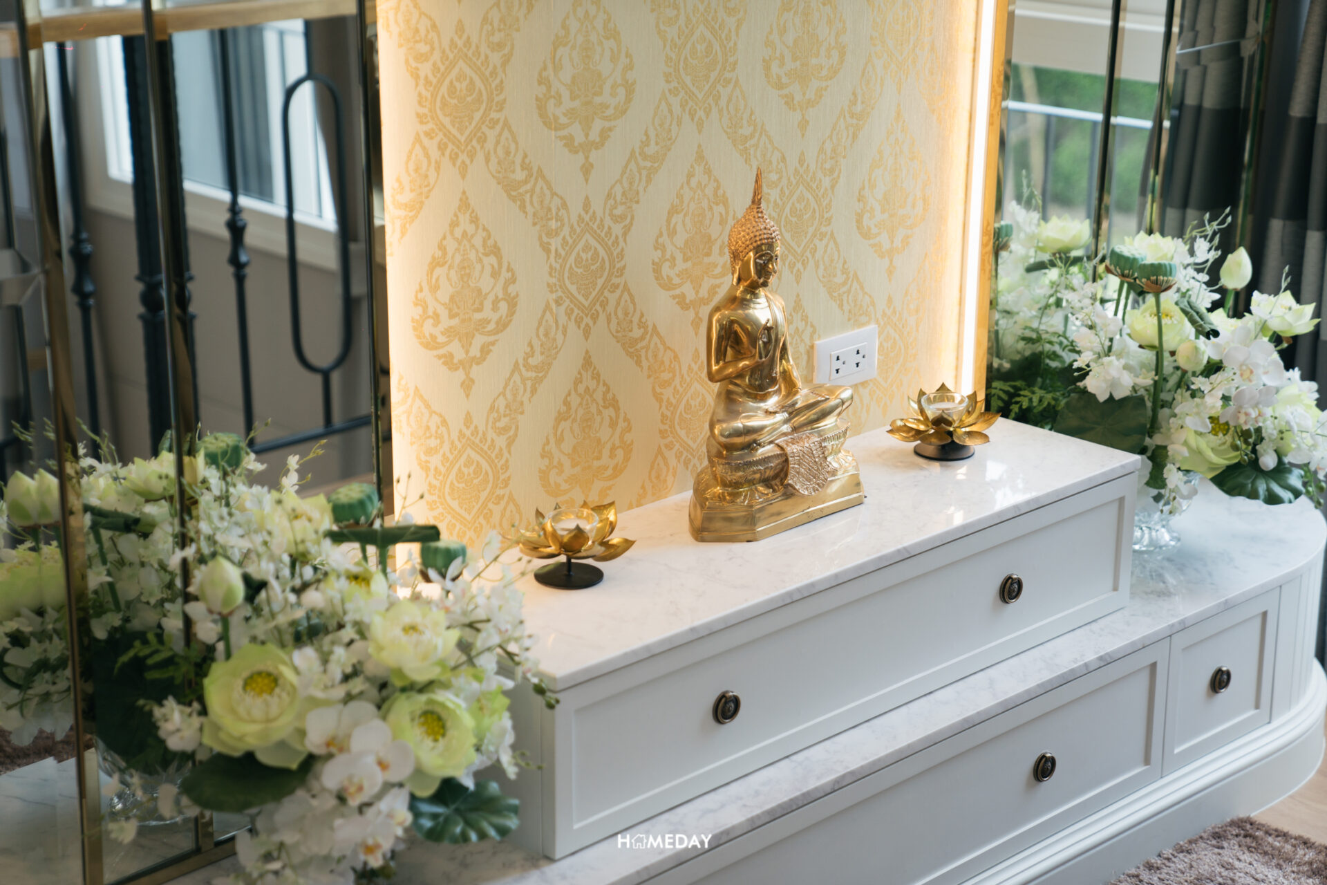 สำหรับฟังก์ชันห้องพระ ขนาดถือว่าใหญ่เลยครับ สามารถบิลต์อินชั้นวางต่าง ๆ พร้อมเหลือพื้นที่สำหรับนั่งได้สะดวกสบาย หรือหากไม่ต้องการใช้งานเป็นห้องพระ ก็สามารถปรับเป็นพื้นที่อื่น ๆ ได้ตามความต้องการครับ