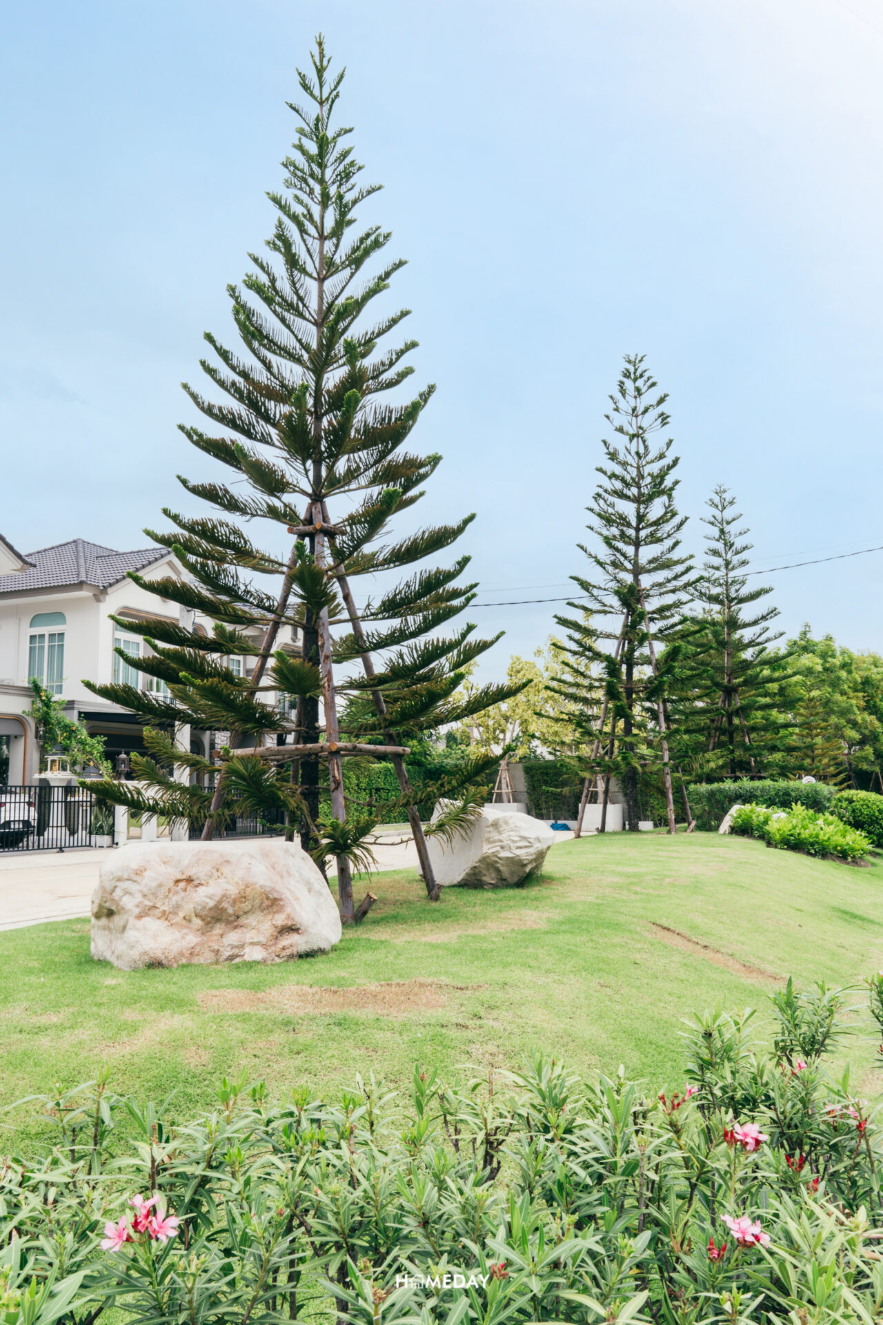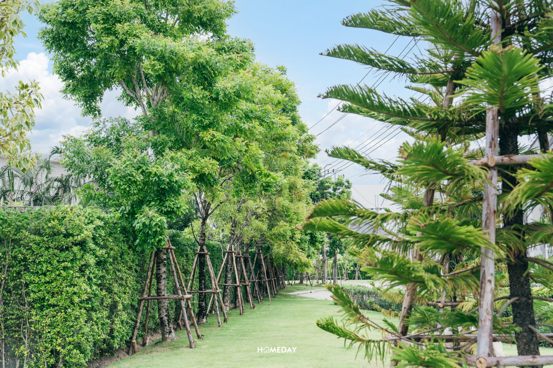 พื้นที่ส่วนกลาง พื้นที่ตั้งแต่ทางเข้า ตลอดจนสองข้างทาง ทั่วทั้งโครงการ โอบล้อมไปด้วยต้นไม้สีเขียวสบายตา เพิ่มอากาศบริสุทธิ์และความเย็นสบายได้เป็นอย่างดี ดูอบอุ่น ร่มรื่น มีชีวิตชีวามาก ๆ ครับ