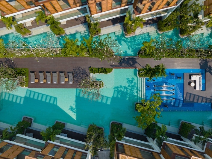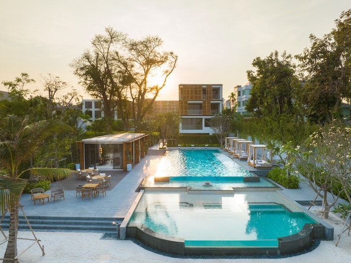 สระว่ายน้ำและ Jacuzzi ขอบใสริมหาด