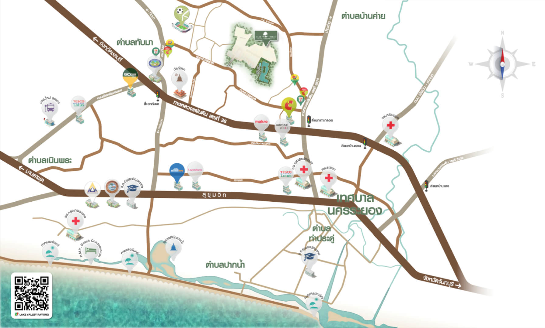 ทำเลที่ตั้ง พระราม 2 อำเภอเมืองสมุทรสาคร จังหวัดสมุทรสาคร สิ่งอำนวยความสะดวกรอบโครงการ สถานศึกษาโรงเรียนนานาชาตินอร์ริช 4 กม.โรงเรียนอัสสัมชัญ แคมปัส พระราม 2 6 กม.มหาวิทยาลัยเทคโนโลยีพระจอมเกล้าธนบุรี 21 กม.