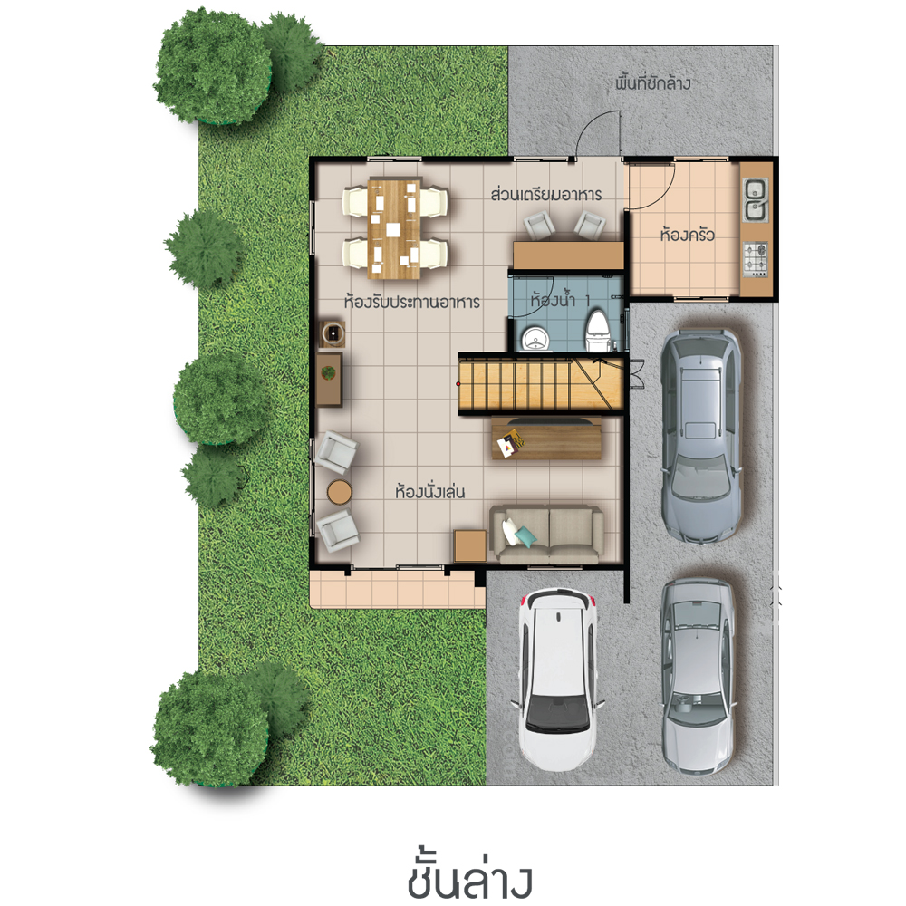บ้านแนวคิดใหม่ พื้นที่ใช้สอย 150 ตร.ม.4 ห้องนอน 2 ห้องน้ำ 1 ห้องรับแขก 1 ห้องรับประทานอาหาร ครัวแยกสัดส่วน และที่จอดรถ 2-3 คัน