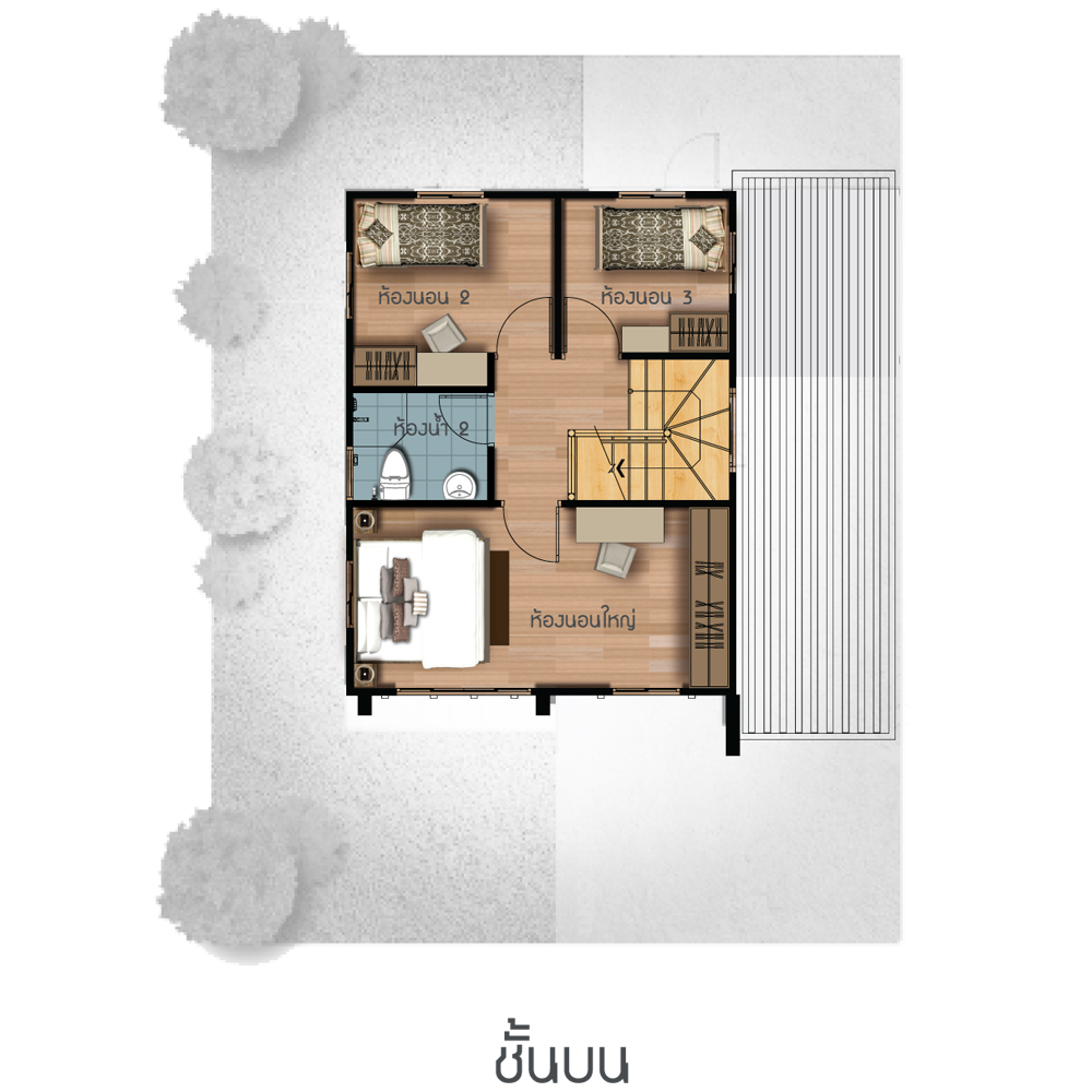 บ้านเดี่ยว พื้นที่ใช้สอย 175 ตร.ม. 4 ห้องนอน 2 ห้องน้ำ 1 ห้องรับแขก 1 ห้องรับประทานอาหาร ครัวขนาดใหญ่แยกสัดส่วน พร้อมระเบียงชมวิวในห้องนอนใหญ่และที่จอดรถ 2 คัน