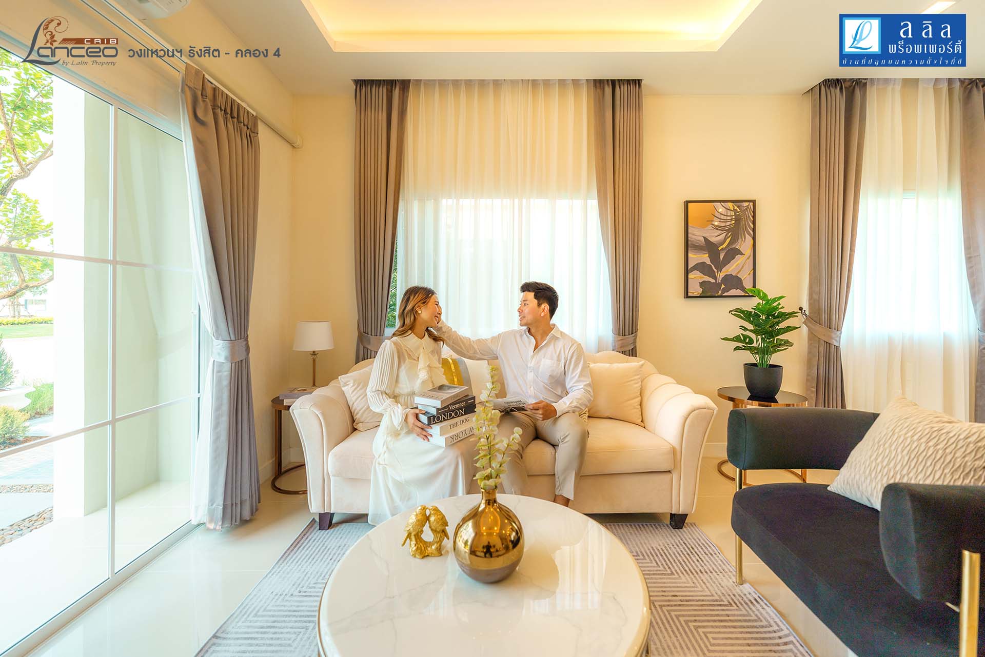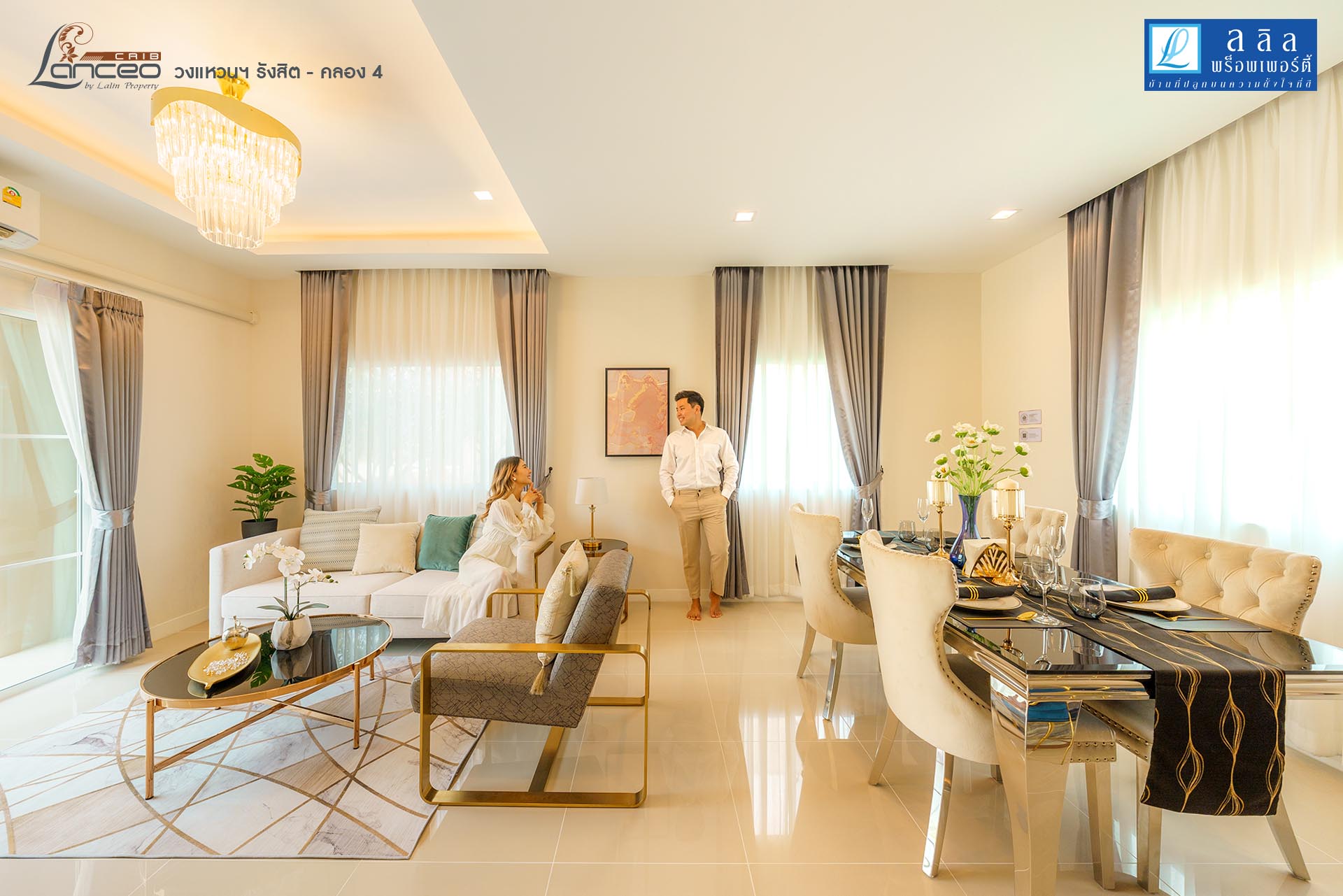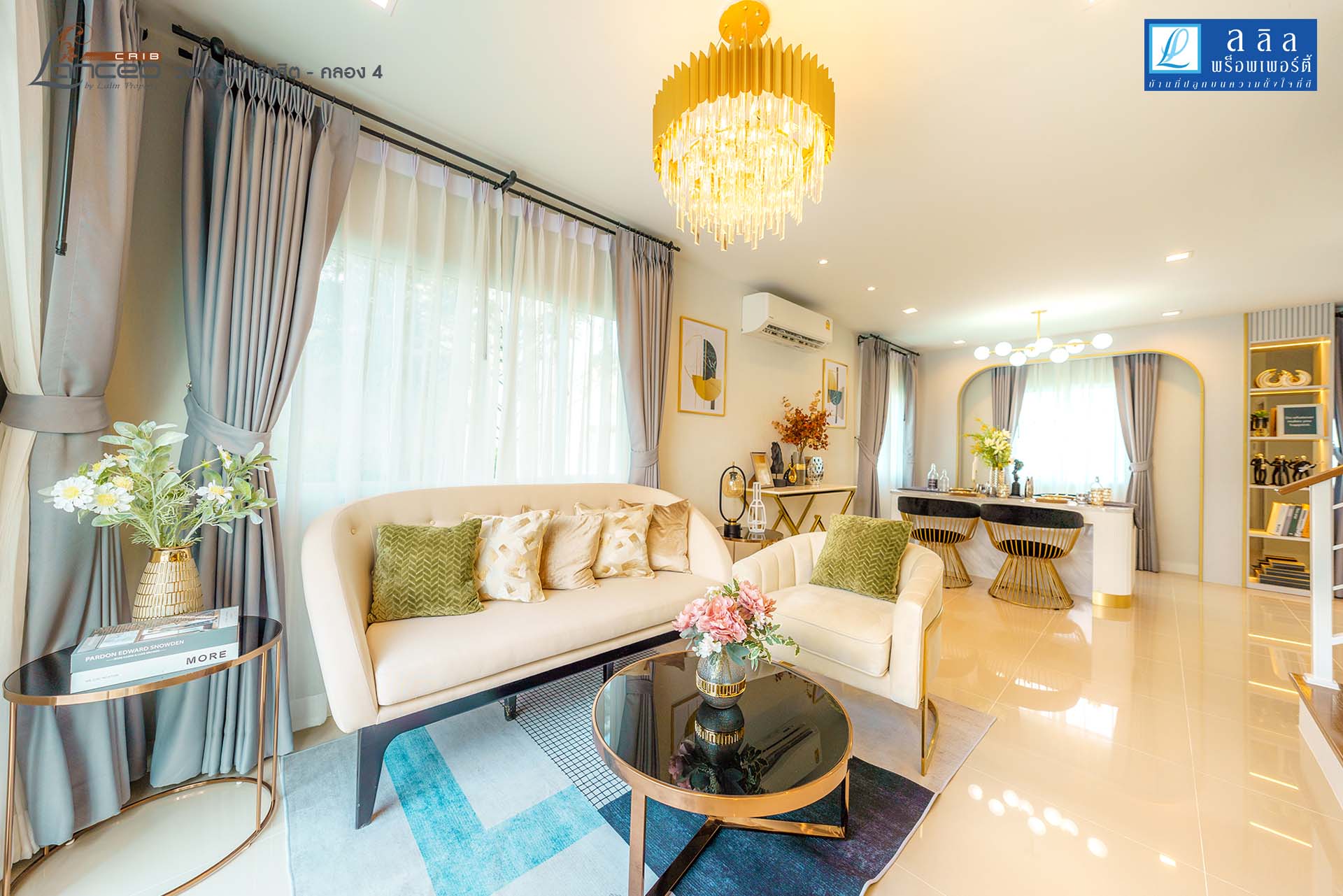 แบบบ้าน : TYPE ELTHAM พื้นที่ใช้สอย 390 ตารางเมตร 4 ห้องนอน 5 ห้องน้ำ 3 ห้องนั่งเล่น 1 ห้องพระ 1 ห้องรับประทานอาหาร 1 ห้องครัว 1 ห้องแม่บ้านพร้อมห้องน้ำในตัว ที่จอดรถ 3 คัน