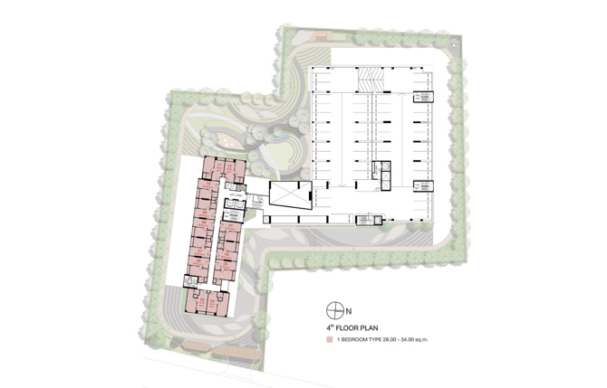ผังโครงการ ชั้นล่าง : โถงทางเข้า, สำนักงานนิติบุคคล, ห้องบริการจัดการพัสดุ, กล่องรับจดหมาย, ห้องอเนกประสงค์ และที่จอดรถยนต์ชั้น 2-3 : ที่จอดรถยนต์ชั้น 4-8 : ห้องชุดพักอาศัย, ห้องเครื่อง, ห้องเก็บของ และที่จอดรถยนต์ชั้น 9 : โถงพักผ่อน, ห้องอเนกประสงค์, ห้องคุณหนู, สระว่ายน้ำ, ห้องเฮ้าส์เวิร์ค และห้องชุดพักอาศัยชั้น 10 : ห้องอเนกประสงค์ และห้องชุดพักอาศัยชั้น 11-21 : ห้องชุดพักอาศัยชั้น 22 : สวนอินฟินิตี้ และห้องชุดพักอาศัยชั้น 23-24 : ห้องชุดพักอาศัยชั้น 25 : ฟิตเนสโซน, สวนดาดฟ้า และห้องชุดพักอาศัยชั้น 26 : ห้องชุดพักอาศัยชั้น 27 : สวนดาดฟ้า และห้องชุดพักอาศัยชั้น 28-30 : ห้องชุดพักอาศัยที่จอดรถ : ประมาณ 278 คัน