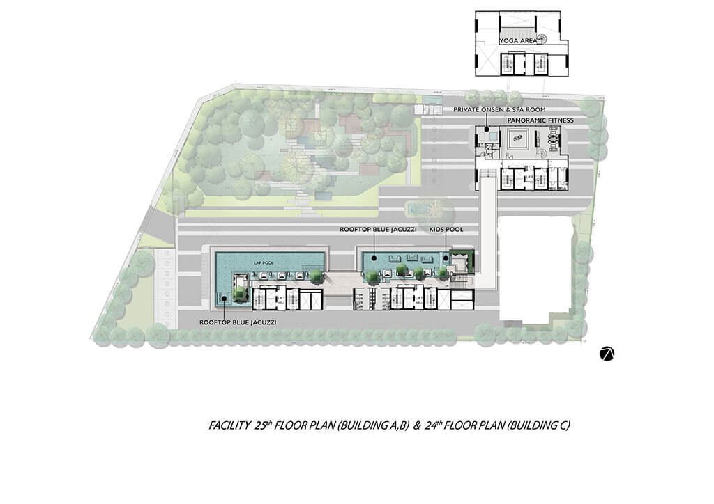 Rooftop Blue Jacuzzi, Kids Pool, Private Onsen & Spa Room, Steam & Sauna, Boxing Studio & Living Area, Panoramic Fitness, Yoga Area, Shuttle Van, Auto Parking, Access Card Control, กล้องวงจรปิด พร้อม ระบบรักษาความปลอดภัย 24 ชม.