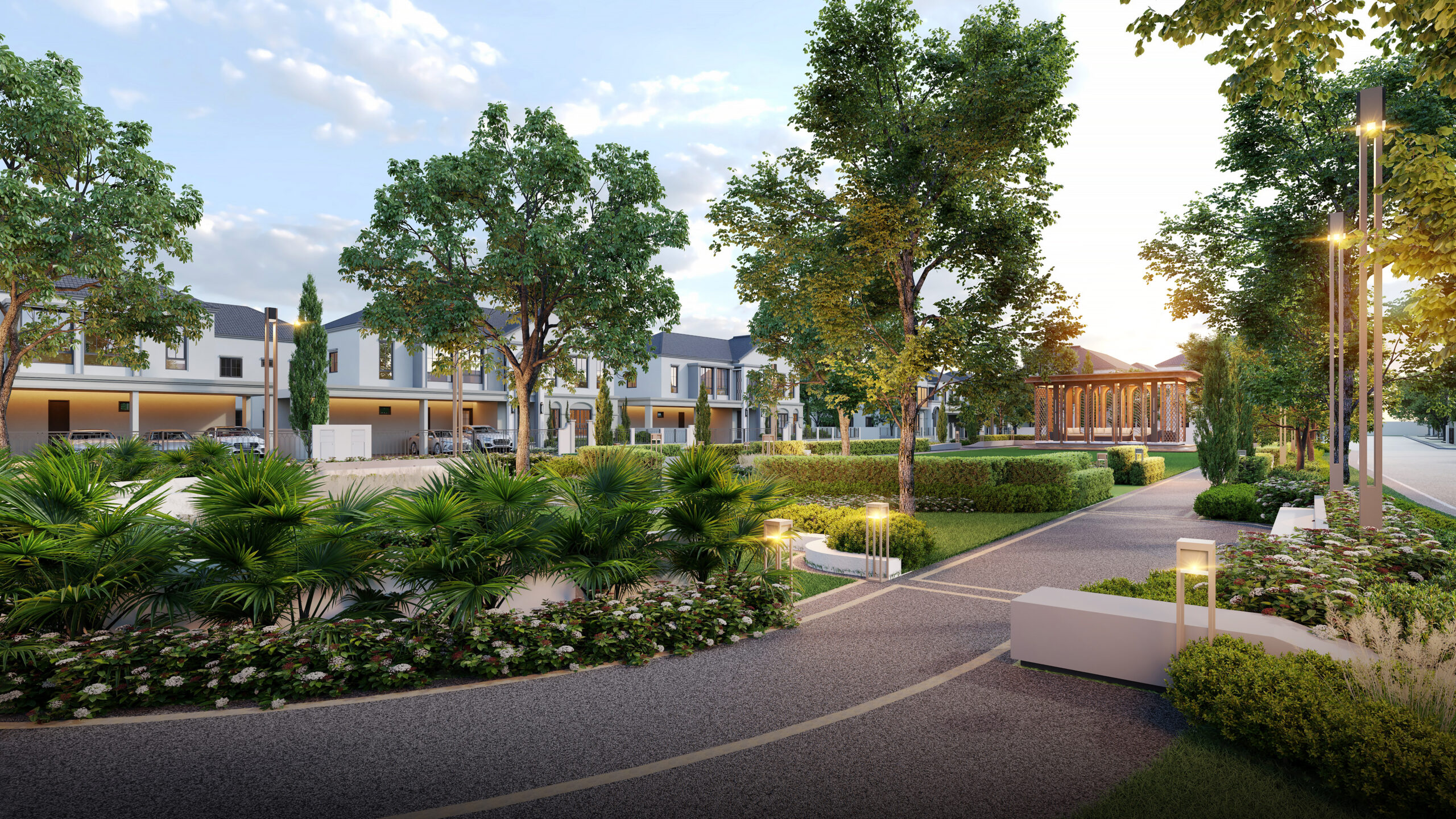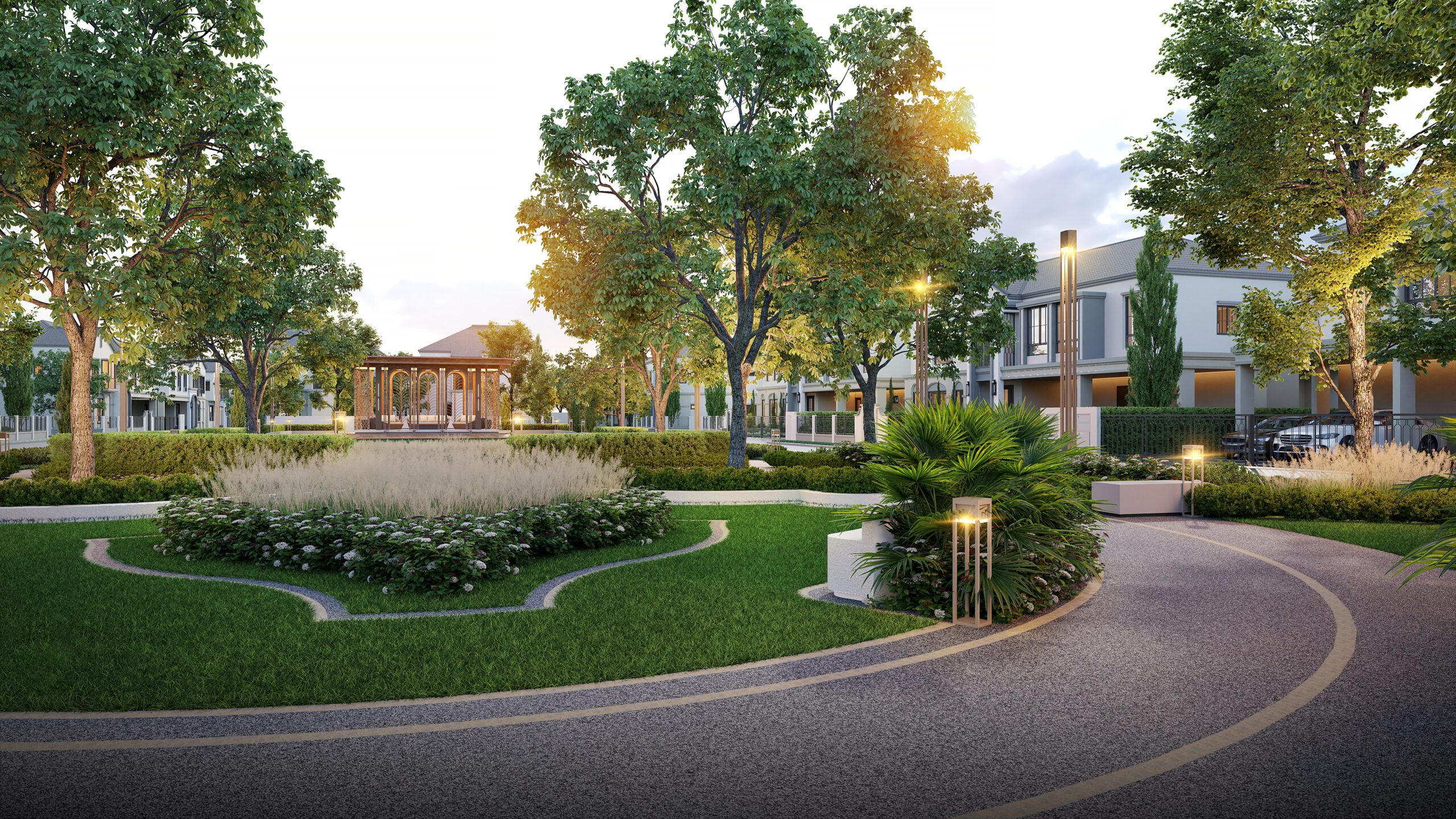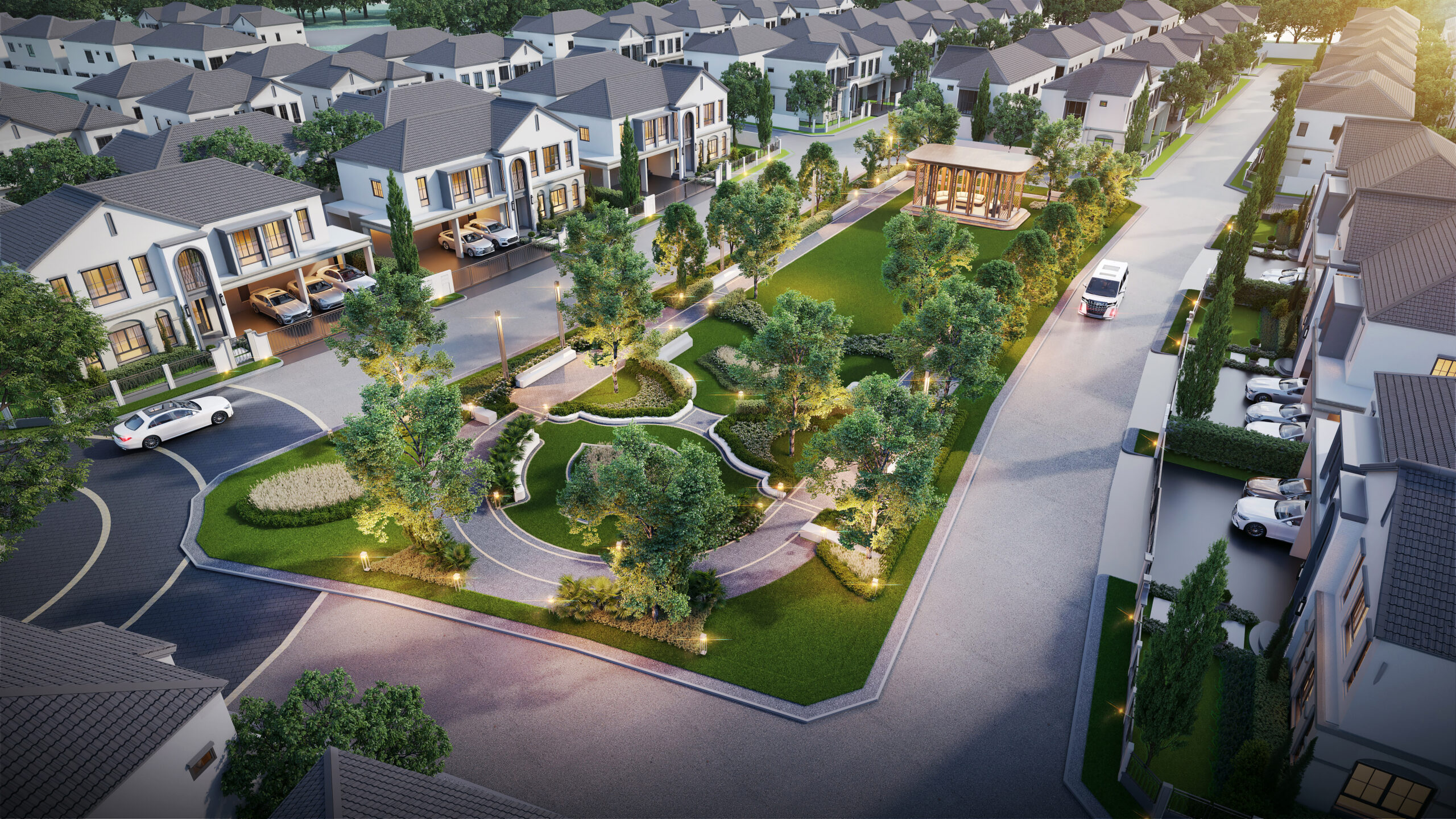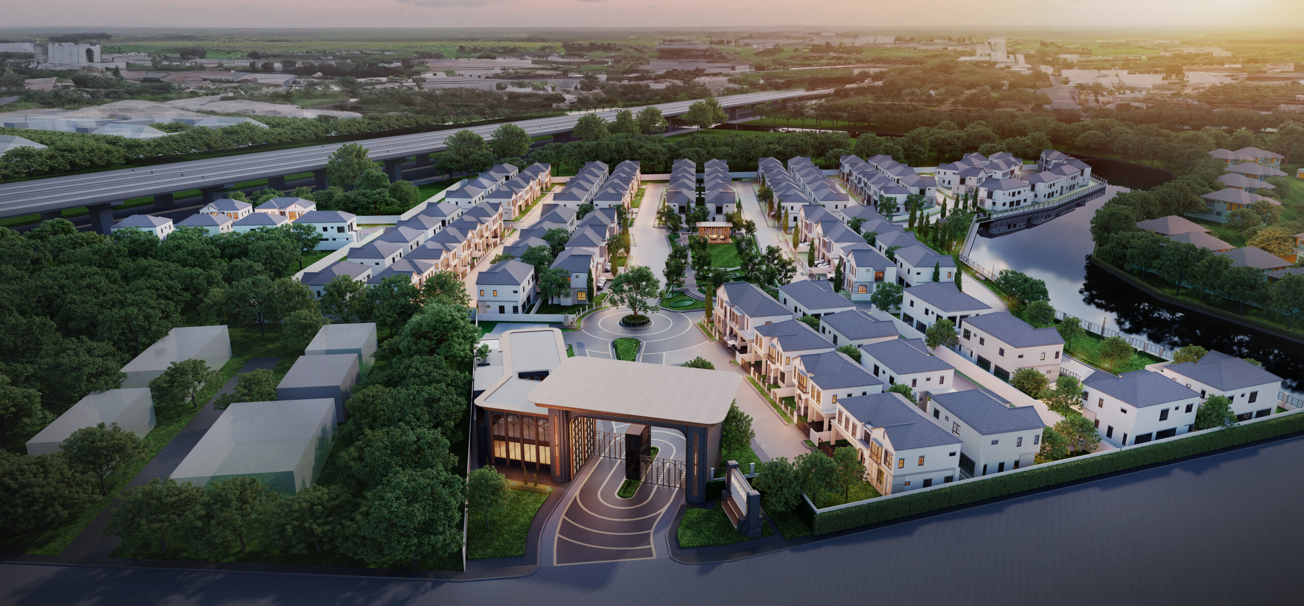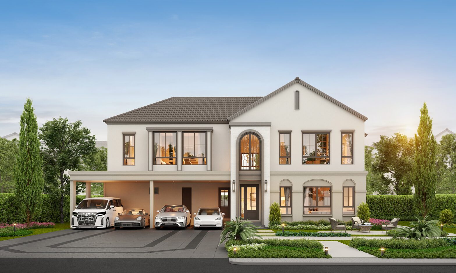 การเดินทาง วงแหวนกาญจนาวงแหวนอุตสาหกรรมทางด่วนเฉลิมมหานครสถานีรถไฟฟ้าครุใน (อนาคต) แบบบ้าน : CANNES พื้นที่ใช้สอย 174 ตร.ม.** 4 ห้องนอน พร้อมระเบียงชมวิว 3 ห้องน้ำ 1 ห้องรับแขก ส่วนเตรียมอาหาร ครัวแยกเป็นสัดส่วน ที่จอดรถ 2 คัน