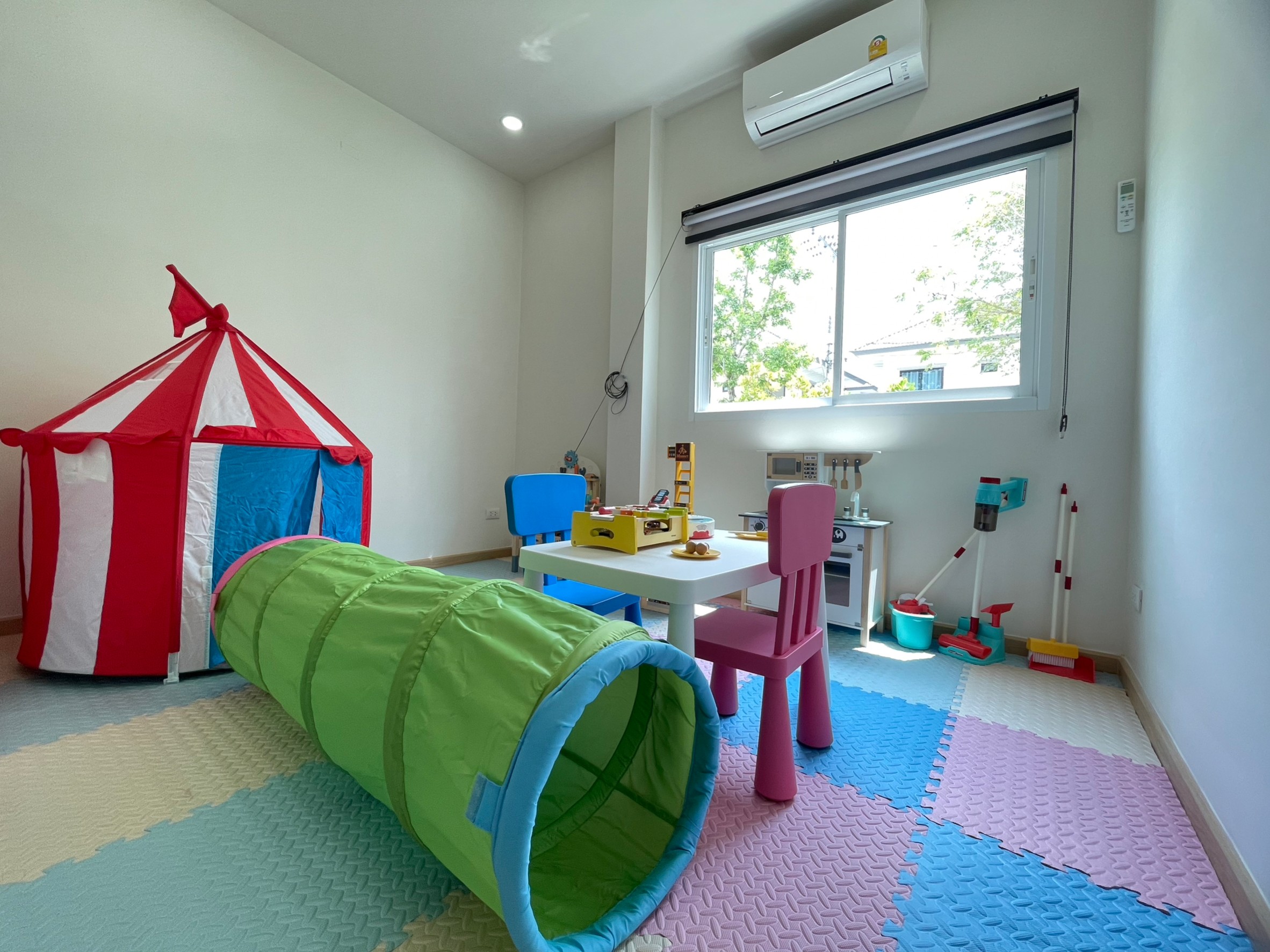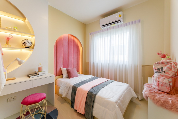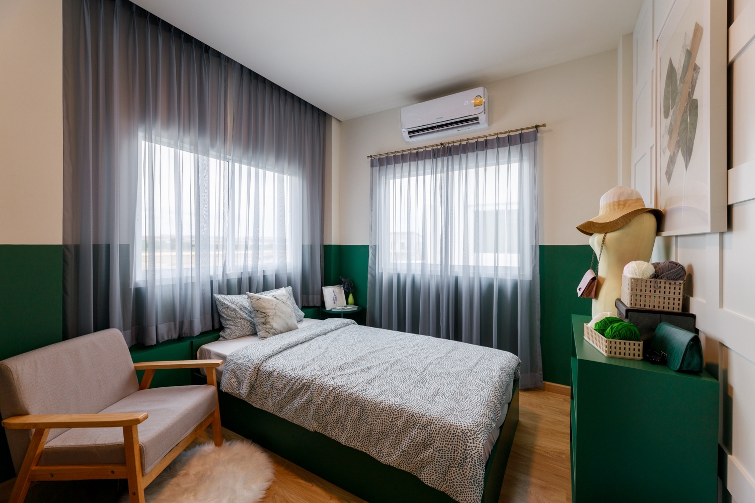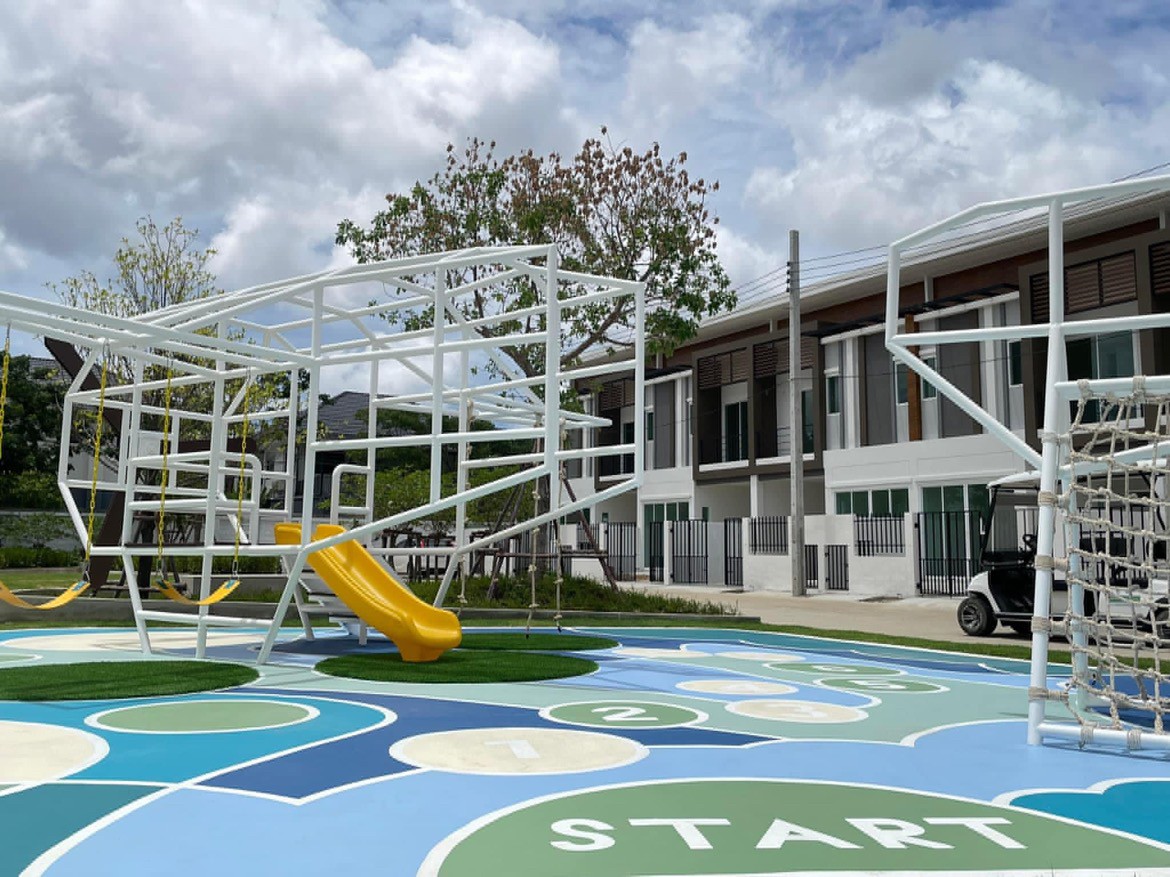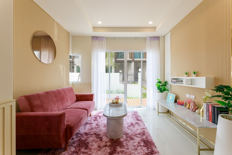 จุดเด่น :ได้พื้นที่สวนด้านข้าง และ พื้นที่ใช้สอย เหมือนบ้านเดี่ยวห้องอเนกประสงค์ชั้นล่าง ปรับเป็นห้องทำงาน หรือ ห้องนอนผู้สูงอายุได้Master Bedroom มีห้องน้ำในตัว และ Walk-in Closet ให้พร้อมห้องน้ำแยกโซนเปีกโวนแห้งทุกห้องเพิ่มความสว่างให้กับบ้าน ด้วยประตู หน้าต่างบานใหญ่Double High Space เพดานสูง โปร่ง กว่า 4 เมตรชั้นลอยอเนกประสงค์ ปรับเป็นห้องพระ หรือ ห้องพักผ่อน ได้ตามใจแข็งแรง สร้างด้วยอิฐมอญแดง ใช้วัสดุดี เทียบเท่าบ้านเดี่ยวลงเข็ม I22 และปูพรมเข็มที่จอดรถรู้ใจด้วย ถังน้ำ-ปั๊มน้ำ DOS , ระบบน้ำร้อนน้ำอุ่น , สาย Fiber Optic , สาย LAN, ไฟฉุกเฉิน และห้องเก็บของขนาดใหญ่เป็นส่วนตัว กำแพงระหว่างแปลงสูง 1.7 เมตร