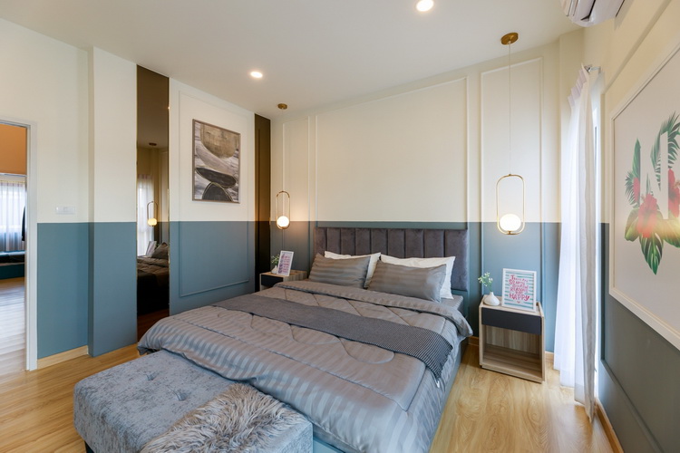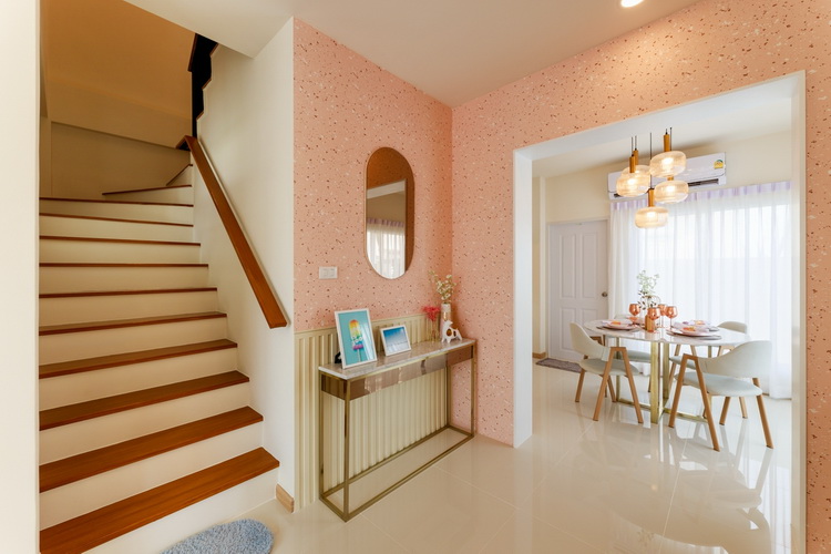 จุดเด่น :Master Bedroom มีห้องน้ำในตัว และ Walk-in Closet ให้พร้อมเพิ่มความสว่างให้กับบ้าน ด้วยประตู หน้าต่างบานใหญ่Double High Space เพดานสูง โปร่ง กว่า 4 เมตรชั้นลอยอเนกประสงค์ ปรับเป็นห้องพระ หรือ ห้องพักผ่อน ได้ตามใจแข็งแรง สร้างด้วยอิฐมอญแดง ใช้วัสดุดี เทียบเท่าบ้านเดี่ยวลงเข็ม I22 และปูพรมเข็มที่จอดรถรู้ใจด้วย ถังน้ำ-ปั๊มน้ำ DOS , ระบบน้ำร้อนน้ำอุ่น , สาย Fiber Optic , สาย LAN, ไฟฉุกเฉิน