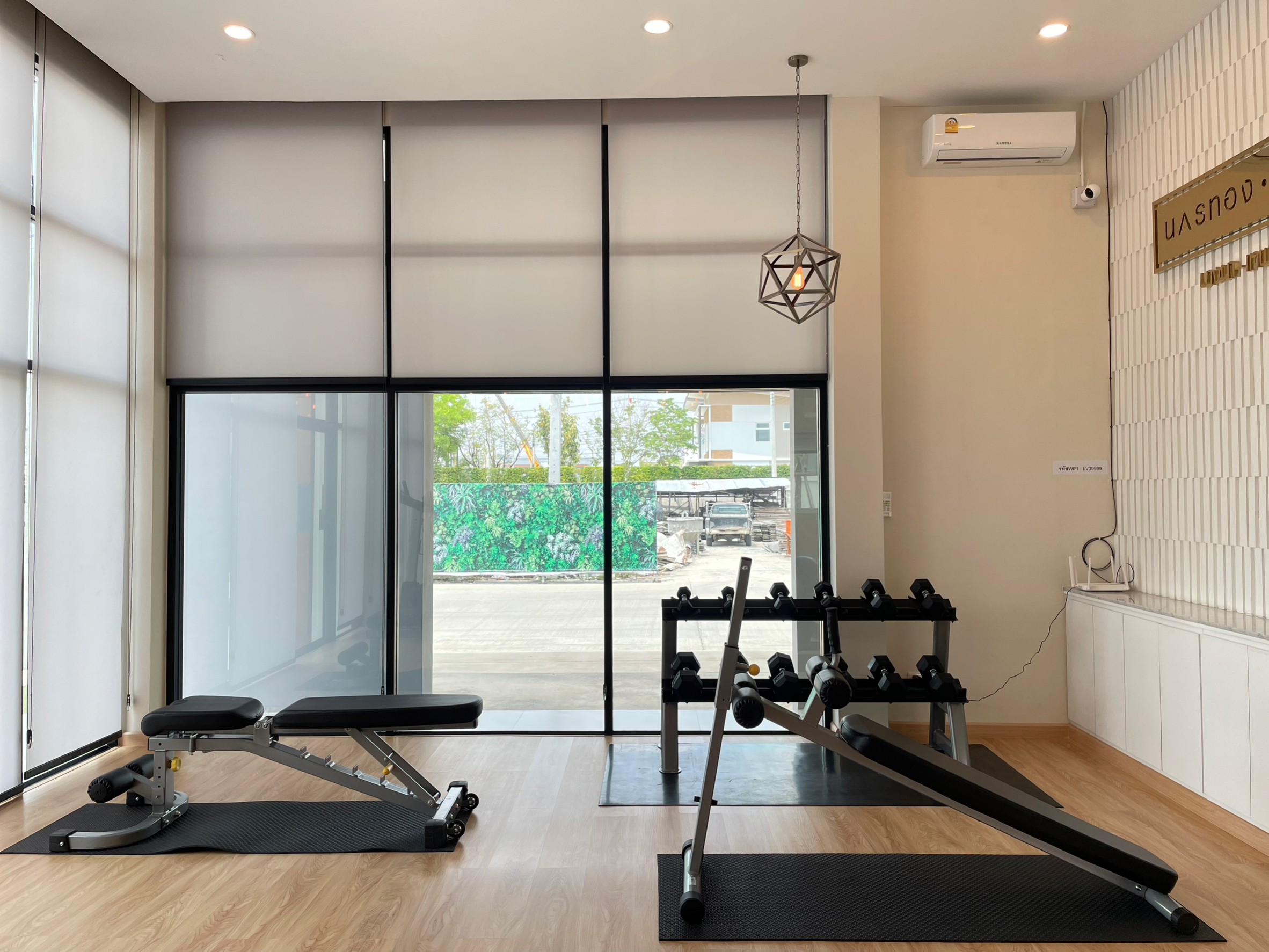 จุดเด่น :พื้นที่อเนกประสงค์ชั้นล่าง ปรับเปลี่ยนได้ตามใจ เช่น ครัว หรือ ห้องทำงานแข็งแรง สร้างด้วยอิฐมอญแดงลงเข็ม I22 และปูพรมเข็มที่จอดรถเพดานสูง โปร่ง กว่า 3 เมตร โล่ง ถ่ายเท ไม่อึดอัดรู้ใจด้วย ถังน้ำ-ปั๊มน้ำ DOS , ระบบน้ำร้อนน้ำอุ่น , สาย Fiber Optic , สาย LAN, ไฟฉุกเฉิน เป็นส่วนตัว กำแพงระหว่างแปลงสูง 1.7 เมตร