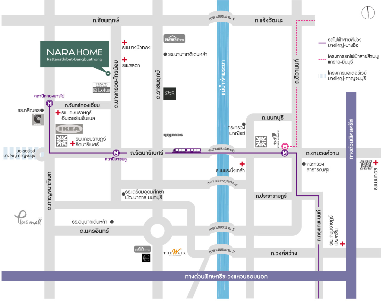 การเดินทางถ.กาญจนาภิเษก 1 กม.ถ.ราชพฤกษ์ 2.2 กม.ถ. 345 (สะพานนนทบุรี-บางบัวทอง) 3 กม.รถไฟฟ้าสายสีม่วง สถานีคลองบางไผ่ 11 กม. สถานที่ใกล้เคียงอบต คลองข่อย 2.4 กม.