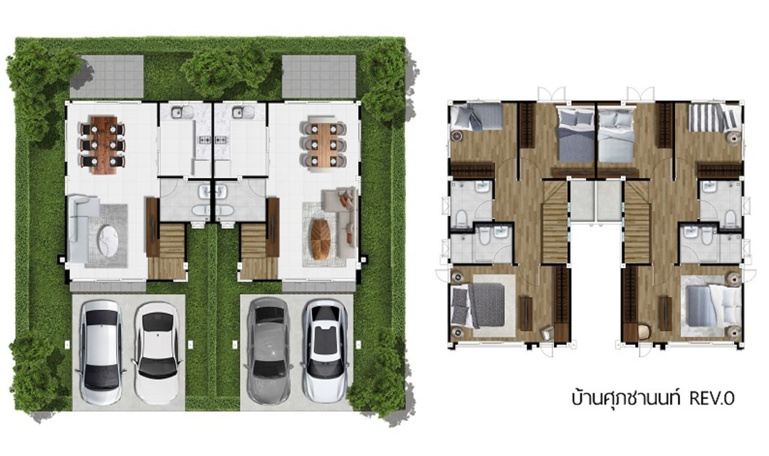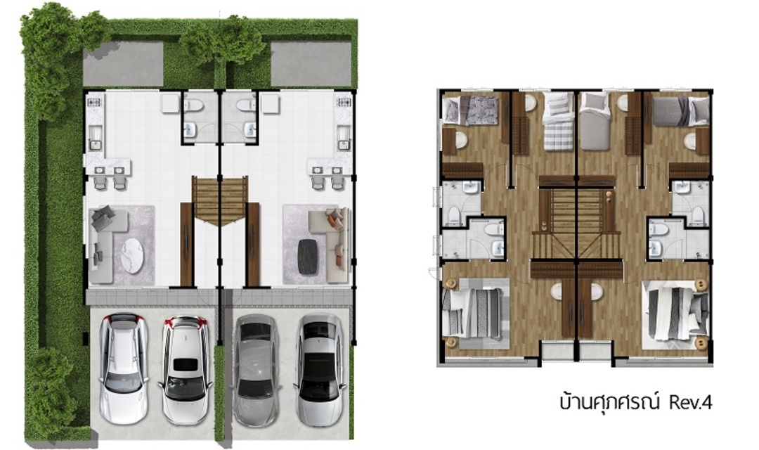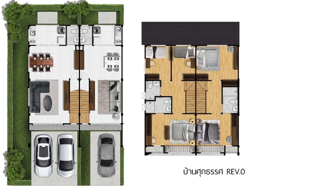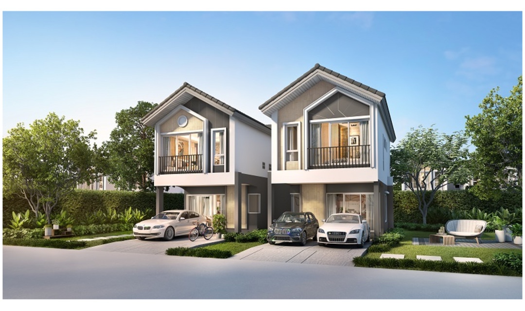 บ้านแฝด 2 ชั้น พื้นที่ใช้สอย 126 ตร.ม. ขนาด 3 ห้องนอน 3 ห้องน้ำ จอดรถ 2 คัน