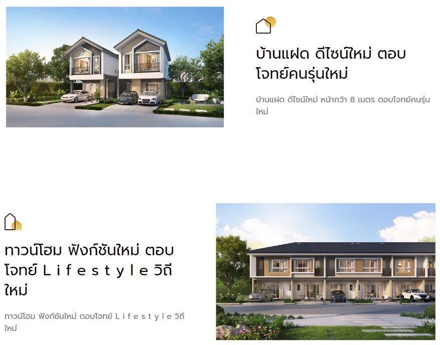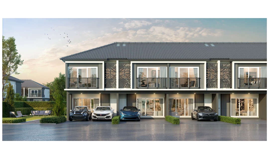 ทาวน์โฮม 2 ชั้น พื้นที่ใช้สอย 107-132 ตร.ม. ขนาด 2-3 ห้องนอน 2-3 ห้องน้ำ จอดรถ 1-2 คัน – แปลงมุม หน้าบ้าน กว้าง 5 เมตร – แปลงกลาง หน้าบ้านกว้าง 4.25 เมตร