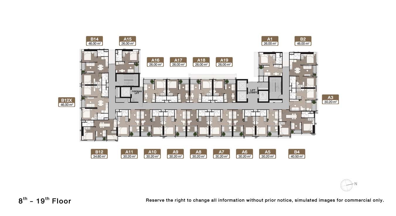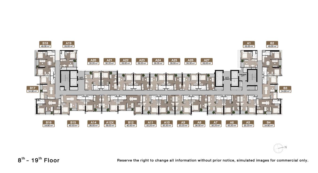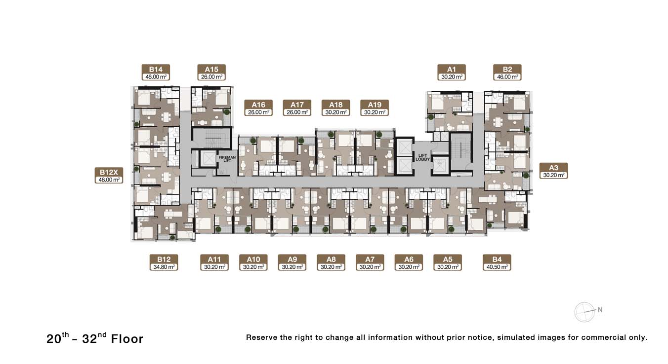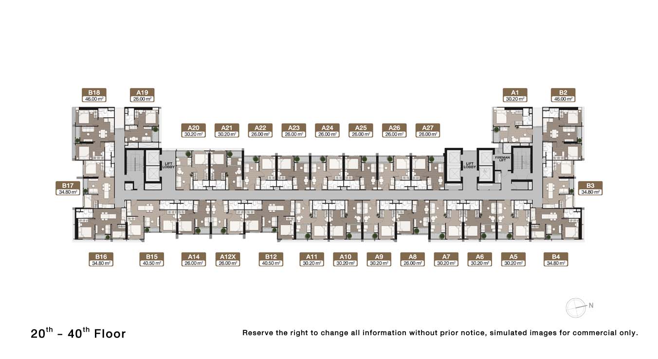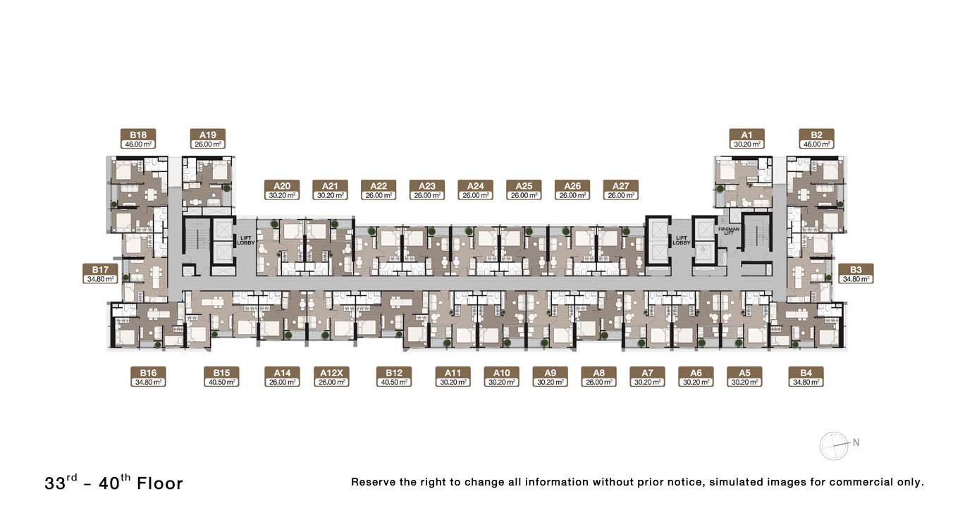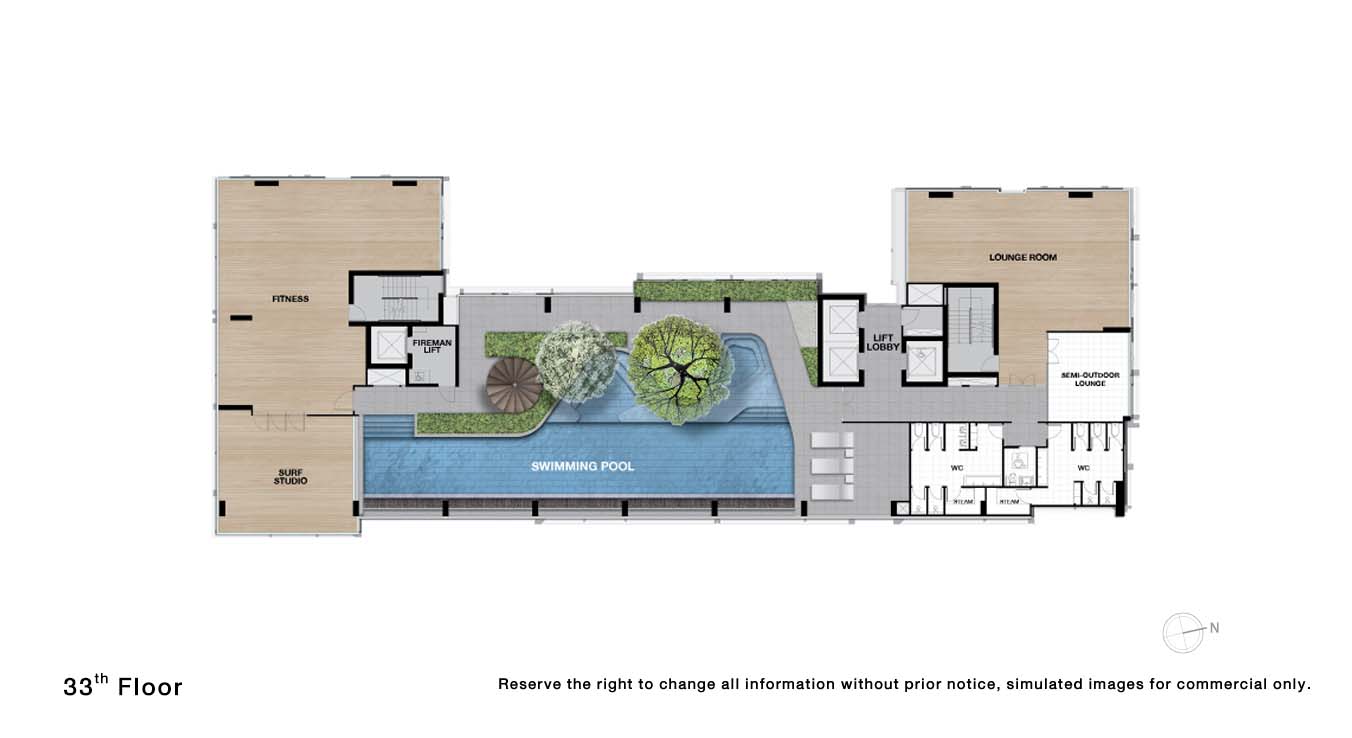 ชั้น 33 ทาวเวอร์ R พื้นที่ประมาณ 755 ตร.ม. + สวน Rooftop 405 ตร.ม.