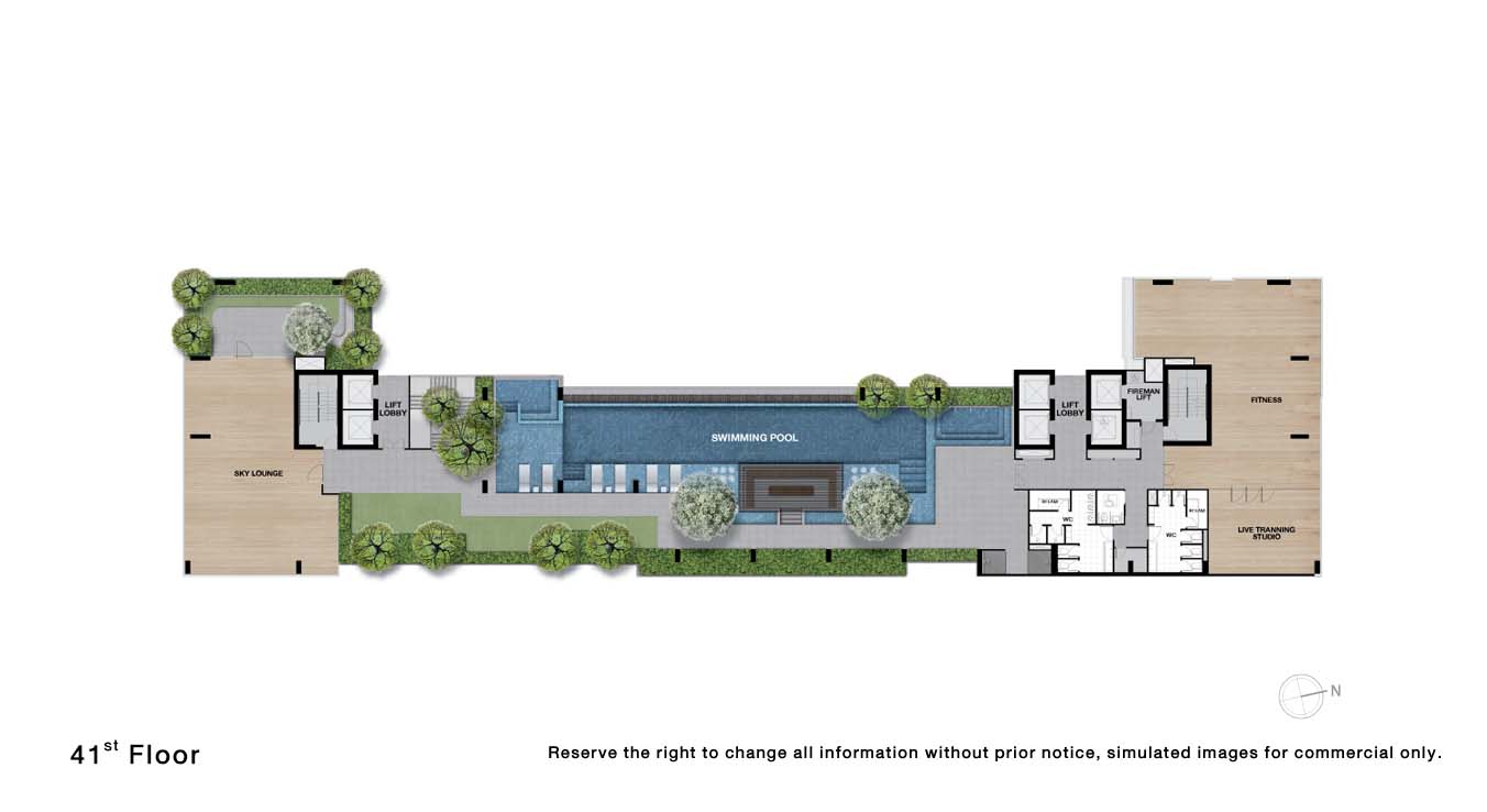 ชั้น 41 ทาวเวอร์ 9 พื้นที่ประมาณ 1,045 ตร.ม. + สวน Rooftop 495 ตร.ม.