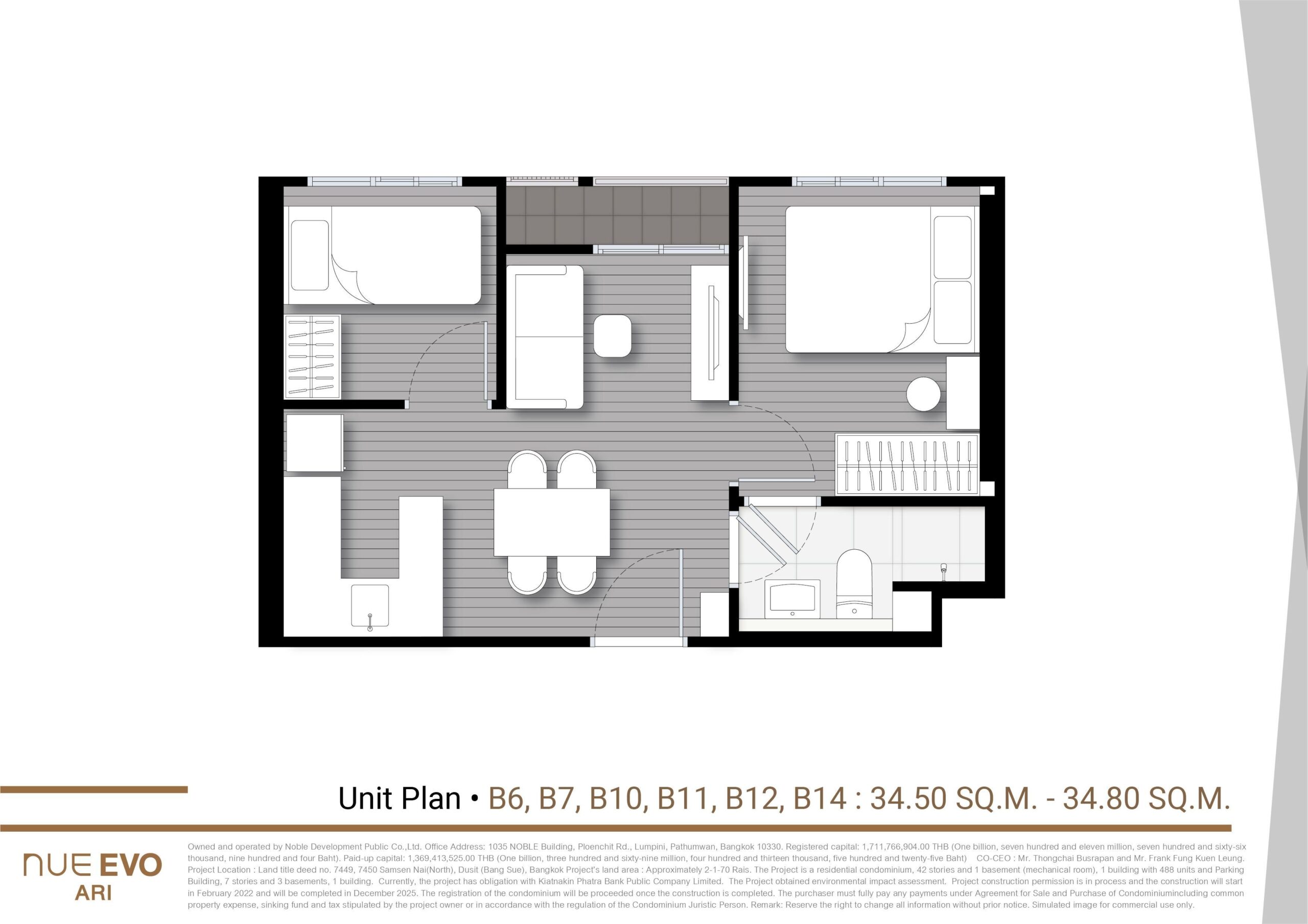 บ้านตัวอย่างออกแบบพื้นที่ใช้งานให้ดู โดยเลือกวางเป็นชุดโซฟา 3 ที่นั่งแบบเข้ามุม มาพร้อมม้านั่ง, โต๊ะกลาง และโต๊ะข้าง ที่ช่วยเพิ่มพื้นที่จัดเก็บ ใช้งาน