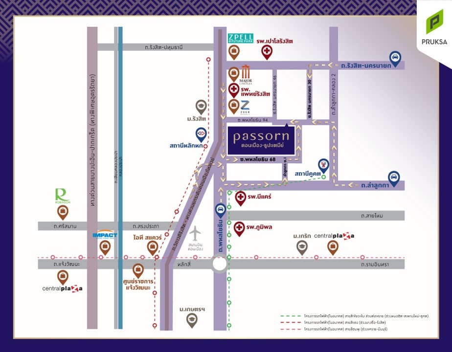 ห้างสรรพสินค้าCentral รามอินทราCentral ลาดพร้าวBig C สะพานใหม่Tops Market สายไหมตลาดยิ่งเจริญ สถานศึกษารร.สารสาสน์วิเทศสายไหมม.เกษตรศาสตร์ม.ศรีปทุม สถานพยาบาลรพ.ภูมิพลรพ.สายไหมรพ.เซ็นทรัลเยนเนอรัล