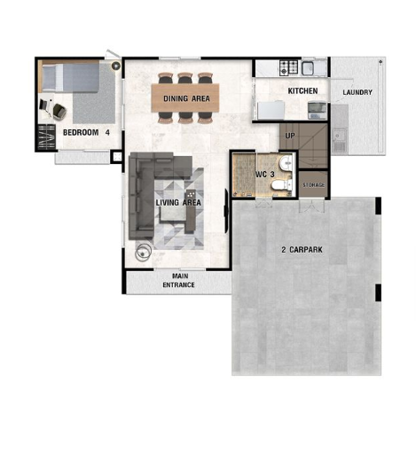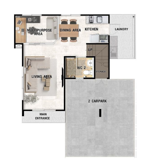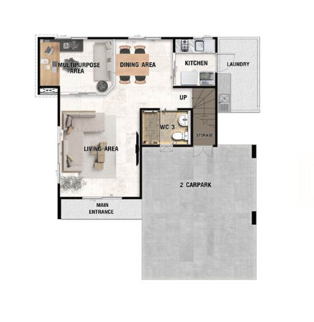 – Less is More Concept ดีไซน์ทันสมัย เรียบง่าย และอบอุ่น โดย “น้อย” ด้วยเส้นสายที่ตรงไปตรงมา แต่ “มาก” ด้วยประโยชน์ใช้สอย– Natural Living Room เพิ่มความรู้สึกผ่อนคลายให้มากขึ้นด้วยกระจกบานใหญ่หน้าบ้านและบริเวณด้านข้าง เชื่อมพื้นที่สีเขียวระหว่างภายใน – ภายนอก– Multipurpose Area พื้นที่เอนกประสงค์ภายในบ้านที่ปรับเปลี่ยนตามไลฟ์สไตล์ผู้อยู่อาศัย ไม่ว่าจะเป็นห้องทำงาน ห้องเรียนออนไลน์ หรือห้องออกกำลังกาย– Cozy Master Bedroom ห้องนอนใหญ่ เพดานดีไซน์สูงโปร่ง