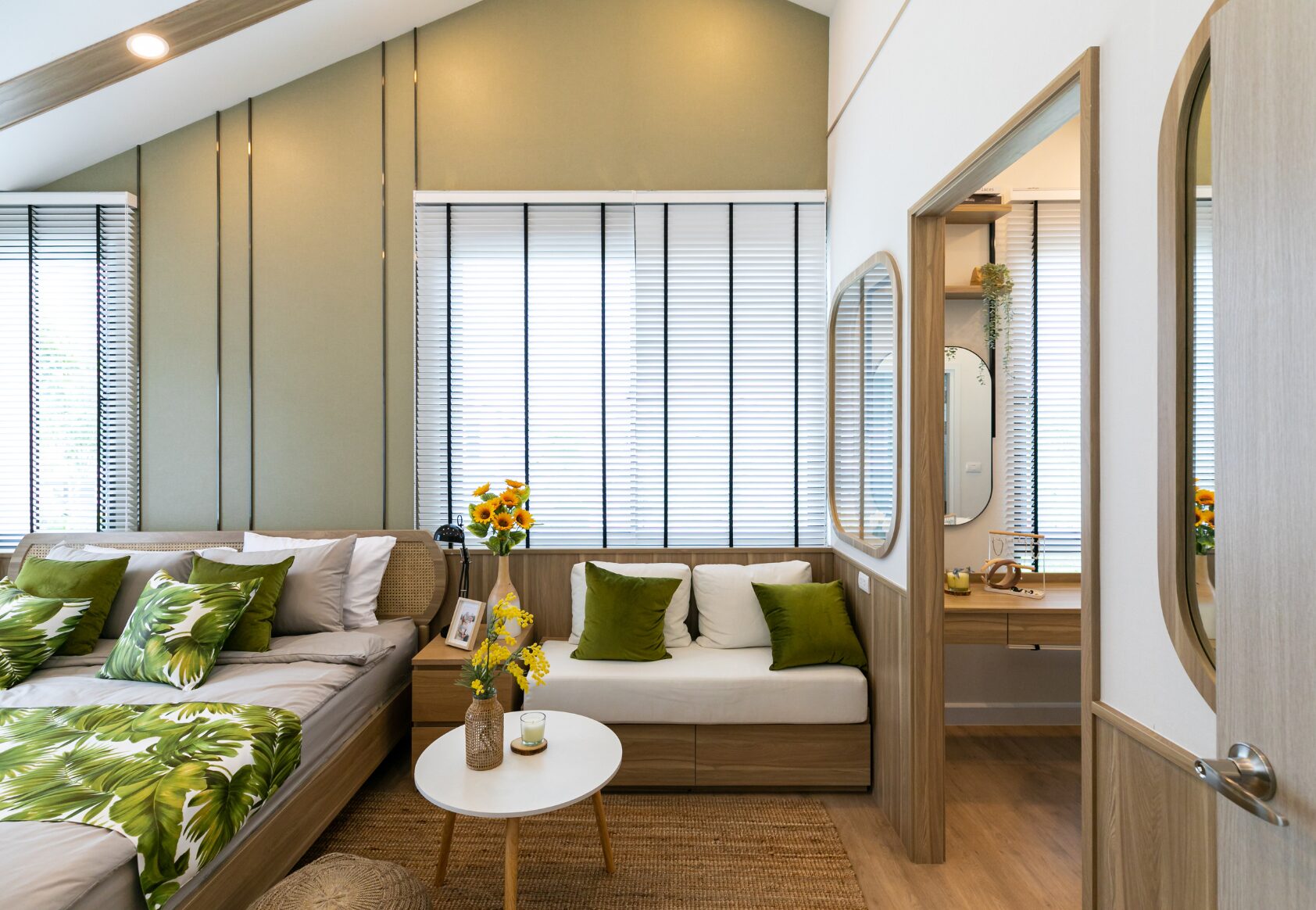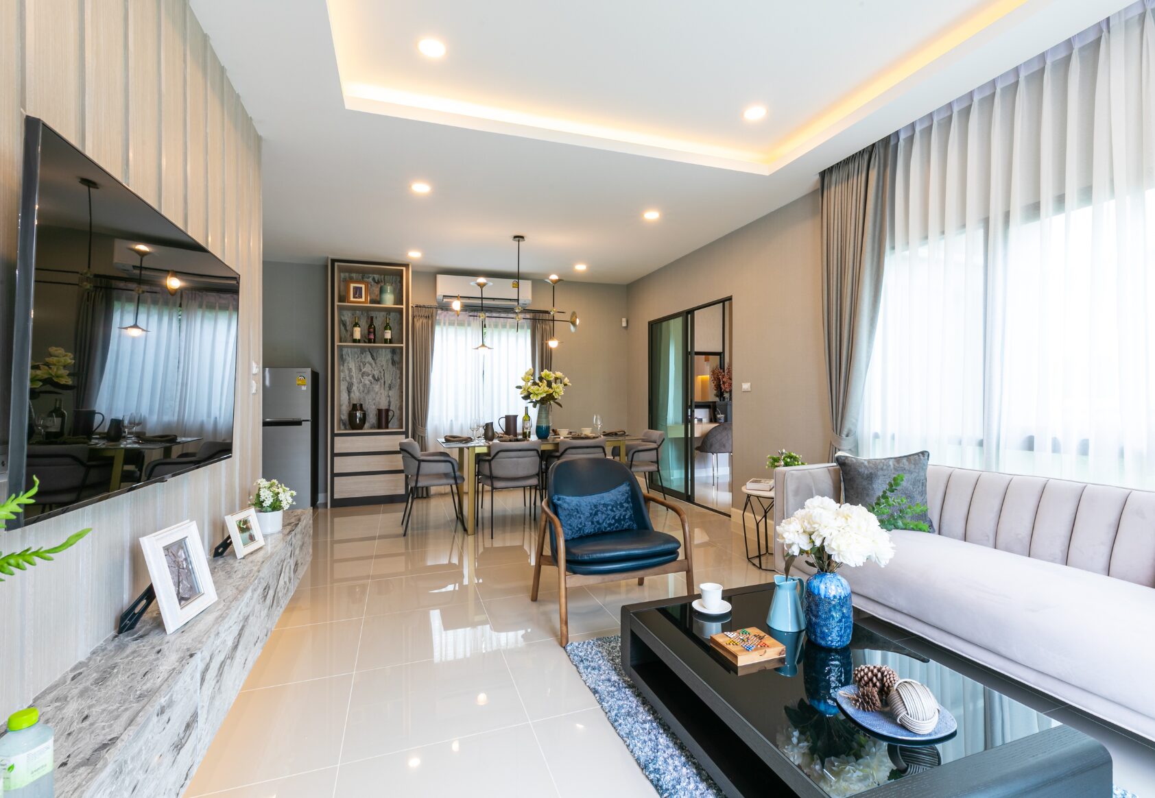 – Less is More Concept ดีไซน์ทันสมัย เรียบง่าย และอบอุ่น โดย “น้อย” ด้วยเส้นสายที่ตรงไปตรงมา แต่ “มาก” ด้วยประโยชน์ใช้สอย– Natural Living Room เพิ่มความรู้สึกผ่อนคลายให้มากขึ้นด้วยกระจกบานใหญ่หน้าบ้านและบริเวณด้านข้าง เชื่อมพื้นที่สีเขียวระหว่างภายใน – ภายนอก– Multipurpose Area พื้นที่เอนกประสงค์ภายในบ้านที่ปรับเปลี่ยนตามไลฟ์สไตล์ผู้อยู่อาศัย ไม่ว่าจะเป็นห้องทำงาน ห้องเรียนออนไลน์ หรือห้องออกกำลังกาย– Cozy Master Bedroom ห้องนอนใหญ่ เพดานดีไซน์สูงโปร่ง