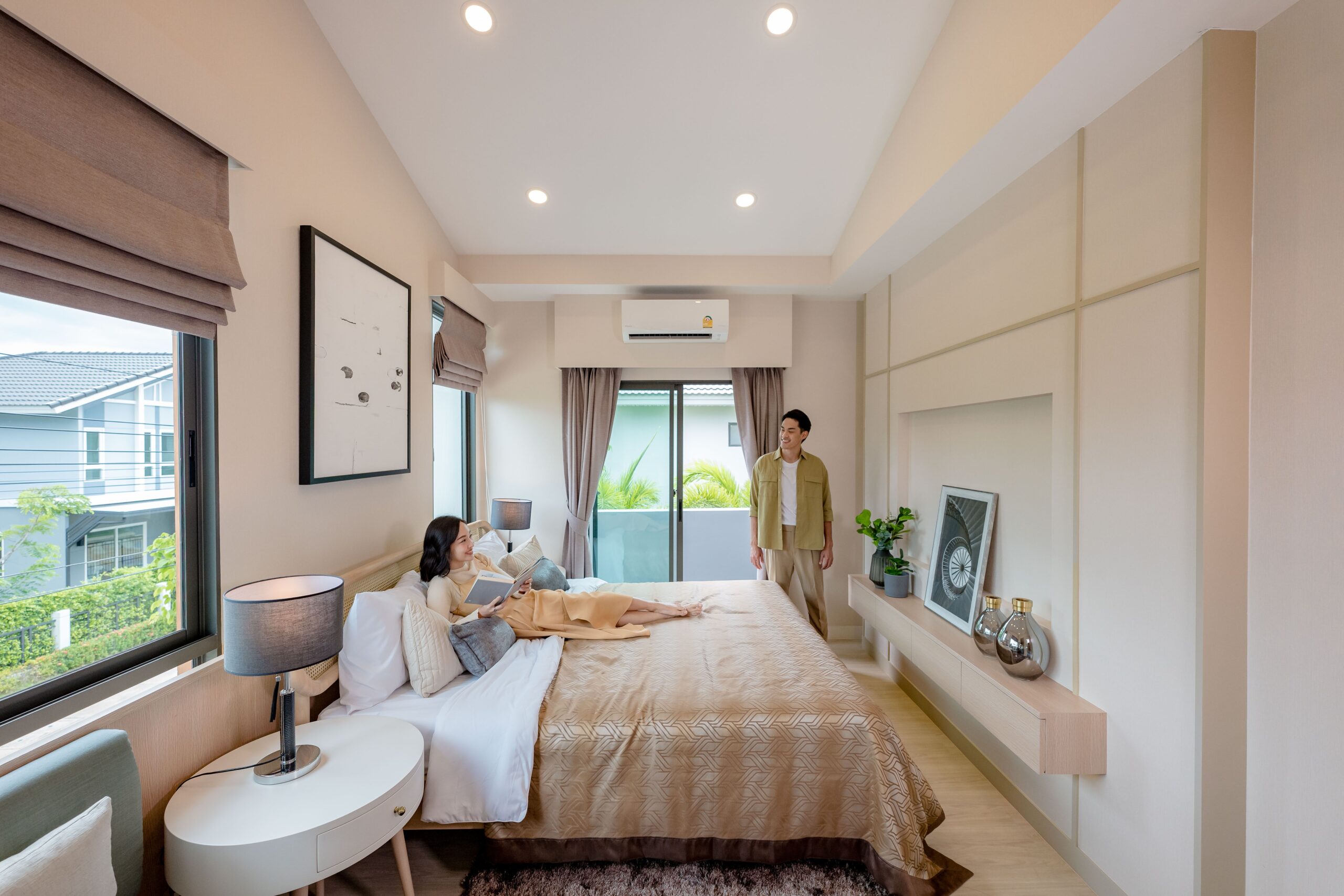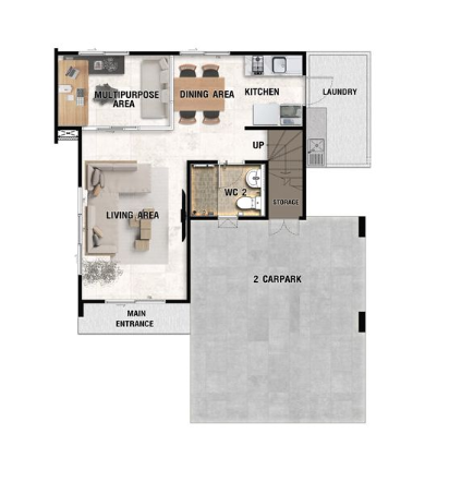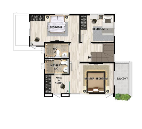 – Less is More Concept ดีไซน์ทันสมัย เรียบง่าย และอบอุ่น โดย “น้อย” ด้วยเส้นสายที่ตรงไปตรงมา แต่ “มาก” ด้วยประโยชน์ใช้สอย– Natural Living Room เพิ่มความรู้สึกผ่อนคลายให้มากขึ้นด้วยกระจกบานใหญ่หน้าบ้านและบริเวณด้านข้าง เชื่อมพื้นที่สีเขียวระหว่างภายใน – ภายนอก– Multipurpose Area พื้นที่เอนกประสงค์ภายในบ้านที่ปรับเปลี่ยนตามไลฟ์สไตล์ผู้อยู่อาศัย ไม่ว่าจะเป็นห้องทำงาน ห้องเรียนออนไลน์ หรือห้องออกกำลังกาย– Cozy Master Bedroom ห้องนอนใหญ่ เพดานดีไซน์สูงโปร่ง