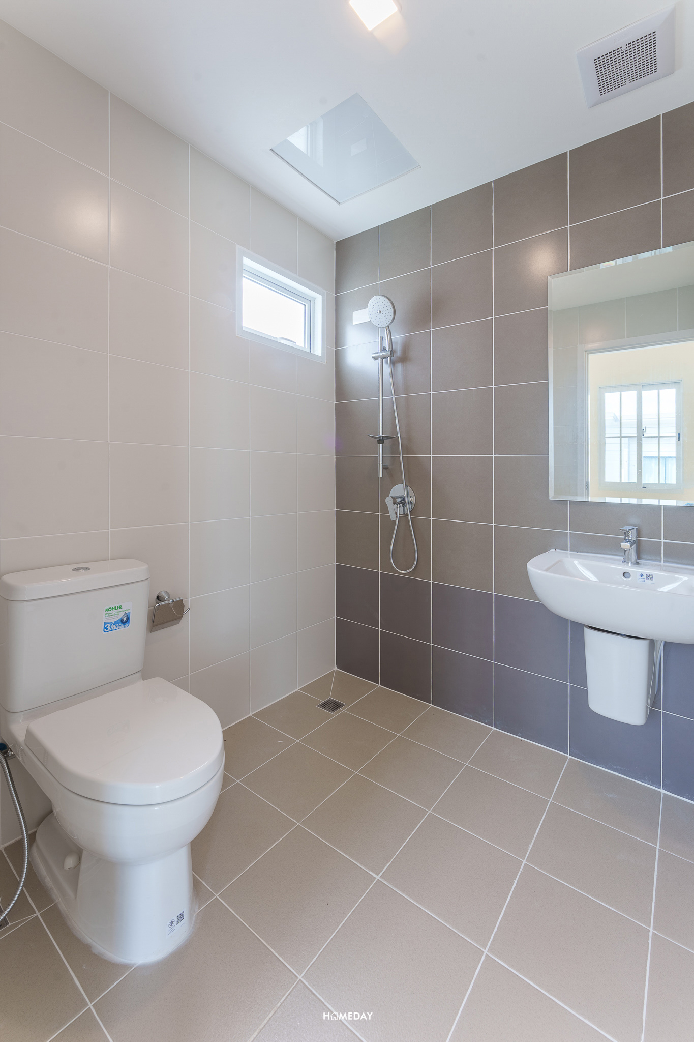 ส่วนห้องน้ำของชั้น 2 ตัวห้องน้ำจะเป็นแบบแปลนตอนลึก ด้านในได้ฟังก์ชันมาครบครันเช่นเดียวกันกับห้องน้ำชั้นล่างครับ สมาชิกที่อยู่อาศัยใน Bedroom 2 และ Bedroom 3 ก็สามารถใช้ห้องน้ำห้องนี้ร่วมกันได้เลยครับ